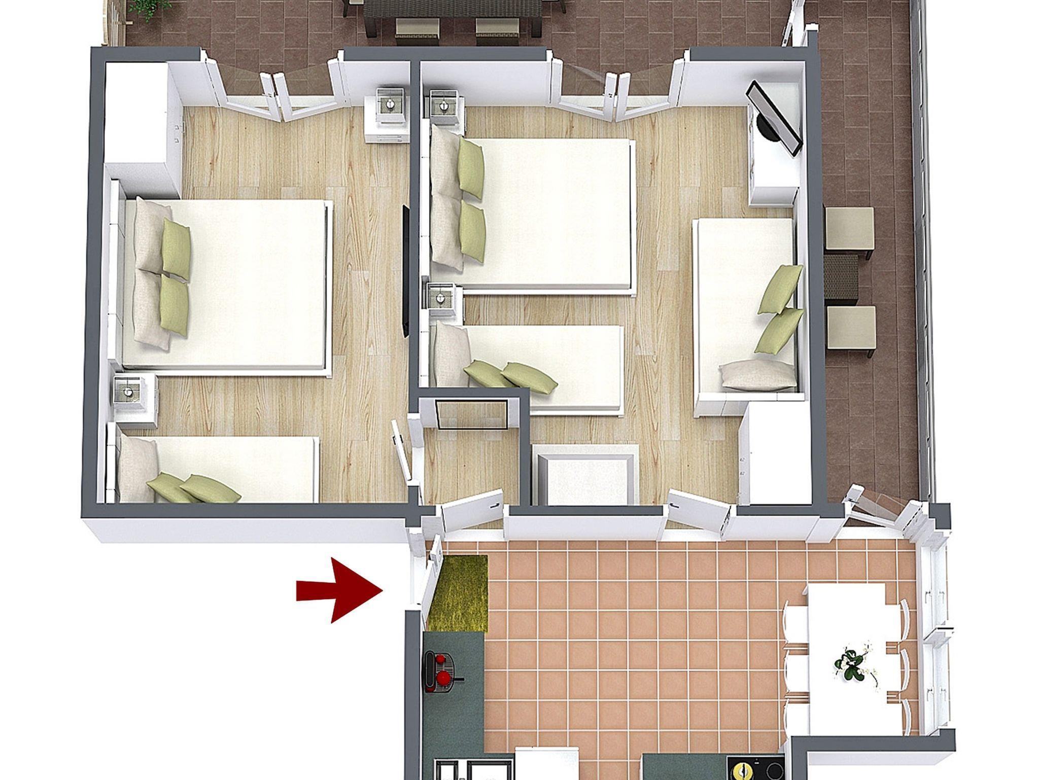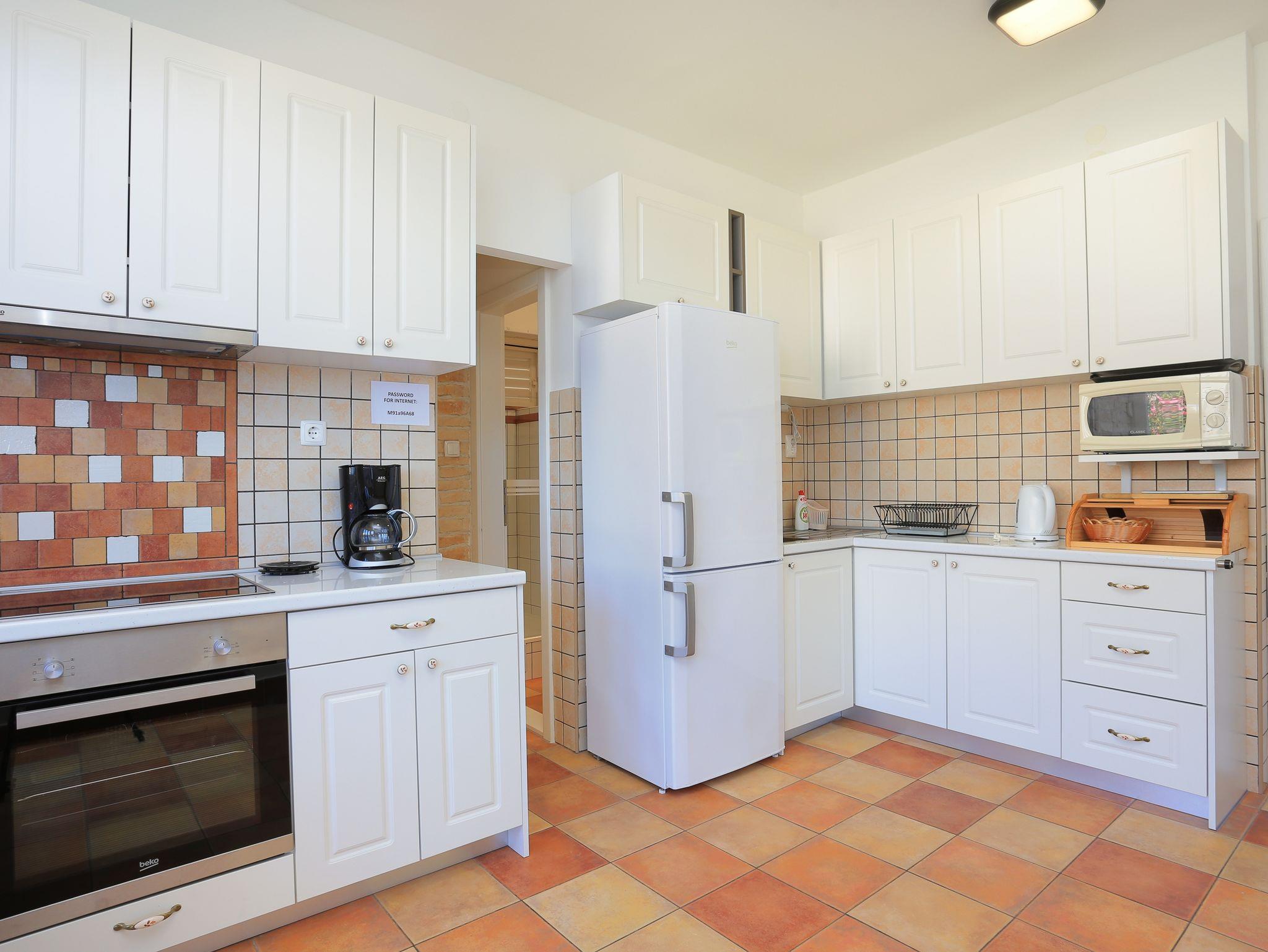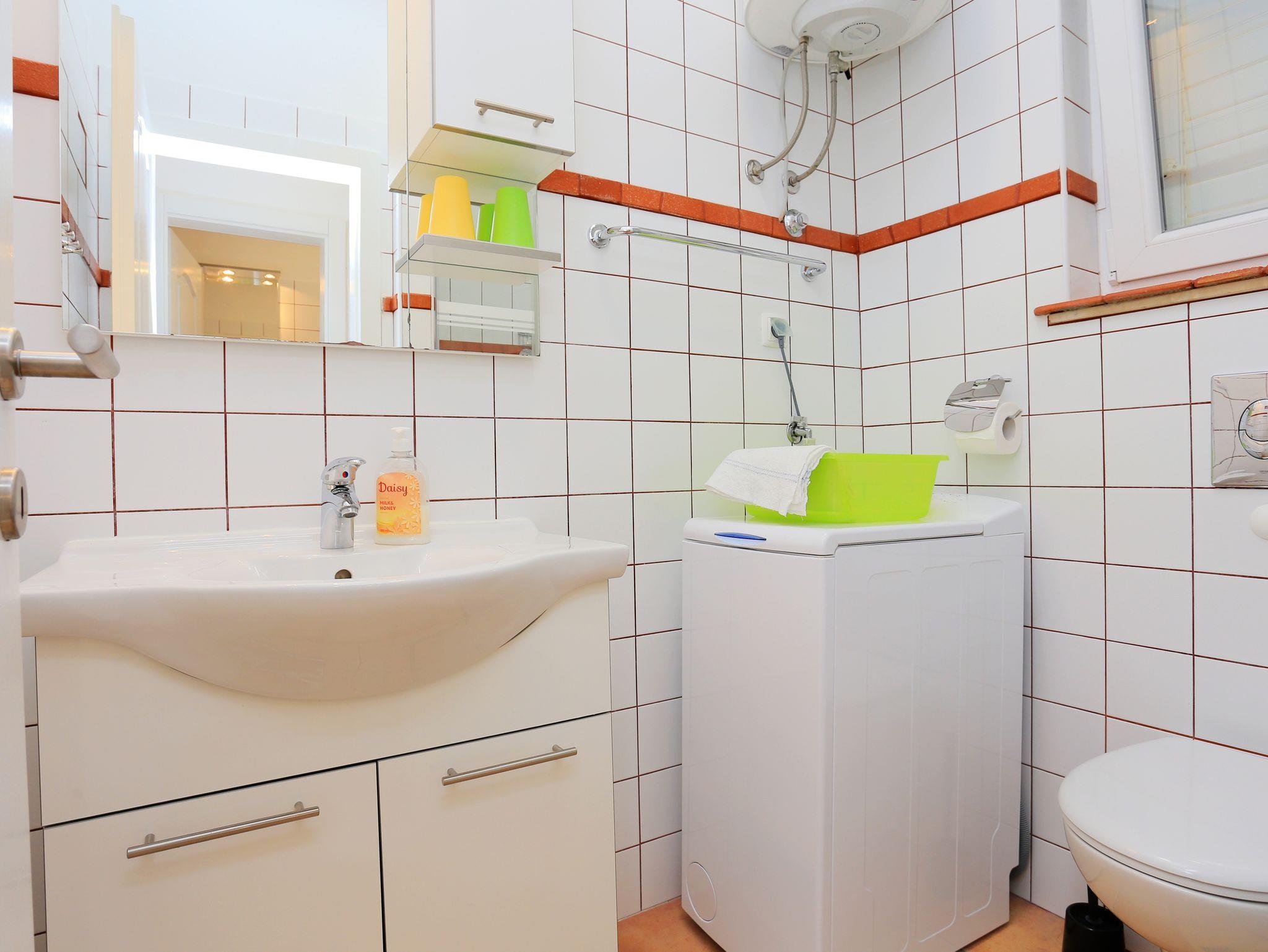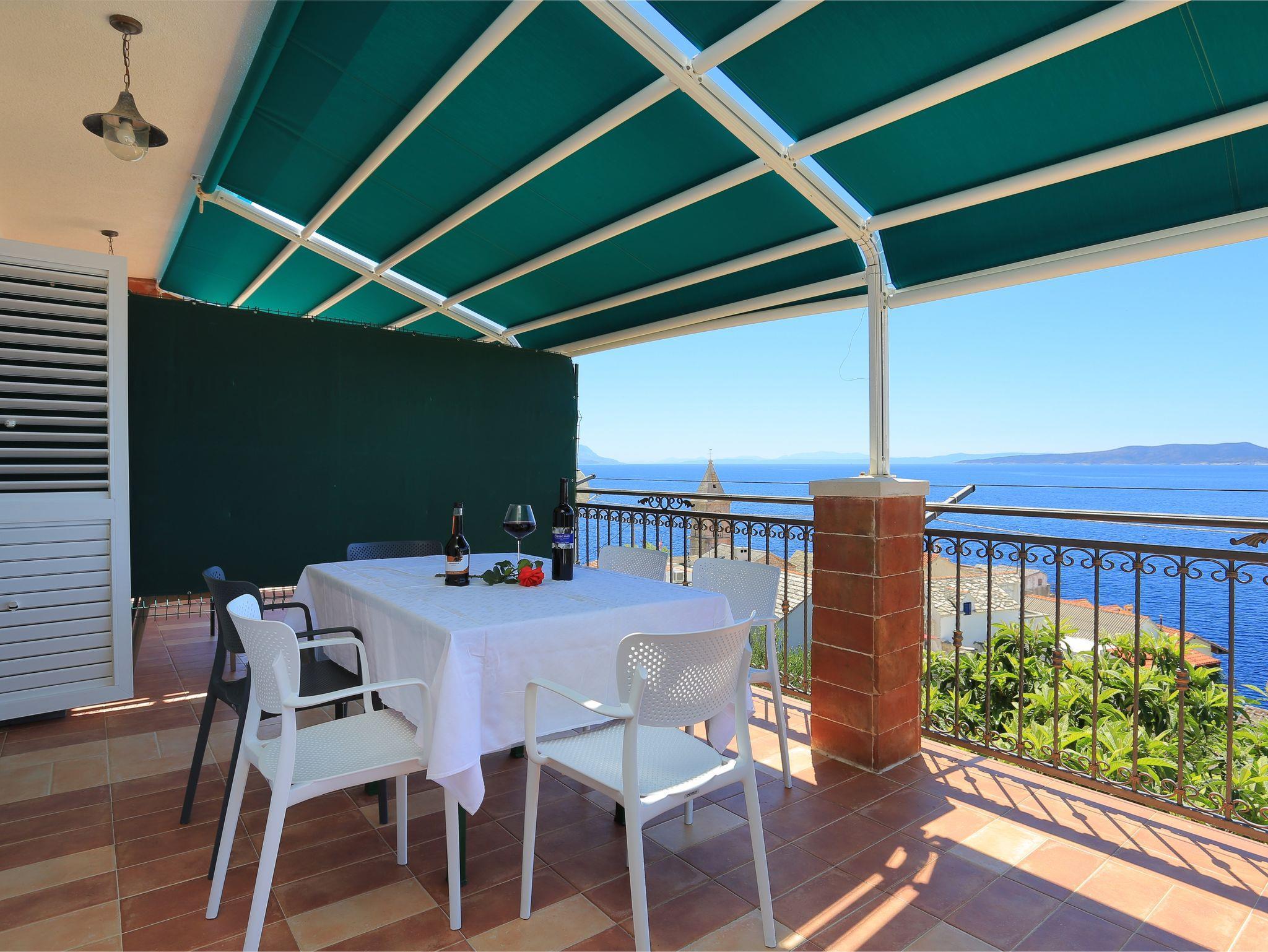 Ferienwohnung bietet Platz für 6 Gäste. Die Betten sind in Schlafzimmern, die es 2 gibt, innerhalb einer Gesamtfläche von 47m2, angeordnet. Die Gäste haben eine eigene Terrasse zur Verfügung, auf der sie in warmen Sommernächten genießen können. Das Apartment bietet Meerblick. IM PREIS INBEGRIFFEN: Kurtaxe, Endreinigung, Klimatisierung, Parkplatz, Internet, Bootsanlegeplatz, Kinderbett, Bügeleisen, Bügelbrett, Föhn, Sonnenschirm, Liegestühle. VERBINDLICHE ZUSÄTZLICHE KOSTEN: Aufzahlung für Kurzaufenthalte (prozentualer Zuschlag pro Nächtigungsanzahl: 30% - 1, 20% - 2, 10% - 3). Die Verfügbarkeit zusätzlicher Dienstleistungen in Ihrem reservierten Termin und die Preise derselben (falls nicht aufgeführt) müssen im Voraus überprüft werden. Zusätzliche Dienstleistungen die in der Zahlungsaufforderung nicht aufgeführt sind werden direkt beim Vermieter bezahlt, angenommen der Gast nutzt auch diese. Ermäßigung auf den Grundpreis: Gratistag 28=25 (bei einem Aufenthalt von 28 oder mehr Tagen erhalten Sie 3 kostenlose Tage für den Aufenthalt bis 31.12.26).