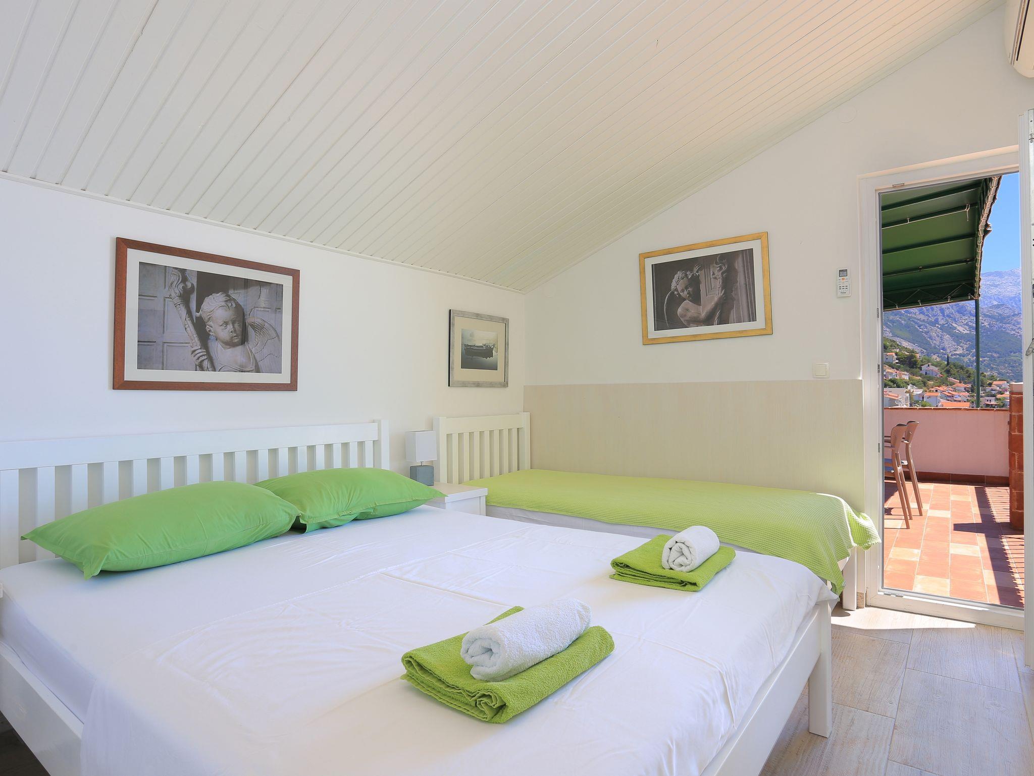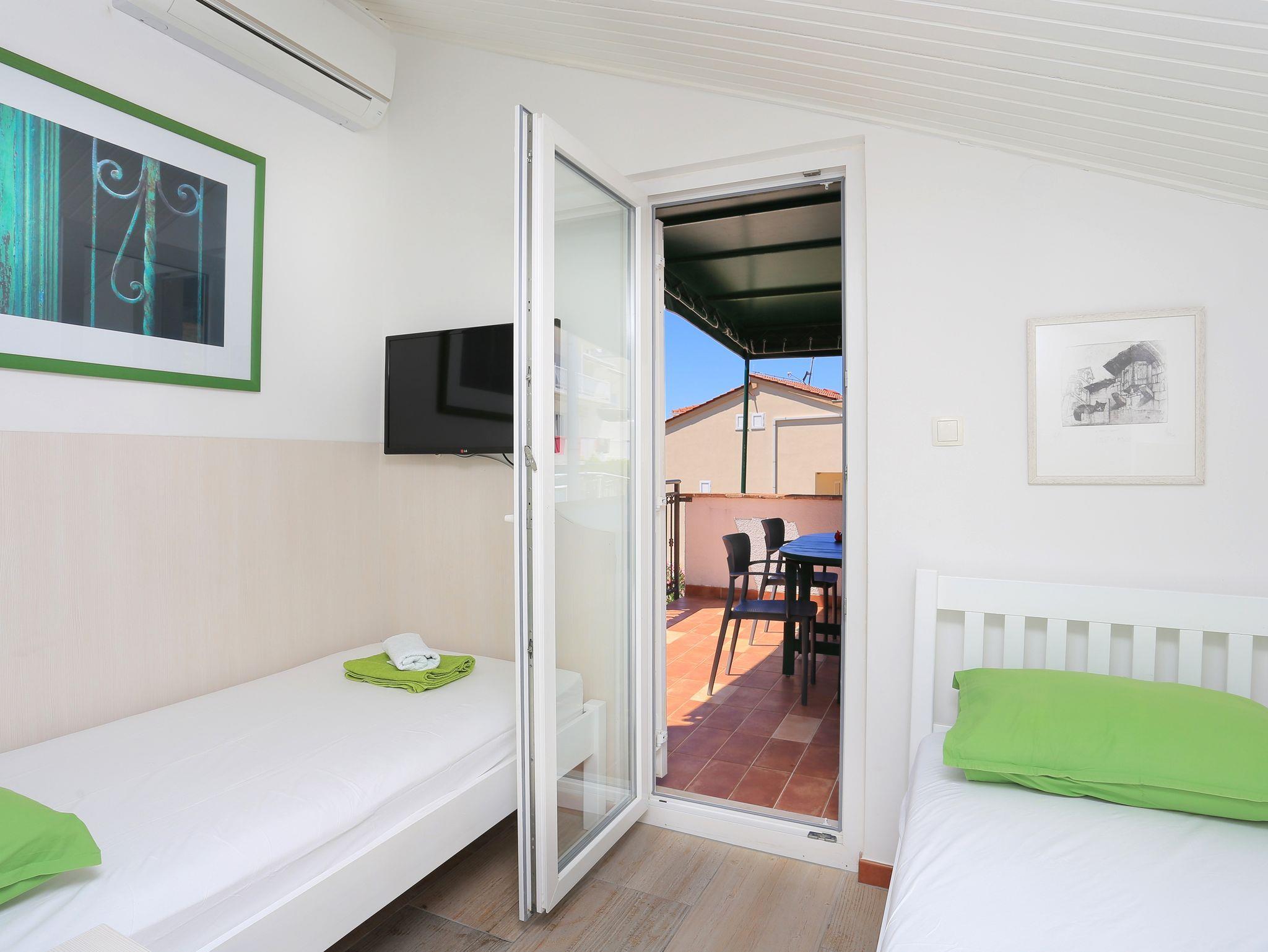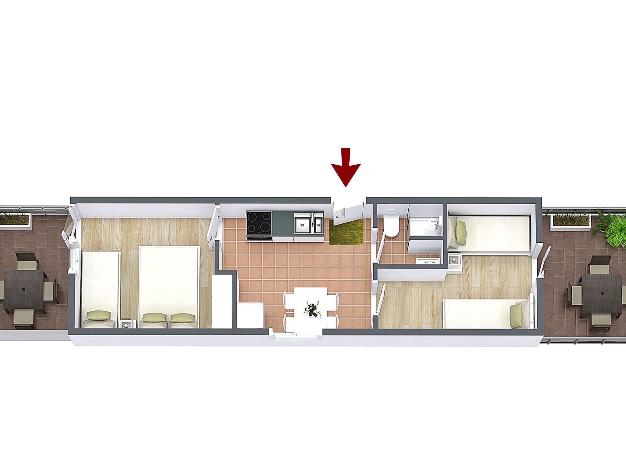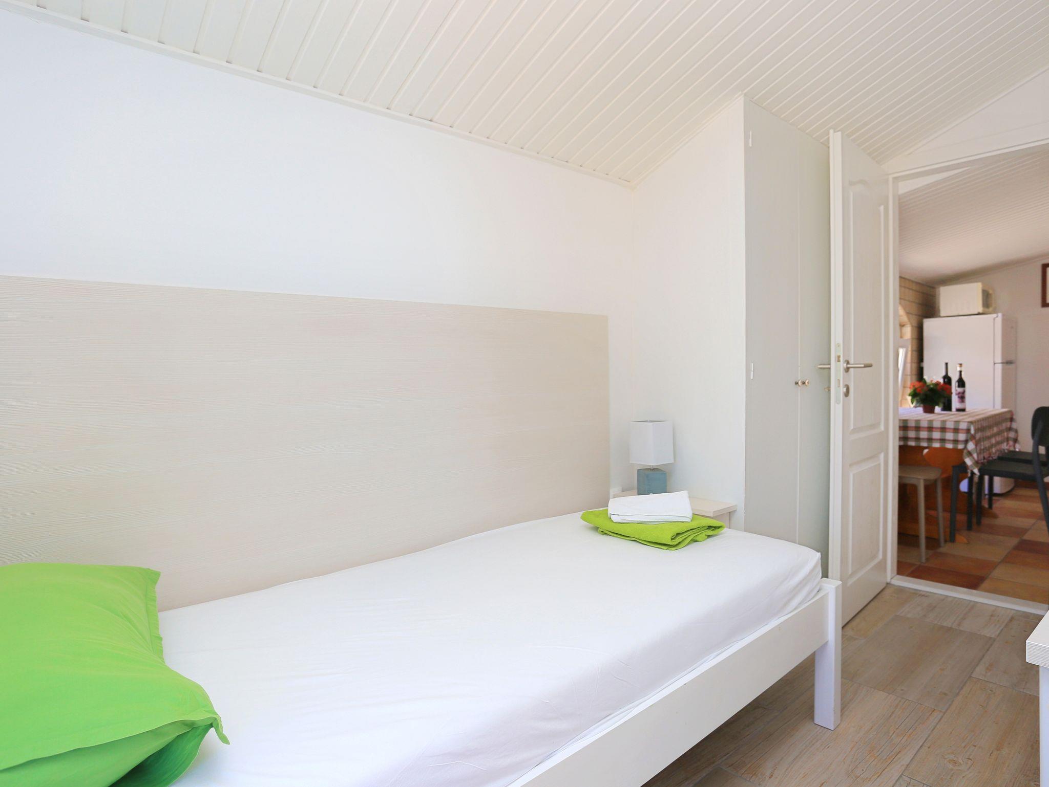 Ferienwohnung bietet Platz für 4 Gäste. Die Betten sind in Schlafzimmern, die es 2 gibt, innerhalb einer Gesamtfläche von 33m2, angeordnet. Die Gäste haben eine eigene Terrasse zur Verfügung, auf der sie in warmen Sommernächten genießen können. Das Apartment bietet Meerblick. IM PREIS INBEGRIFFEN: Kurtaxe, Endreinigung, Klimatisierung, Parkplatz, Internet, Bootsanlegeplatz, Kinderbett, Bügeleisen, Bügelbrett, Föhn, Sonnenschirm, Liegestühle. VERBINDLICHE ZUSÄTZLICHE KOSTEN: Aufzahlung für Kurzaufenthalte (prozentualer Zuschlag pro Nächtigungsanzahl: 30% - 1, 20% - 2, 10% - 3). Die Verfügbarkeit zusätzlicher Dienstleistungen in Ihrem reservierten Termin und die Preise derselben (falls nicht aufgeführt) müssen im Voraus überprüft werden. Zusätzliche Dienstleistungen die in der Zahlungsaufforderung nicht aufgeführt sind werden direkt beim Vermieter bezahlt, angenommen der Gast nutzt auch diese. Ermäßigung auf den Grundpreis: Gratistag 28=25 (bei einem Aufenthalt von 28 oder mehr Tagen erhalten Sie 3 kostenlose Tage für den Aufenthalt bis 31.12.26).