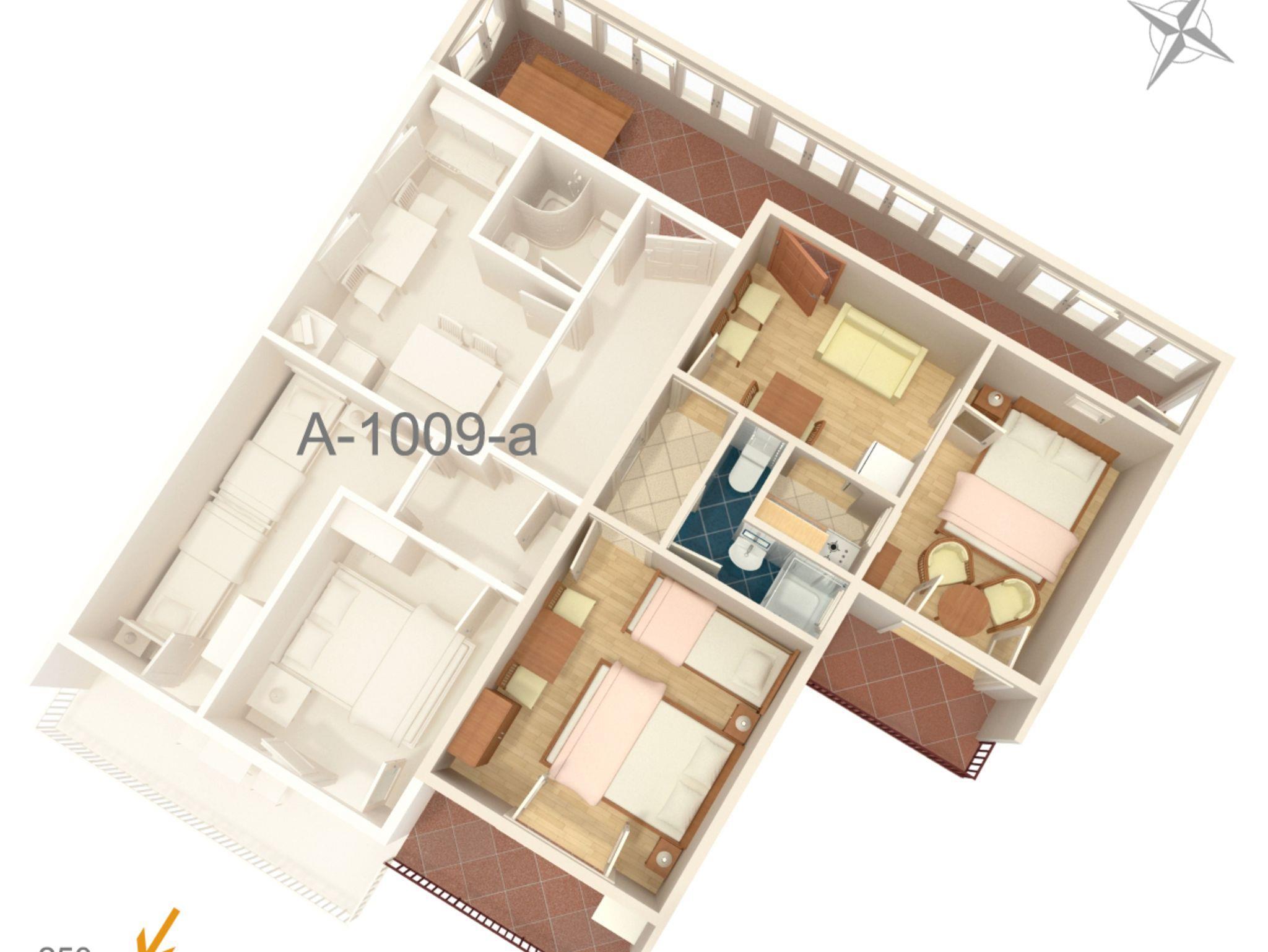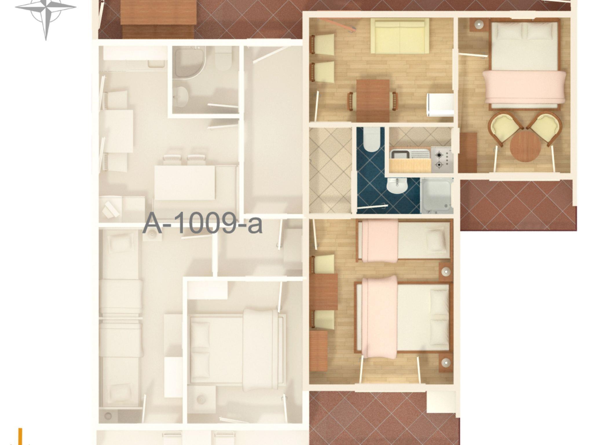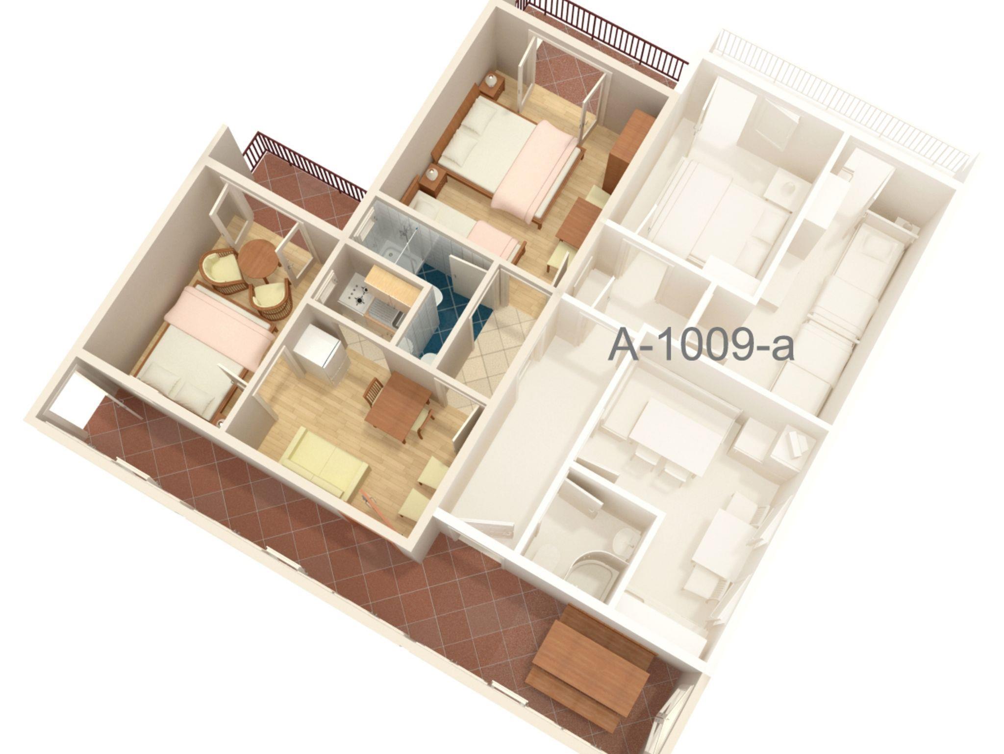 Ferienwohnung bietet Platz für 4 Gäste. Die Betten sind in Schlafzimmern, die es 2 gibt, innerhalb einer Gesamtfläche von 37m2, angeordnet. Die Gäste haben einen eigenen Balkon zur Verfügung, auf der sie in warmen Sommernächten genießen können. Das Apartment bietet Meerblick. Es ist erlaubt, Speisen auf dem Gemeinschafts-Grill vorzubereiten. Die reservierte Unterkunftseinheit verfügt über einen gemeinsame Terrasse. IM PREIS INBEGRIFFEN: Kurtaxe, Endreinigung, Parkplatz, Garage, Internet. UNVERBINDLICHE ZUSÄTZLICHE KOSTEN: Klimatisierung (1,00 € pro Stunde), Zusatzbett (15,00 € pro Nacht). Die Verfügbarkeit zusätzlicher Dienstleistungen in Ihrem reservierten Termin und die Preise derselben (falls nicht aufgeführt) müssen im Voraus überprüft werden. Zusätzliche Dienstleistungen die in der Zahlungsaufforderung nicht aufgeführt sind werden direkt beim Vermieter bezahlt, angenommen der Gast nutzt auch diese. Ermäßigung auf den Grundpreis: Gratistag 14=13 (bei einem Aufenthalt von 14 Tagen oder mehr erhalten Sie einen Gratistag für den Aufenthalt bis 31.12.26).