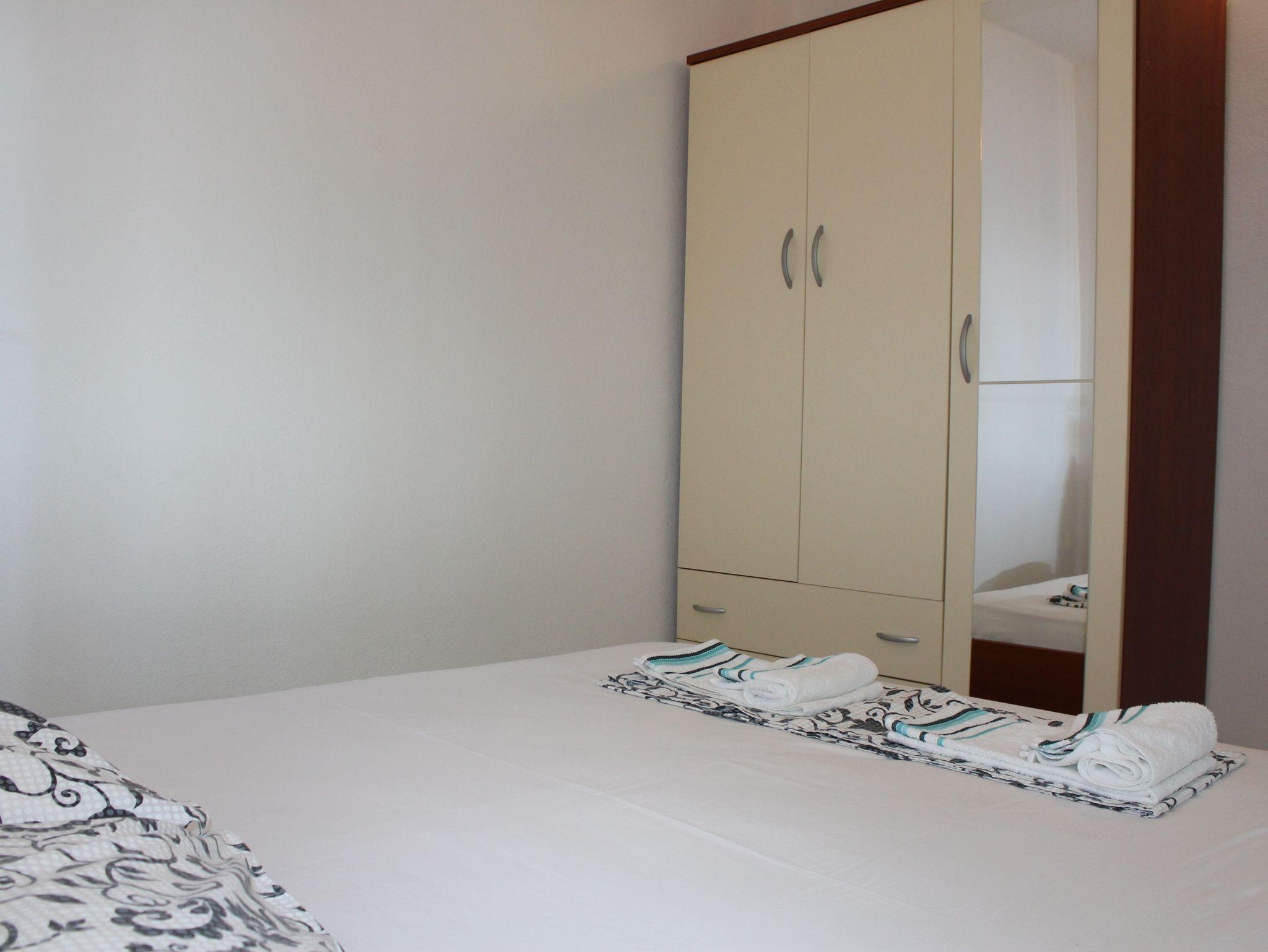 Ferienwohnung bietet Platz für 5 Gäste. Die Betten sind in Schlafzimmern, die es 2 gibt, und in Wohnzimmer, innerhalb einer Gesamtfläche von 40m2, angeordnet. Die Gäste haben eine eigene Terrasse zur Verfügung, auf der sie in warmen Sommernächten genießen können. Das Apartment bietet Meerblick. Es ist erlaubt, Speisen auf dem Gemeinschafts-Grill vorzubereiten. IM PREIS INBEGRIFFEN: Kurtaxe, Endreinigung, Garage, Internet, Kinderbett, Zusatzbett, Föhn. VERBINDLICHE ZUSÄTZLICHE KOSTEN: Aufzahlung für Kurzaufenthalte (prozentualer Zuschlag pro Nächtigungsanzahl: 30% - 1, 20% - 2, 10% - 3). UNVERBINDLICHE ZUSÄTZLICHE KOSTEN: Klimatisierung (5,00 € pro Nacht). Die Verfügbarkeit zusätzlicher Dienstleistungen in Ihrem reservierten Termin und die Preise derselben (falls nicht aufgeführt) müssen im Voraus überprüft werden. Zusätzliche Dienstleistungen die in der Zahlungsaufforderung nicht aufgeführt sind werden direkt beim Vermieter bezahlt, angenommen der Gast nutzt auch diese.