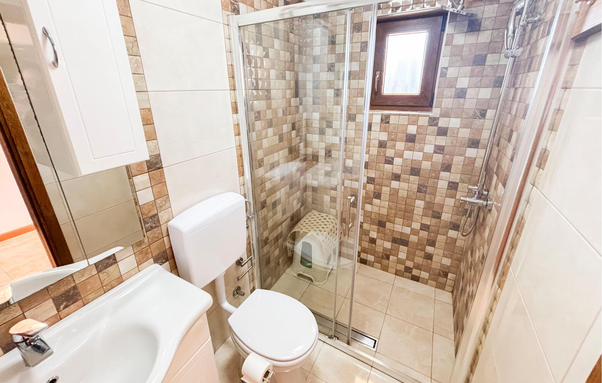 - WC med varmt og kaldt vann, Dusj