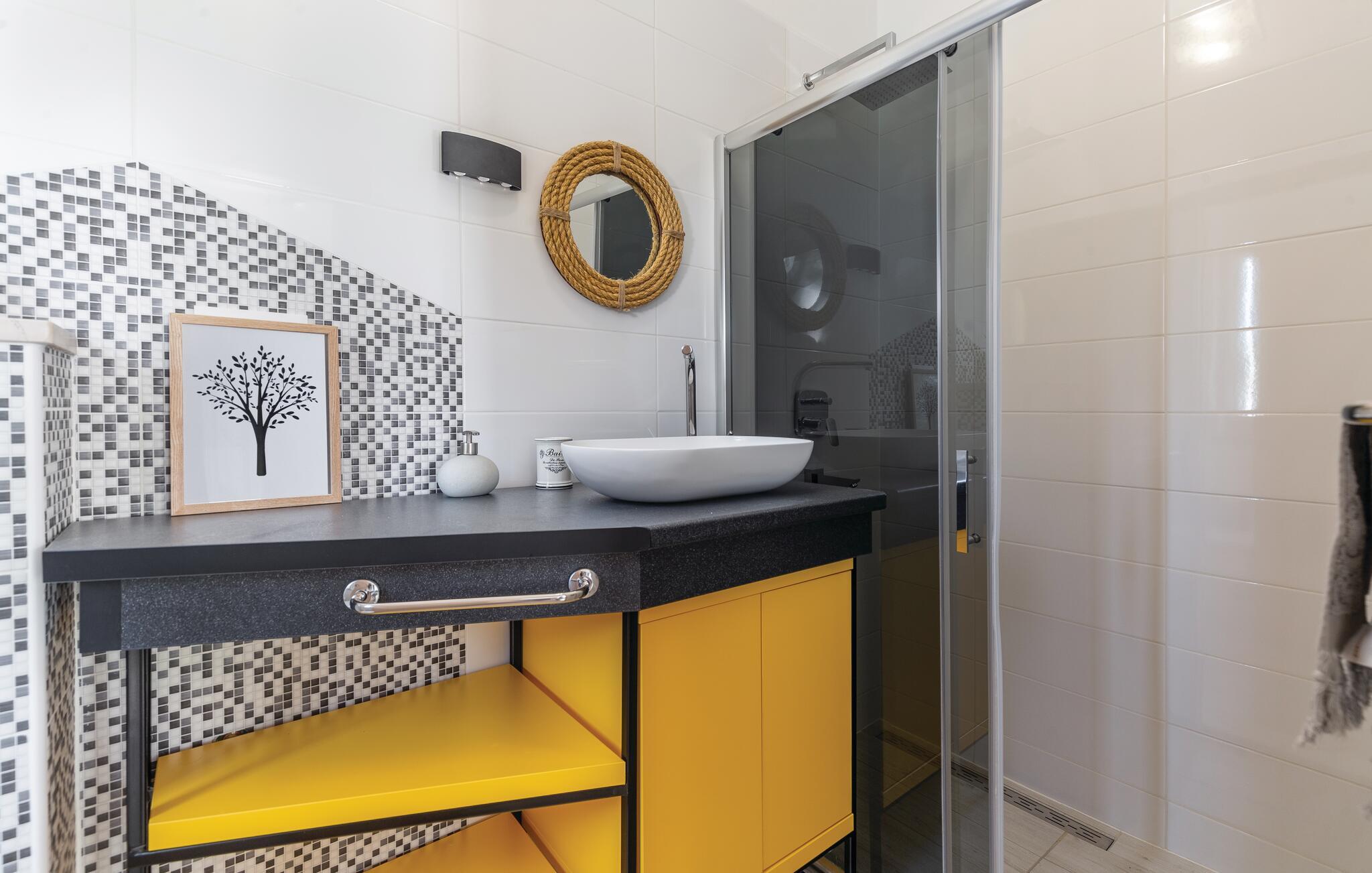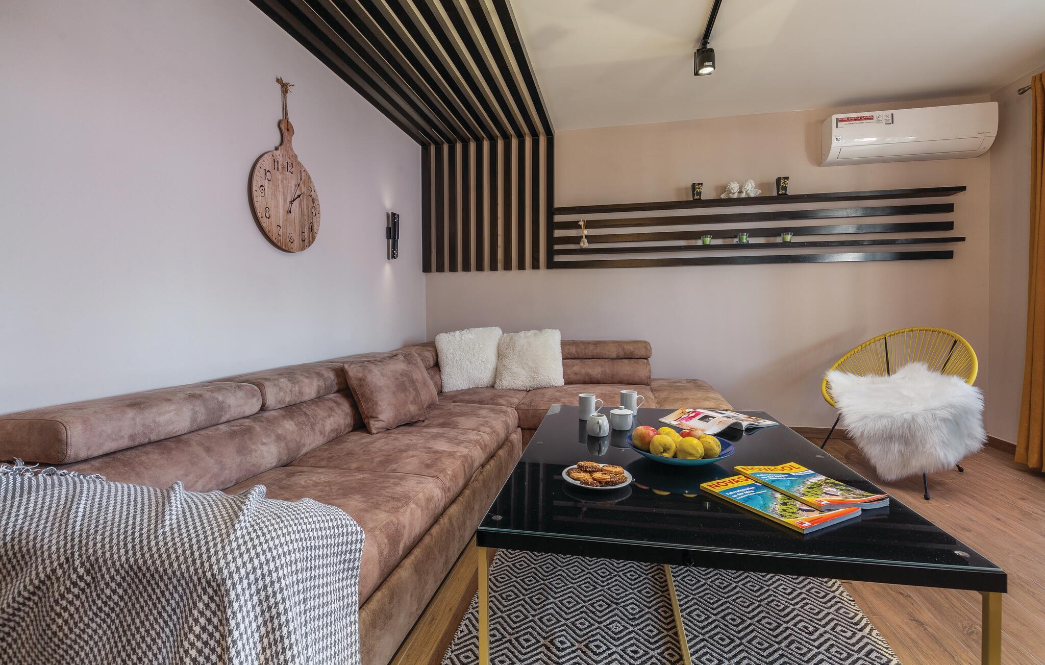 Dette stilfulle og romslige feriehuset ønsker deg velkommen med sin utvalgte og individuelle design. Den fargerike designen og møblene av høy kvalitet skaper en innbydende og komfortabel atmosfære. Nyt det romslige interiøret som uttrykker munterhet og velvære og inviterer deg til å slappe av og dvele. Enten du vil slappe av, leke sammen eller trylle på kjøkkenet, vil du finne din favorittplass her.
