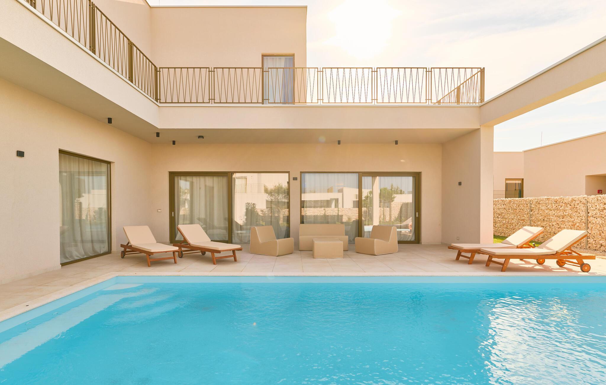 Gå ut og nyt luksusen av det private bassenget, som er direkte tilgjengelig fra terrassen. Legg deg ned på en av solsengene og slapp av i solen. Bruk det overbygde området til den første koppen kaffe om morgenen, eller tilbring kvelden her med et glass vin. Fra første etasje har du også en vakker utsikt over havet.