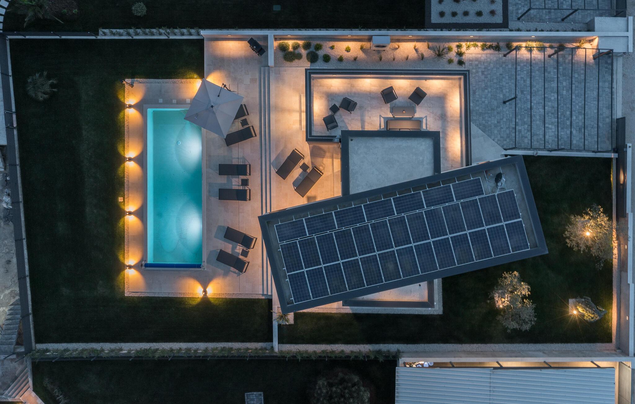 Nyt dette moderne og stilfulle feriehuset med takterrasse, sjøutsikt og basseng.