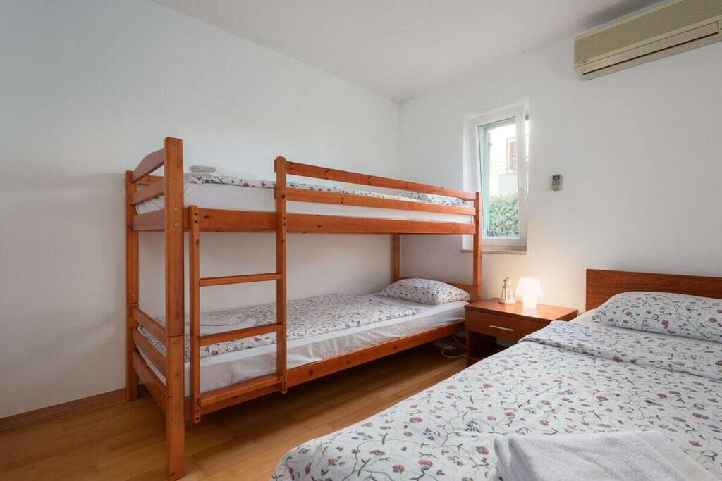 , Korridoren(dusj), Korridoren(dusj), Stue(TV, TV, klimaanlegg), Kjøkken(vannkoker, brødrister, kaffetrakter, stekovn, kjøleskap, fryser, vaskemaskin), soveværelse(dobbeltseng), soveværelse(enkeltseng, enkeltseng), soveværelse(dobbeltseng, køyeseng), soveværelse(dobbeltseng), bad(dusj), Internett-tilgang, Internett-tilgang, vaskemaskin, oppvarming, terrasse(hagemøbler), hage(Plen, hagemøbler, solsenge), parkering