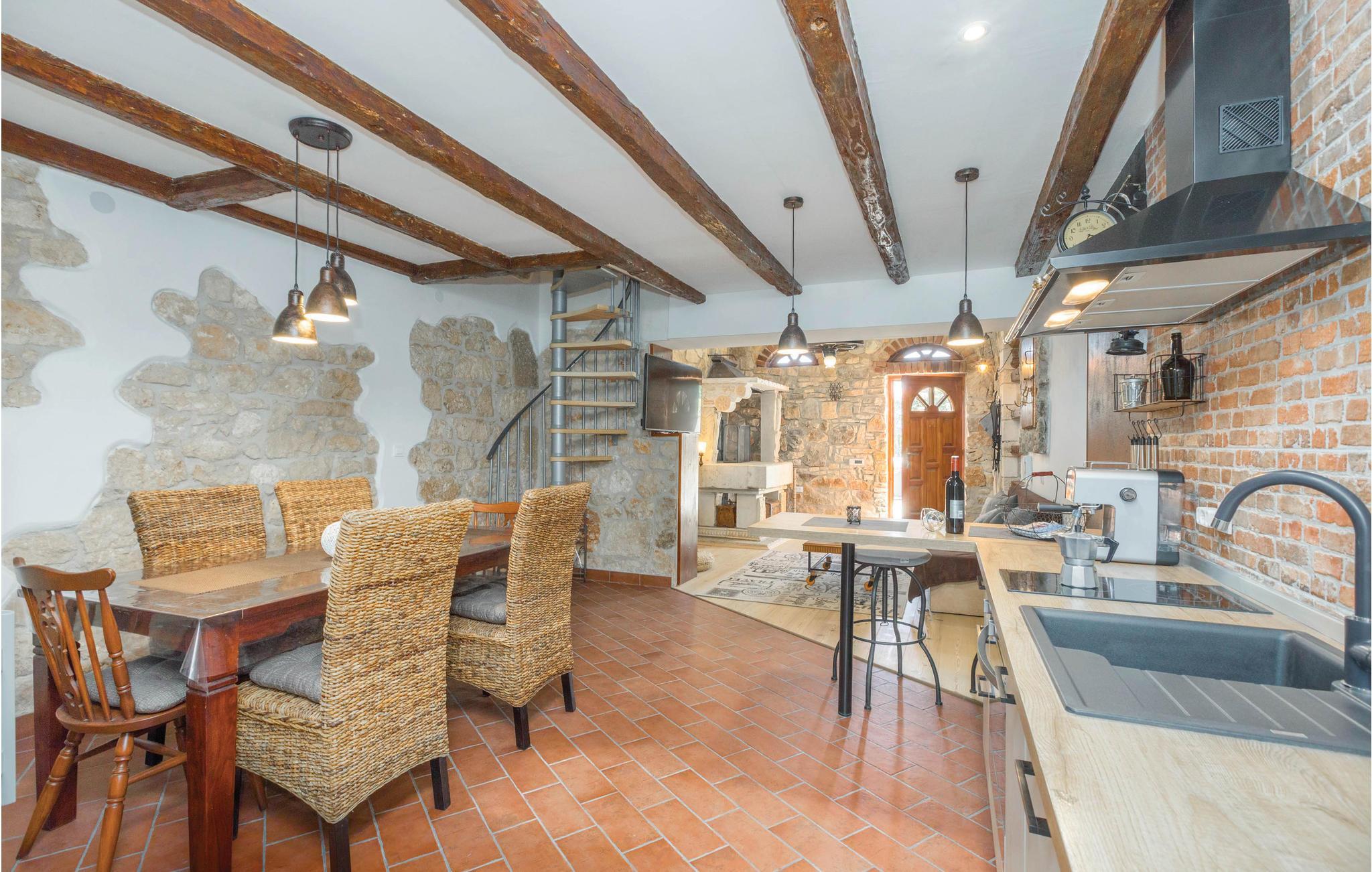 Dette rekkehuset ligger i den lille landsbyen Jasenovice, ikke langt fra feriedestinasjonene Funtana og Vrsar. Feriehuset er stilfullt innredet og meget komfortabelt, med oppholdsrommet i første etasje. Det er et uteområde foran og bak huset som, selv om det ikke er veldig stort, er ideelt for avslapning. Det er et soverom i øverste etasje, og via dette har du tilgang til soverommet på loftet med en takhøyde på minst 150 cm. Dette huset ligger i nærheten av de første rullesteinsstrendene, som også er lett tilgjengelige med sykkel via en grusvei.