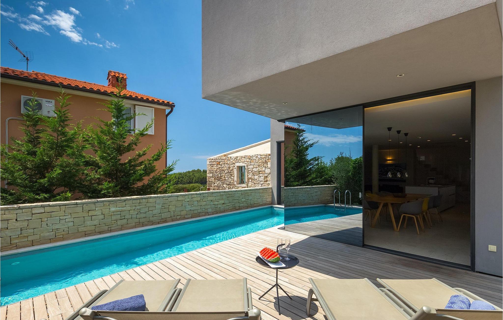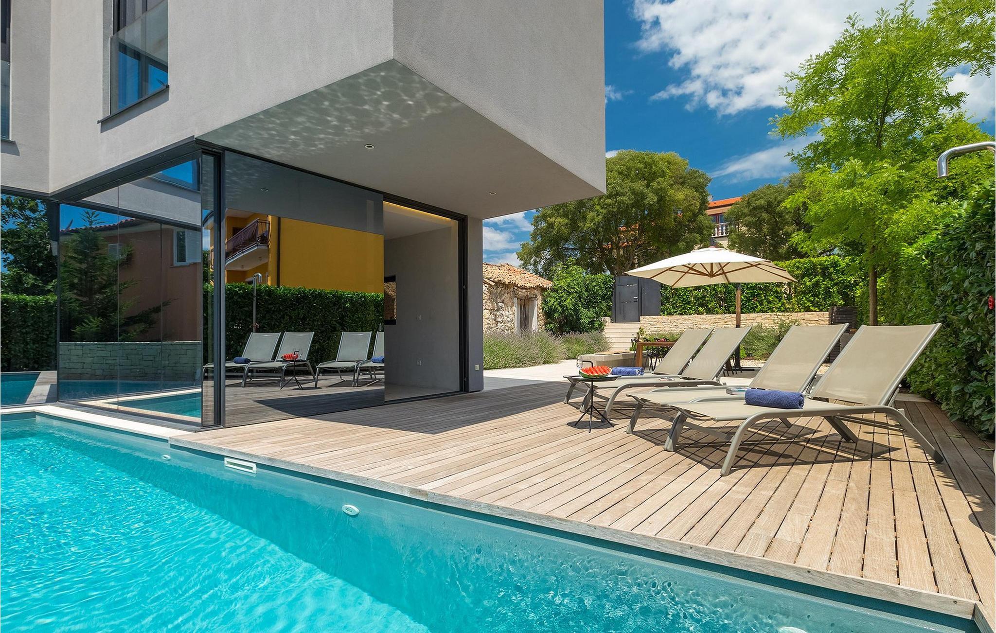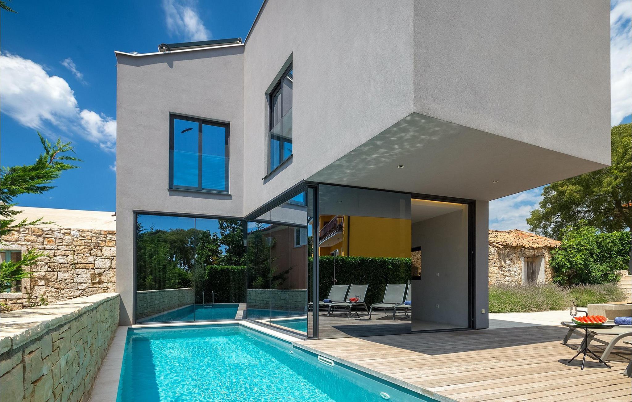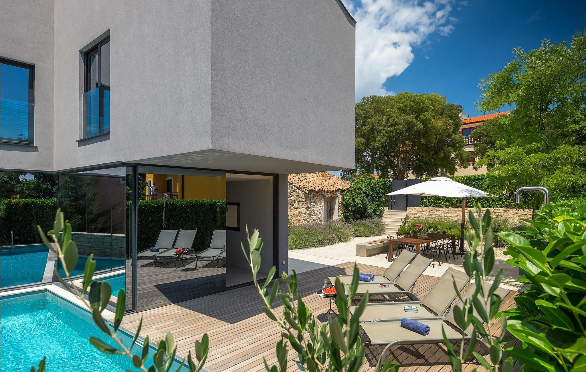 Villa Hallo Sunshine er den perfekte villaen for deg som setter pris på design og arkitektur. Det er en majestetisk moderne tolkning av et perfekt feriehus i et tradisjonelt landskap. Hvis du ønsker å tilbringe en luksuriøs ferie i en stilfullt innredet, moderne villa, er dette det rette valget for deg. Det er fire soverom og tre bad tilgjengelig. Et spesielt sted er definitivt taket, hvor det er et boblebad. Her kan du tilbringe romantiske kvelder med fantastisk utsikt over Adriaterhavet, mens duftene av urter fra middelhavshagen får sansene til å slappe av.