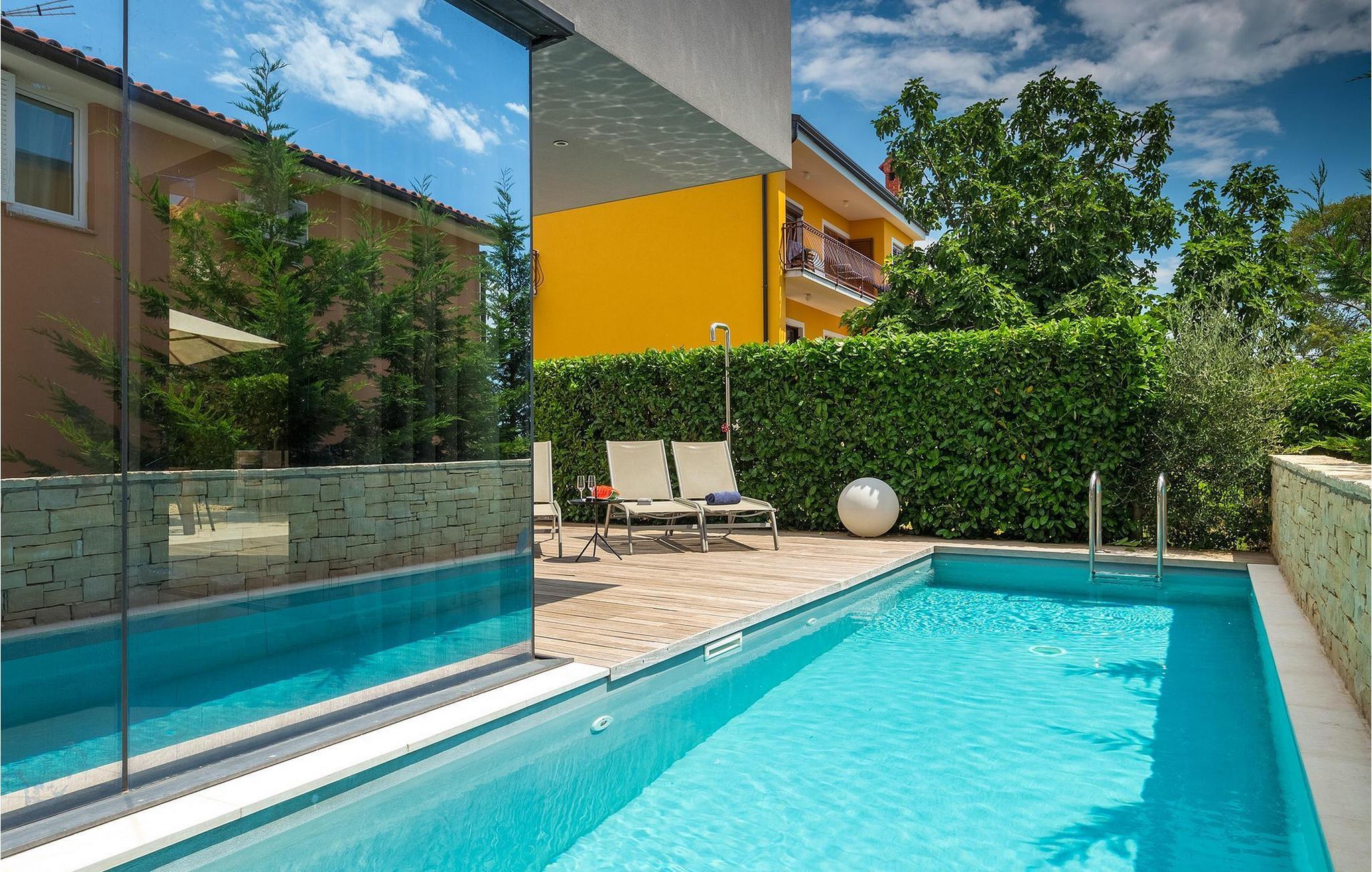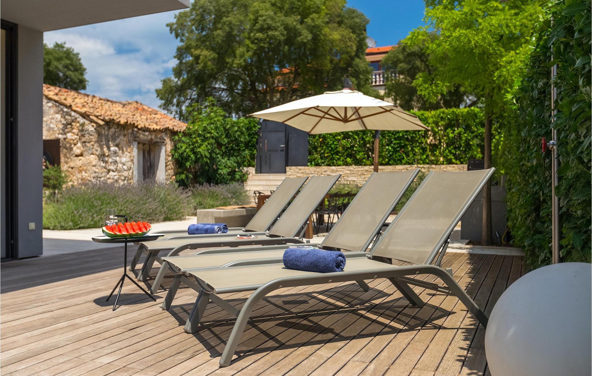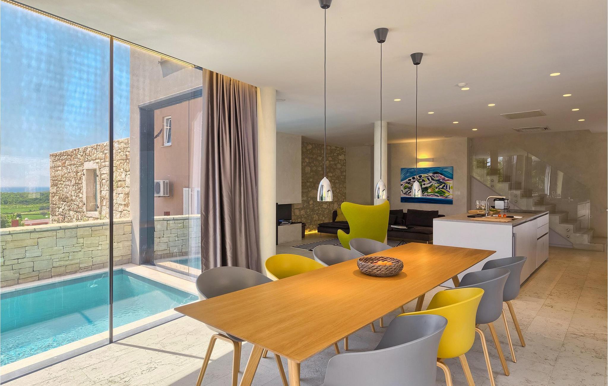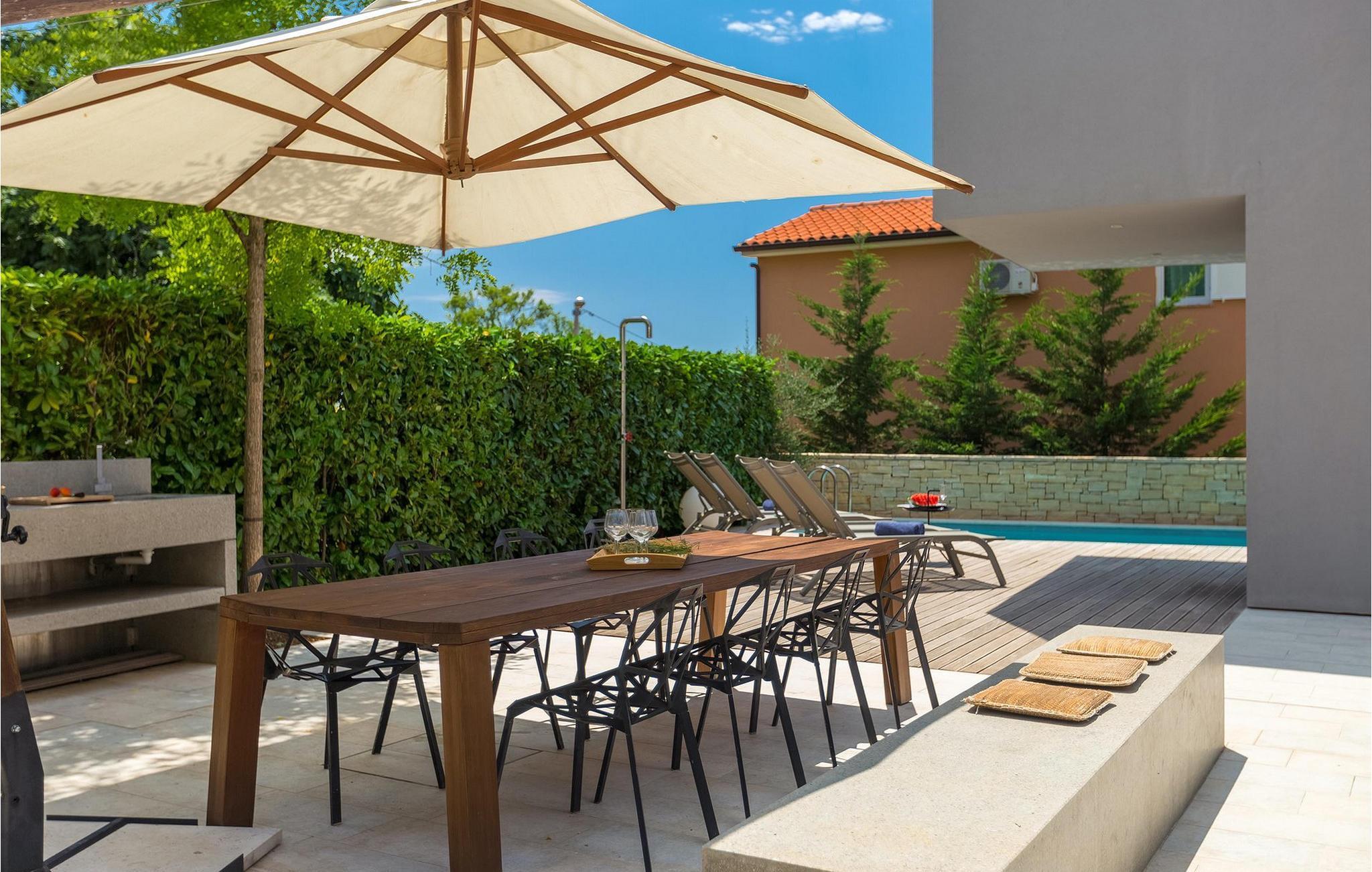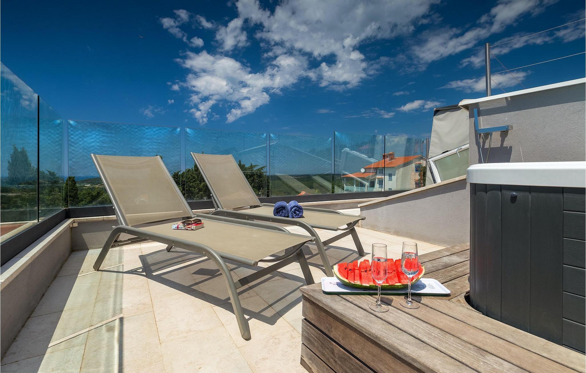 Villa Hallo Sunshine er den perfekte villaen for deg som setter pris på design og arkitektur. Det er en majestetisk moderne tolkning av et perfekt feriehus i et tradisjonelt landskap. Hvis du ønsker å tilbringe en luksuriøs ferie i en stilfullt innredet, moderne villa, er dette det rette valget for deg. Det er fire soverom og tre bad tilgjengelig. Et spesielt sted er definitivt taket, hvor det er et boblebad. Her kan du tilbringe romantiske kvelder med fantastisk utsikt over Adriaterhavet, mens duftene av urter fra middelhavshagen får sansene til å slappe av.