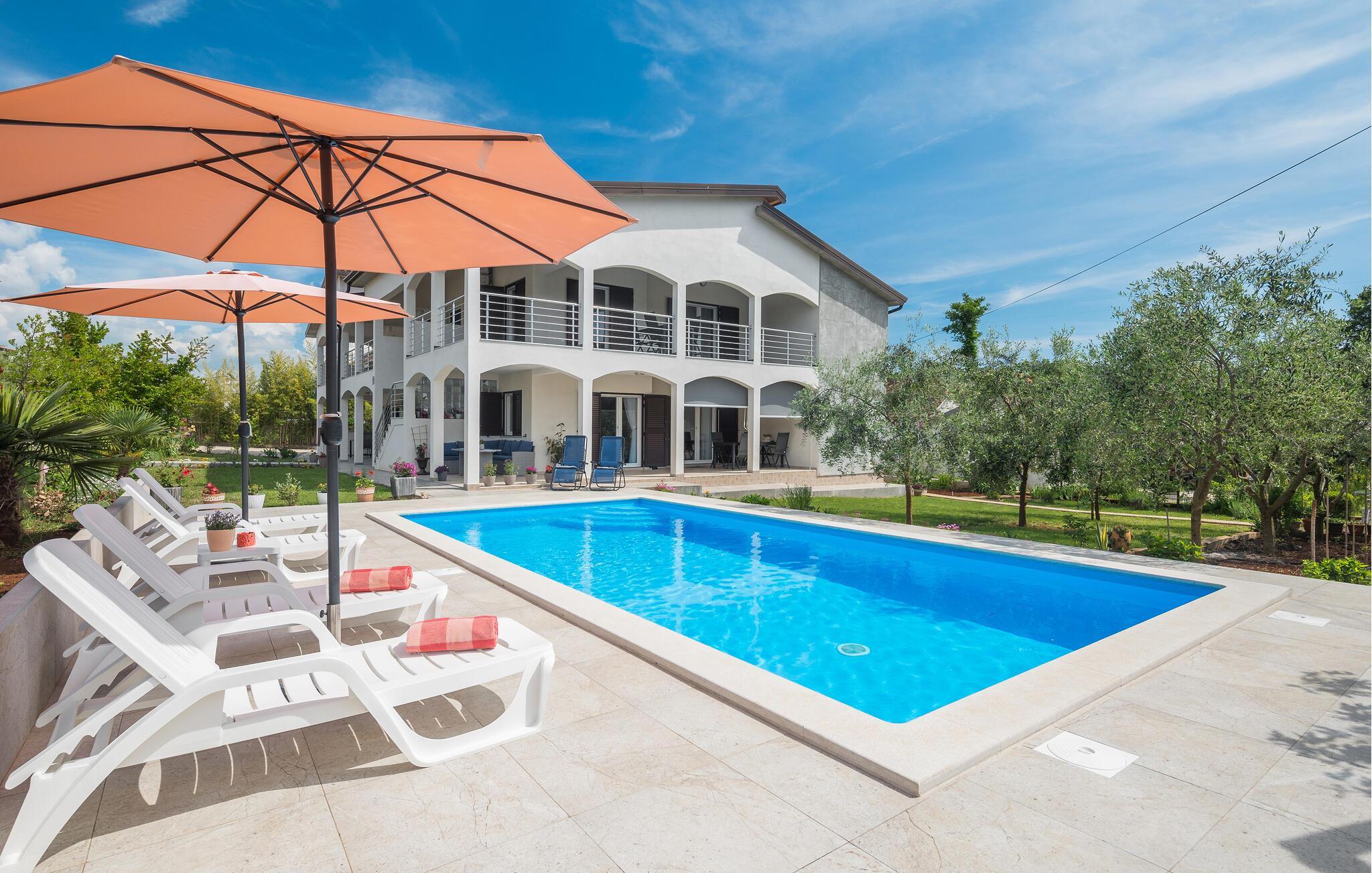 Ta en forfriskende dukkert i det felles bassenget og nyt solen på terrassen.