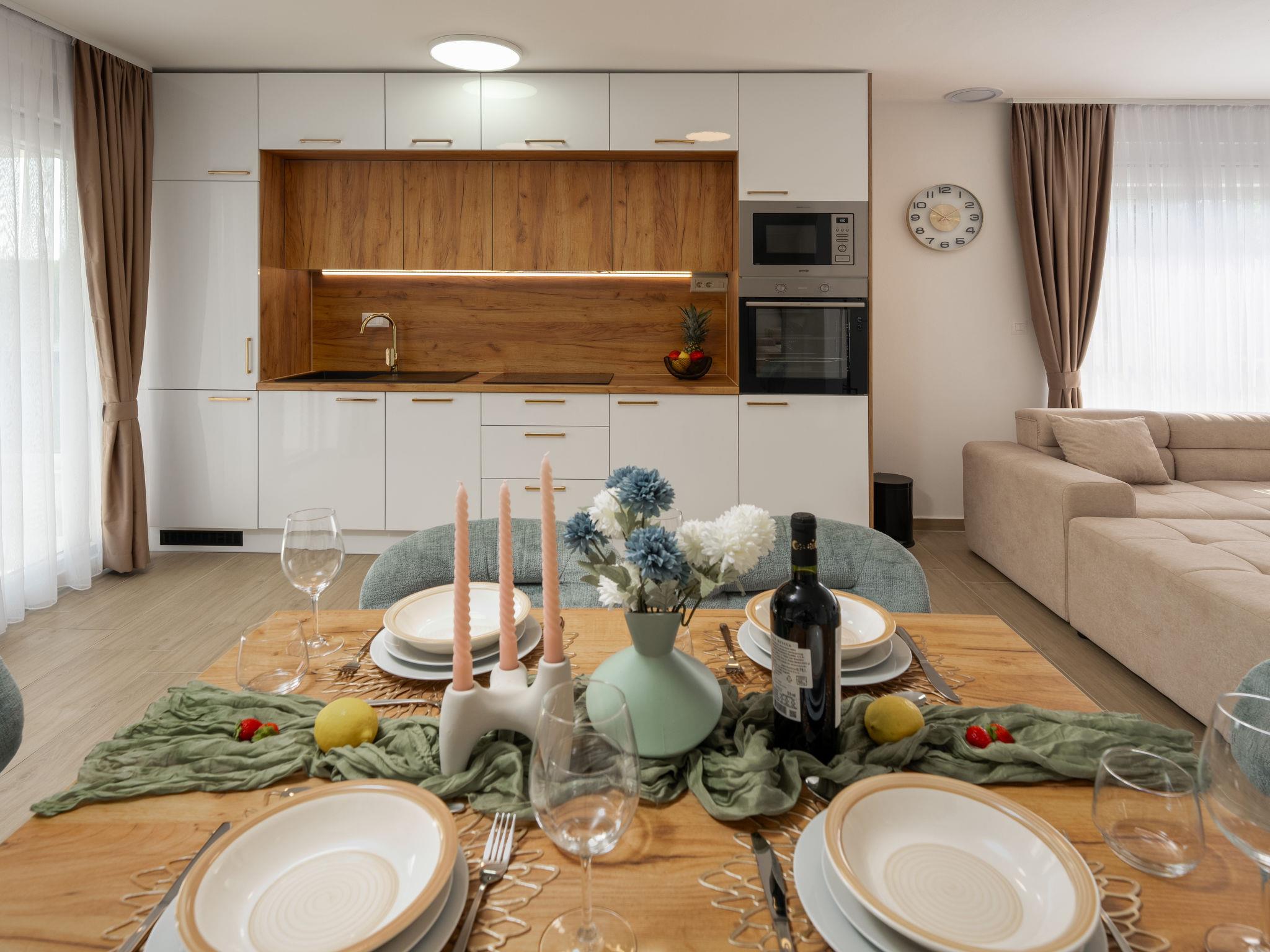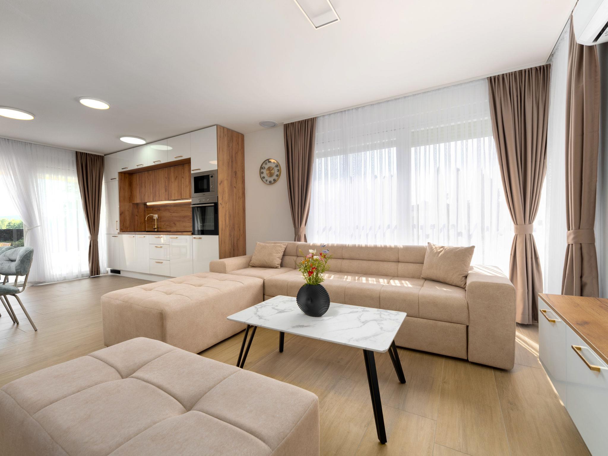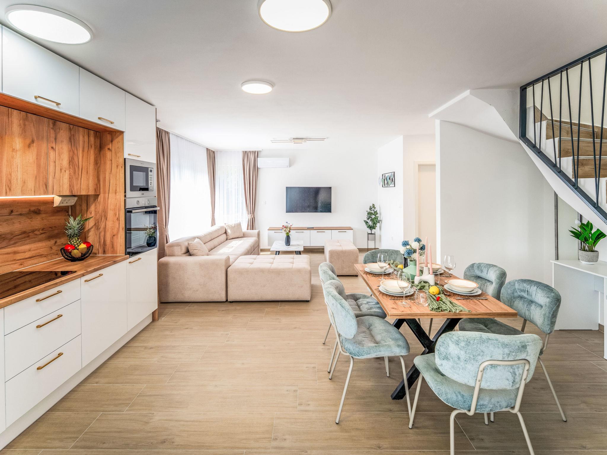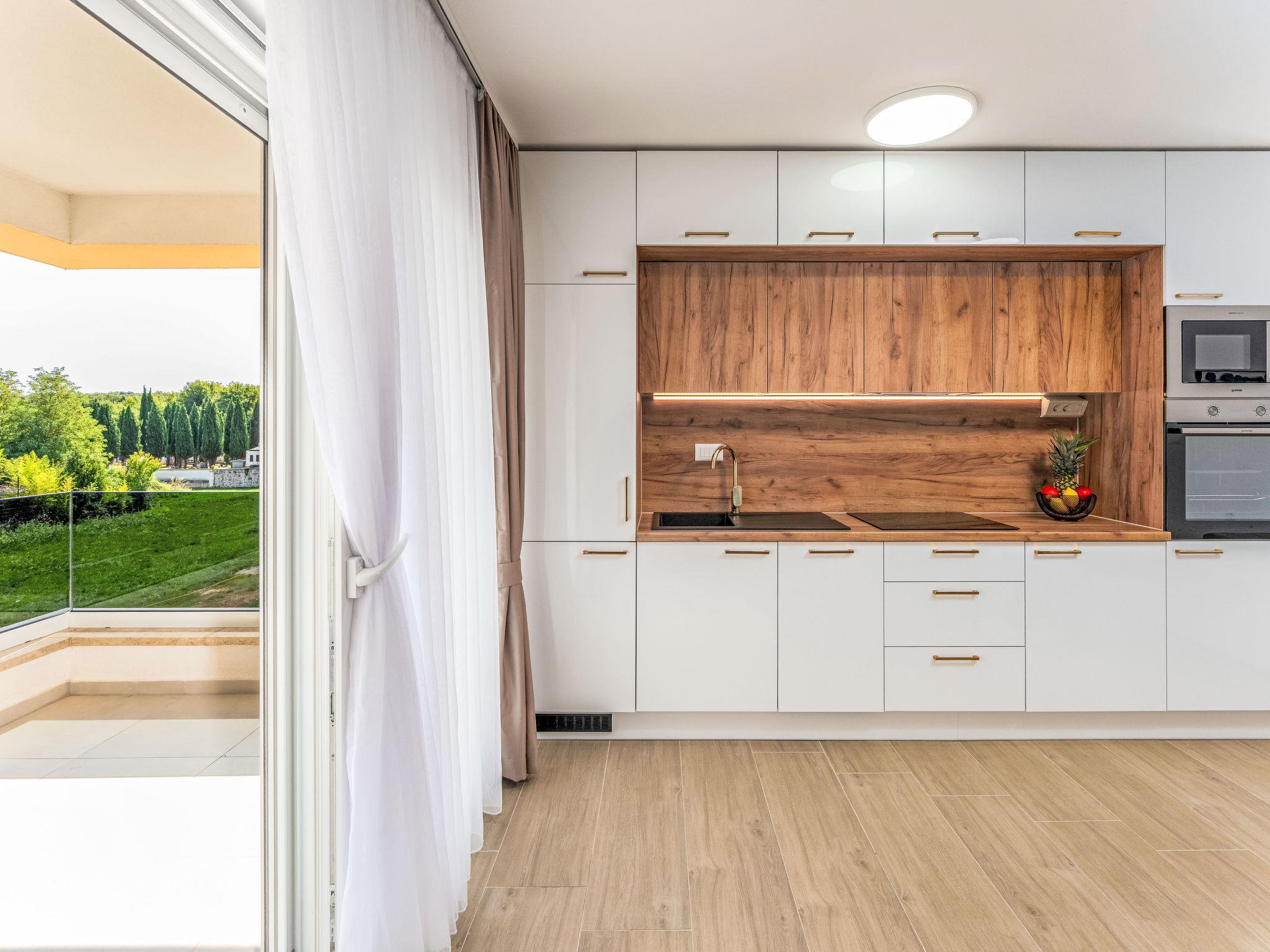 Modern apartment house "Mediterranee Oliva", 3 storeys. 3 apartments in the residence. 800 m from the centre of Funtana, 2.7 km from the centre of Vrsar, 7.5 km from the centre of Porec, 850 m from the sea, 850 m from the beach. For shared use: property 300 m2 with plants. In the house: internet access. Motor access (5 m via unmade road). Shop 120 m, supermarket 1.2 km, restaurant, bar 120 m, bakery 750 m, café 120 m, bus stop 800 m, pebble beach, rocky beach 850 m, diving center 2.7 km. Tennis 800 m, walking paths from the house, cycle lane 50 m. Nearby attractions: Dinopark 180 m, Winery 3 km, Adrenalink park 21 km. Please note: airfield 54 km from the property.