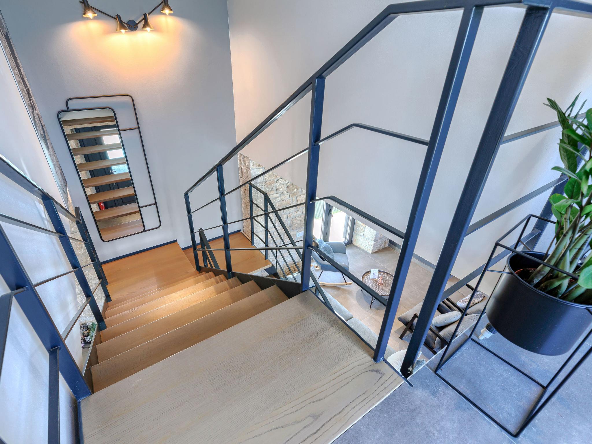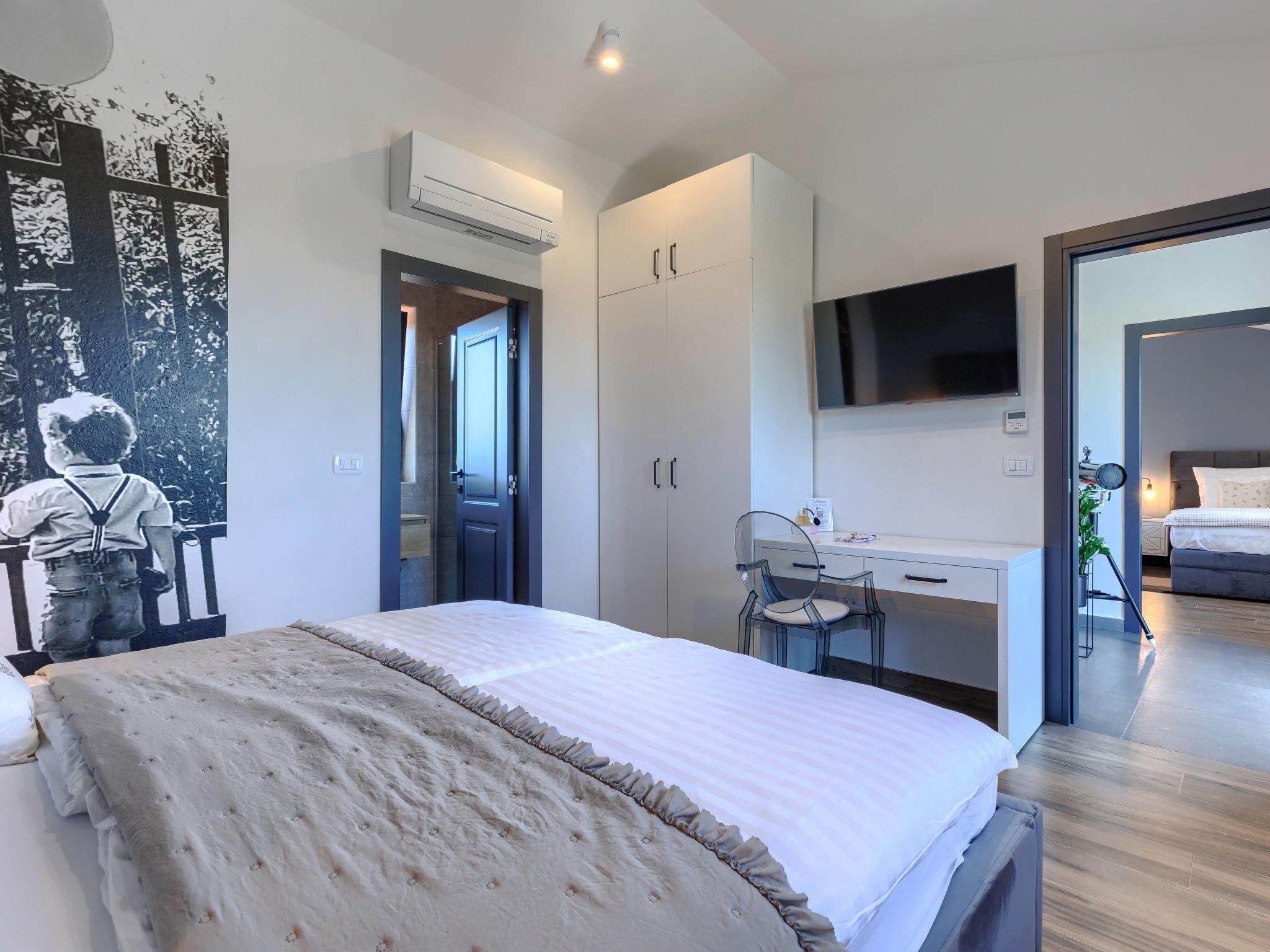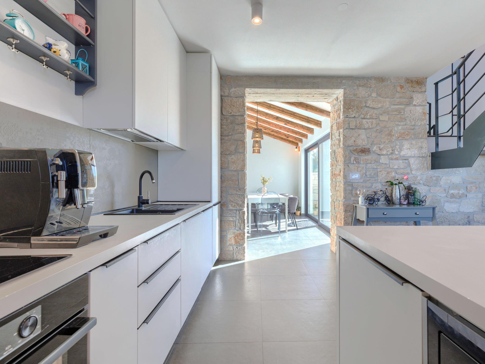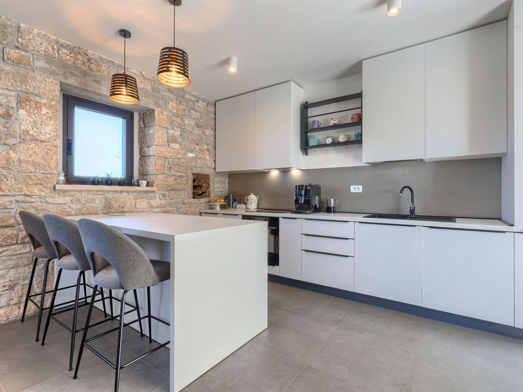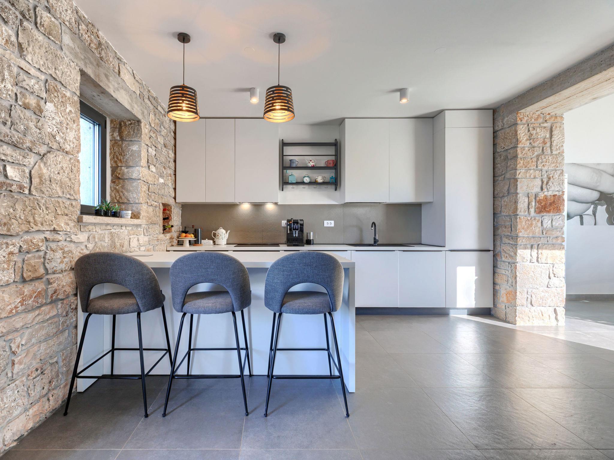 Modern, beautiful single-family house "Villa Tiamo", 2 storeys. In the hamlet Labinci 3 km from the centre of Kaštelir, 13 km from the centre of Porec, in a sunny position, 11 km from the sea. Private: property 350 m2 (fenced) with lawn and wildlife garden, swimming pool kidney shaped (6 x 6 m, depth 150 cm, seasonal availability: 01.Apr. - 01.Nov.) with internal staircase and salt-electrolysis pool-cleaning system. Outdoor shower, garden furniture, barbecue, pool maintenance by the owner/gardener. In the house: internet access, washing machine, tumble dryer. Parking (for 2 cars) at the house on the premises. E-charging station. Shop 300 m, supermarket 7 km, restaurant, bus stop 600 m, pebble beach 11 km, rocky beach 11 km. Nearby attractions: Aquapark 17 km. The owner does not accept any youth groups.