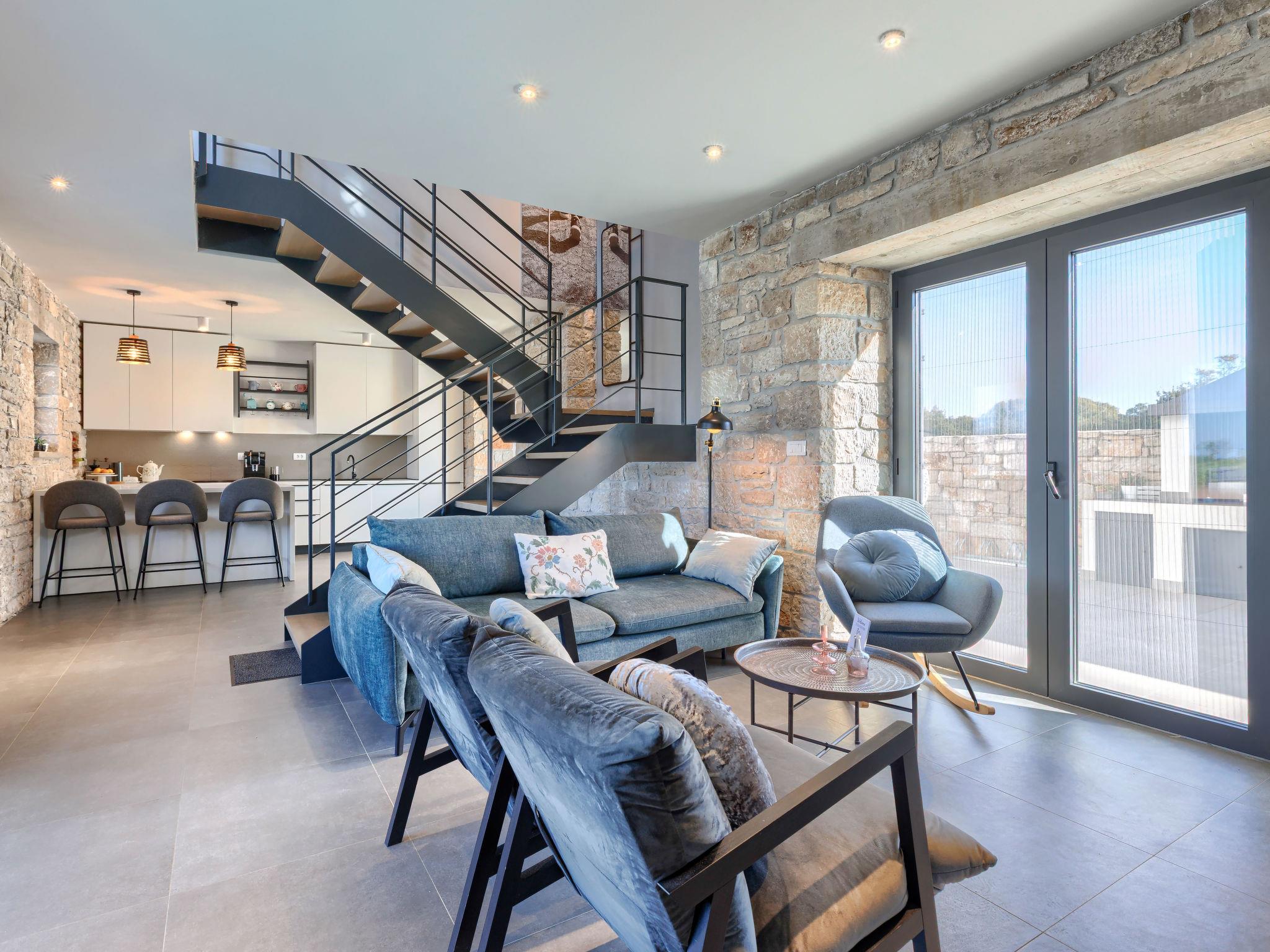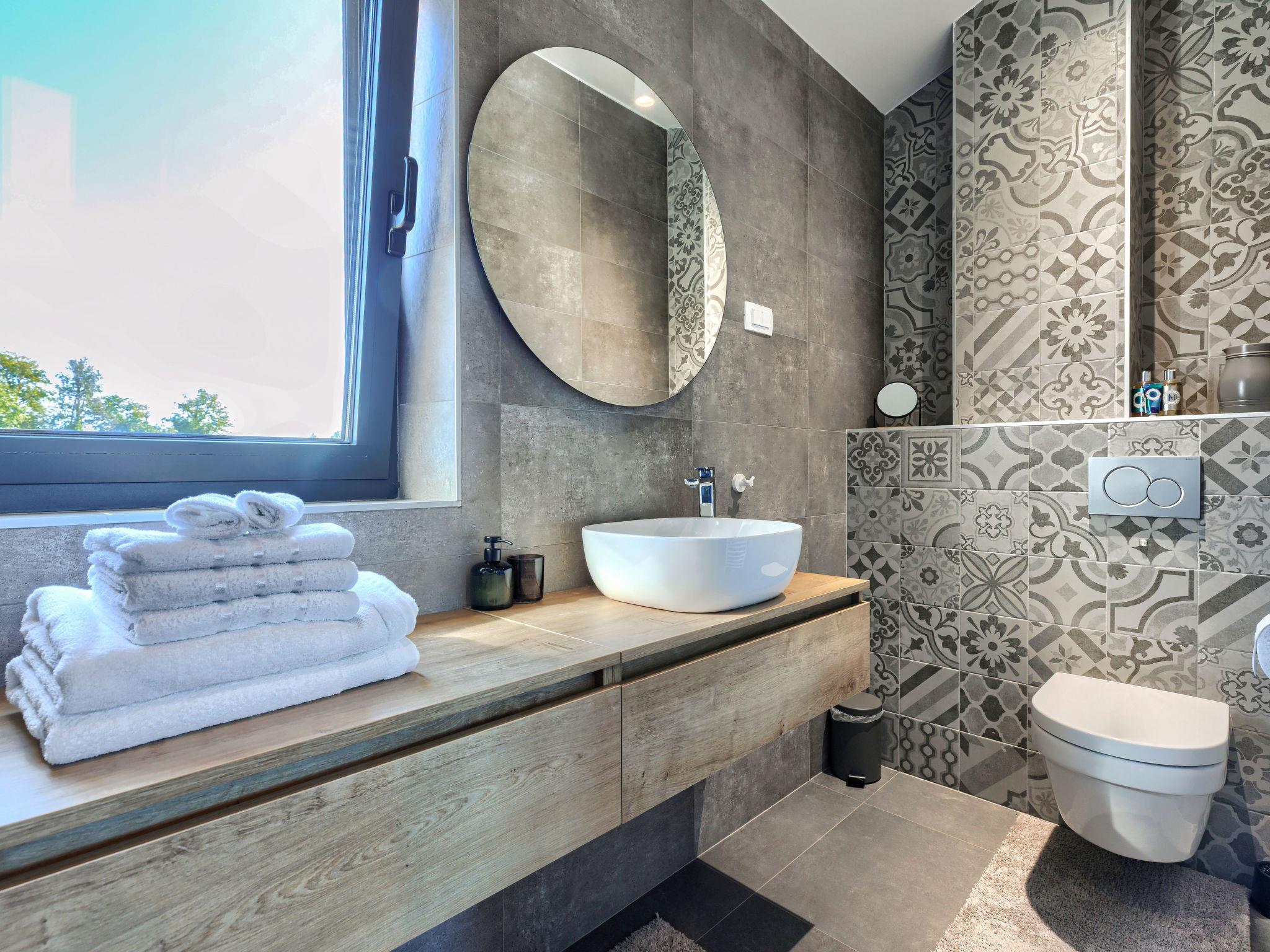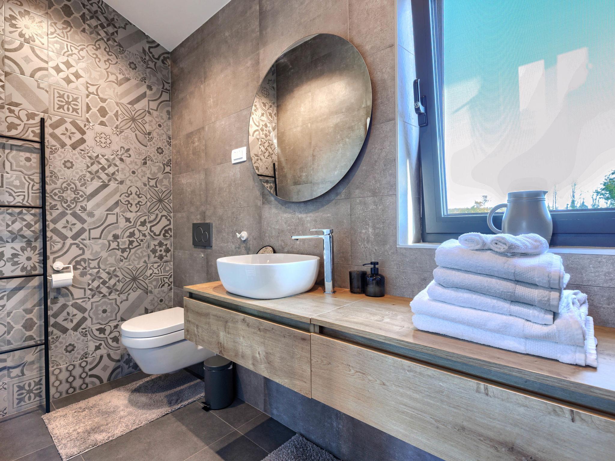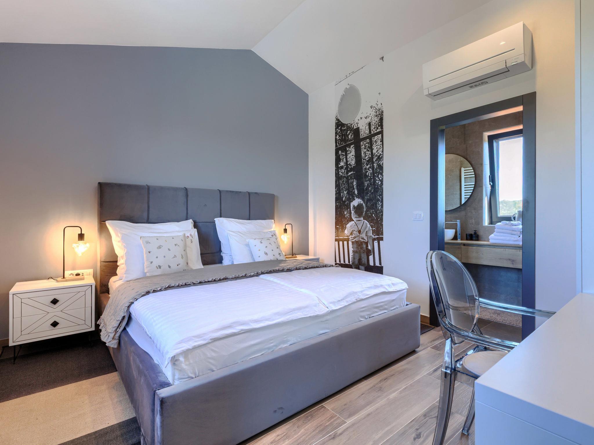 Modern, beautiful single-family house "Villa Tiamo", 2 storeys. In the hamlet Labinci 3 km from the centre of Kaštelir, 13 km from the centre of Porec, in a sunny position, 11 km from the sea. Private: property 350 m2 (fenced) with lawn and wildlife garden, swimming pool kidney shaped (6 x 6 m, depth 150 cm, seasonal availability: 01.Apr. - 01.Nov.) with internal staircase and salt-electrolysis pool-cleaning system. Outdoor shower, garden furniture, barbecue, pool maintenance by the owner/gardener. In the house: internet access, washing machine, tumble dryer. Parking (for 2 cars) at the house on the premises. E-charging station. Shop 300 m, supermarket 7 km, restaurant, bus stop 600 m, pebble beach 11 km, rocky beach 11 km. Nearby attractions: Aquapark 17 km. The owner does not accept any youth groups.