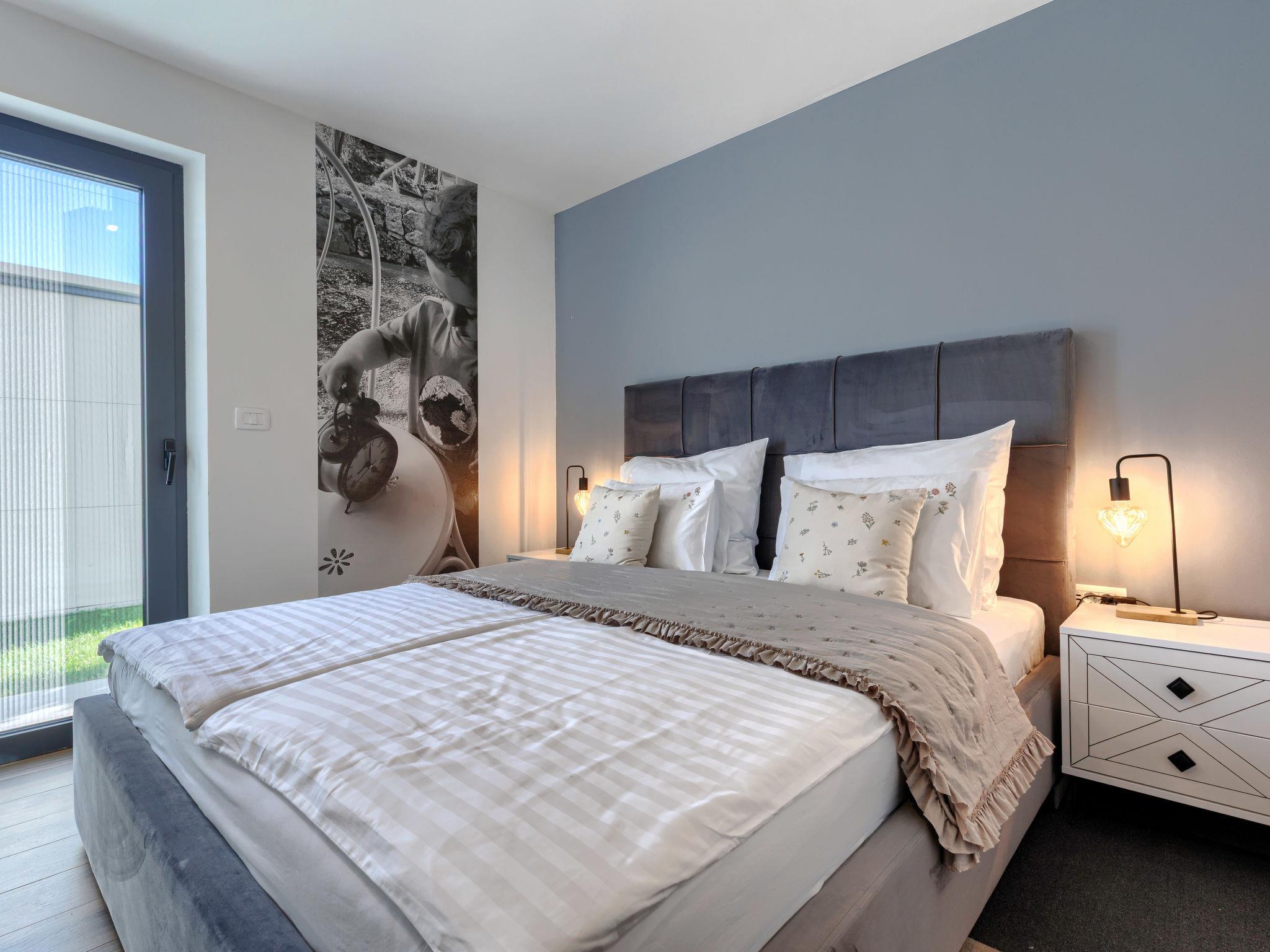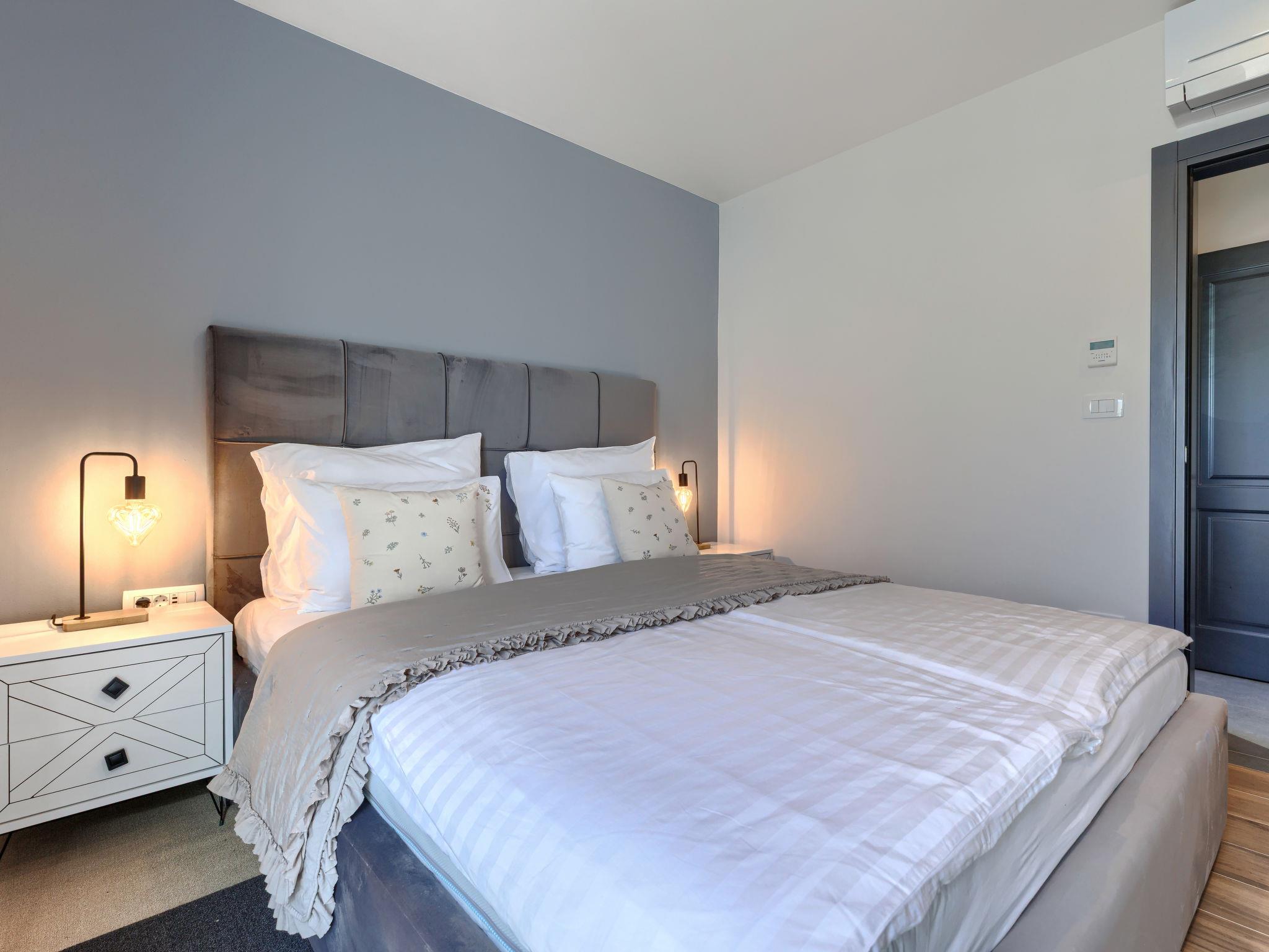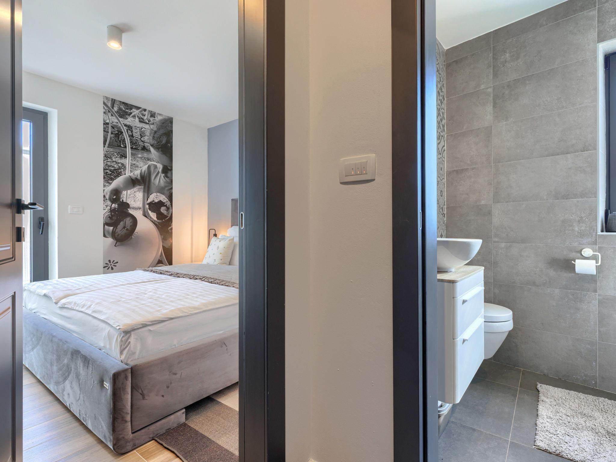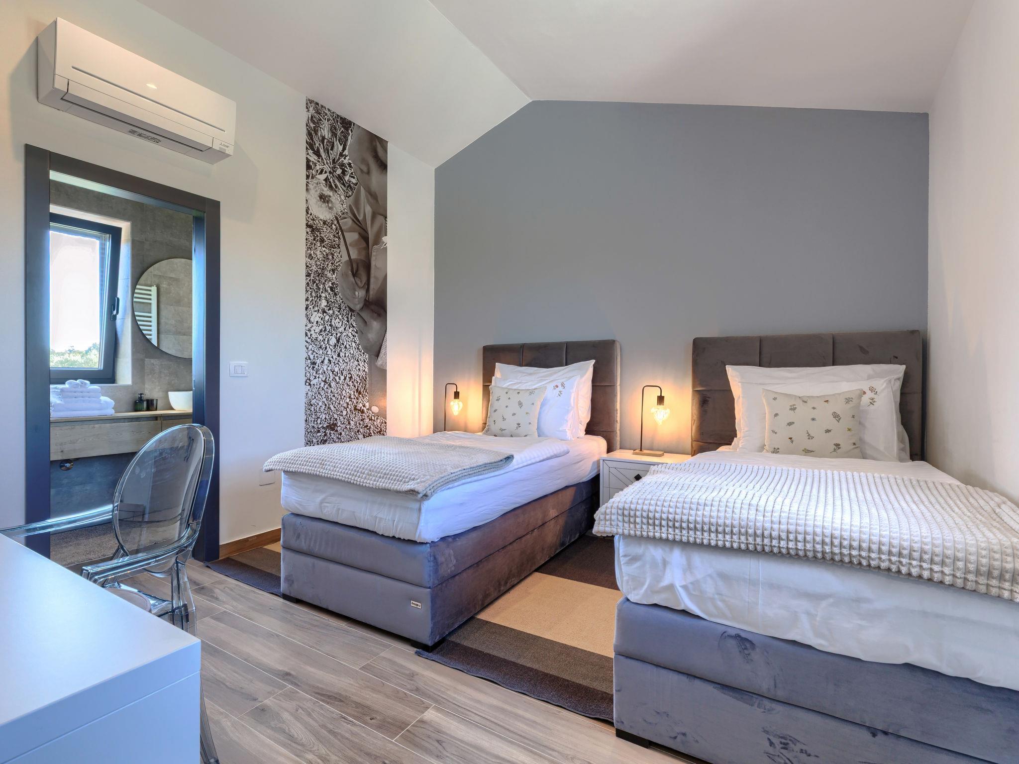 Modern, beautiful single-family house "Villa Tiamo", 2 storeys. In the hamlet Labinci 3 km from the centre of Kaštelir, 13 km from the centre of Porec, in a sunny position, 11 km from the sea. Private: property 350 m2 (fenced) with lawn and wildlife garden, swimming pool kidney shaped (6 x 6 m, depth 150 cm, seasonal availability: 01.Apr. - 01.Nov.) with internal staircase and salt-electrolysis pool-cleaning system. Outdoor shower, garden furniture, barbecue, pool maintenance by the owner/gardener. In the house: internet access, washing machine, tumble dryer. Parking (for 2 cars) at the house on the premises. E-charging station. Shop 300 m, supermarket 7 km, restaurant, bus stop 600 m, pebble beach 11 km, rocky beach 11 km. Nearby attractions: Aquapark 17 km. The owner does not accept any youth groups.