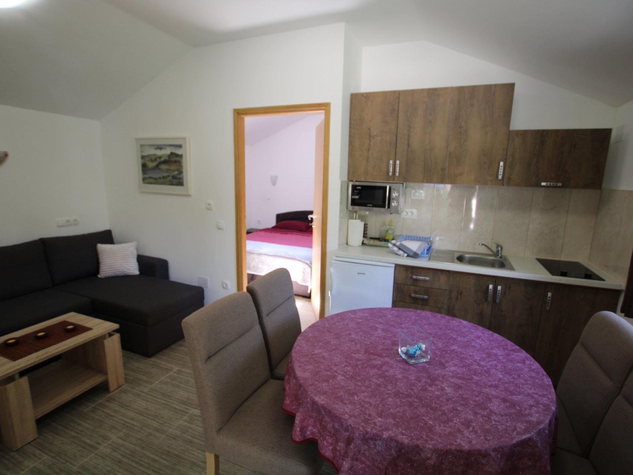 Apartment Green Garden A2 is a small family apartment with one bedroom and a pull-out couch for two children.Peaceful surroundings with a small shared pool and a view of the green garden.