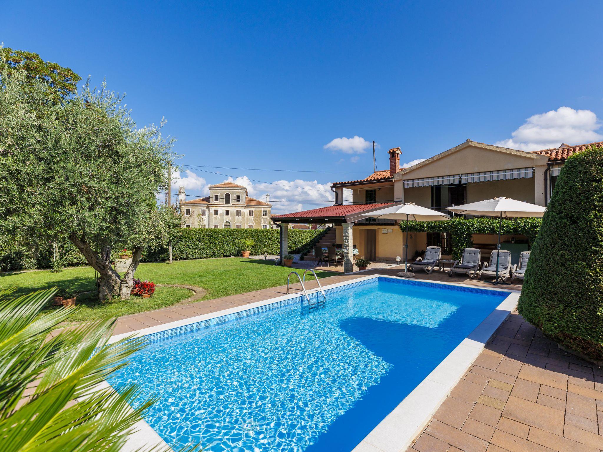 Tar 7 km from Porec: Beautiful, rustic single-family house "Villa Maria", 2 storeys, built in 1900. In the centre of Tar, in a sunny position, 3 km from the sea, 3 km from the beach. Private: property 550 m2 (fenced) with lawn and wildlife garden, swimming pool angular (24 m2, depth 140 cm, seasonal availability: 01.May. - 01.Oct.). Outdoor shower, terrace (20 m2), garden furniture, barbecue. In the house: internet access, burglar alarm system, washing machine. Roofed, parking at the house on the premises. Shop 200 m, supermarket 1 km, restaurant 100 m, café 80 m, bus stop 800 m, pebble beach 3 km, rocky beach 3 km. Tennis 3 km, walking paths from the house 100 m, cycle lane 150 m. Nearby attractions: Adrenaline park 5 km, Aquapark 8 km.