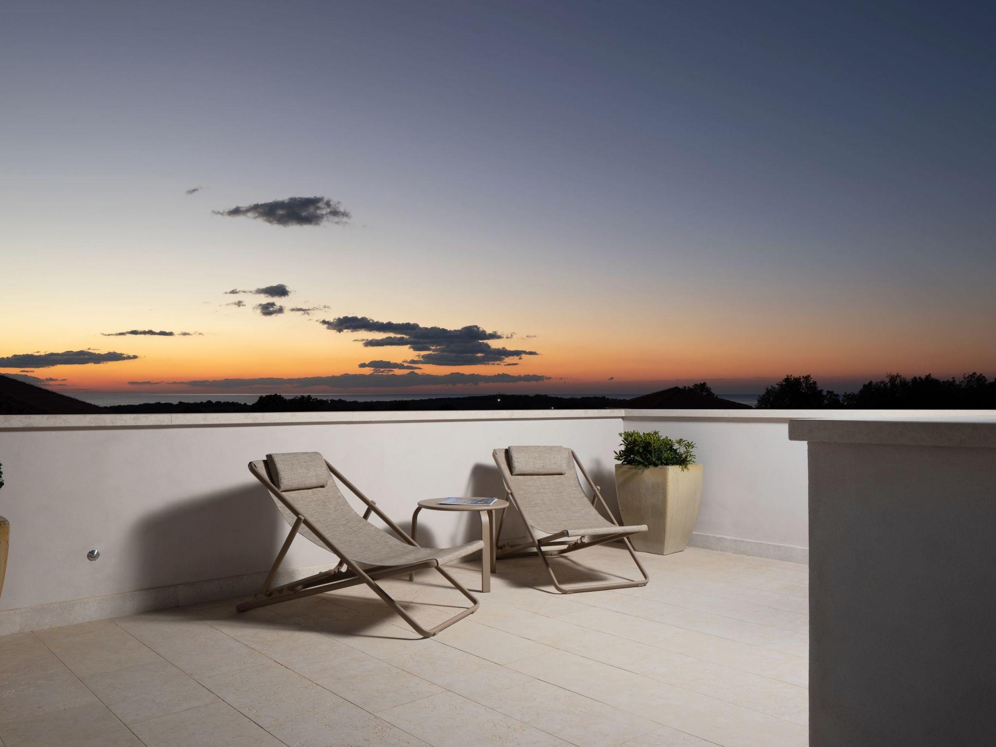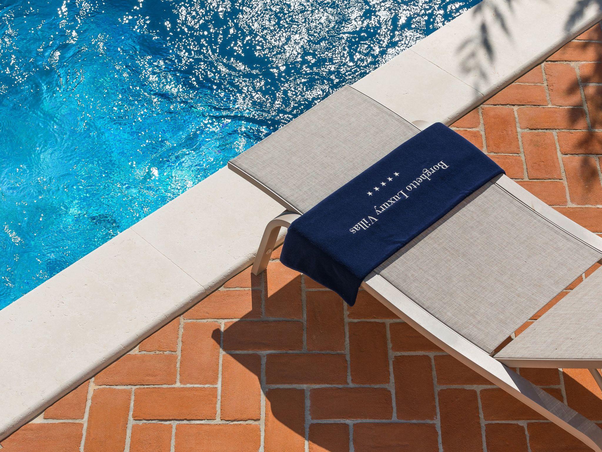 5-room villa 287 m2 on 2 levels. Modern and tasteful furnishings: living/dining room with satellite TV and air conditioning. Exit to the swimming pool. 1 room with 1 french bed (180 cm, length 200 cm), shower/bidet/WC and air conditioning. Exit to the swimming pool. Open kitchen (oven, dishwasher, 4 ceramic glass hob hotplates, toaster, kettle, freezer, electric coffee machine). Sep. WC. Upper floor: 1 room with 1 french bed (180 cm, length 200 cm), bath/bidet/WC and air conditioning. Exit to the terrace, to the swimming pool. 2 rooms, each room with 1 french bed (180 cm, length 200 cm), shower/bidet/WC and air conditioning. Forced-air heating. Terrace roofed. Terrace furniture, deck chairs. Panoramic view of the sea. Facilities: safe, iron, hair dryer. Internet (WiFi, free). Maximum 2 pets/ dogs allowed.