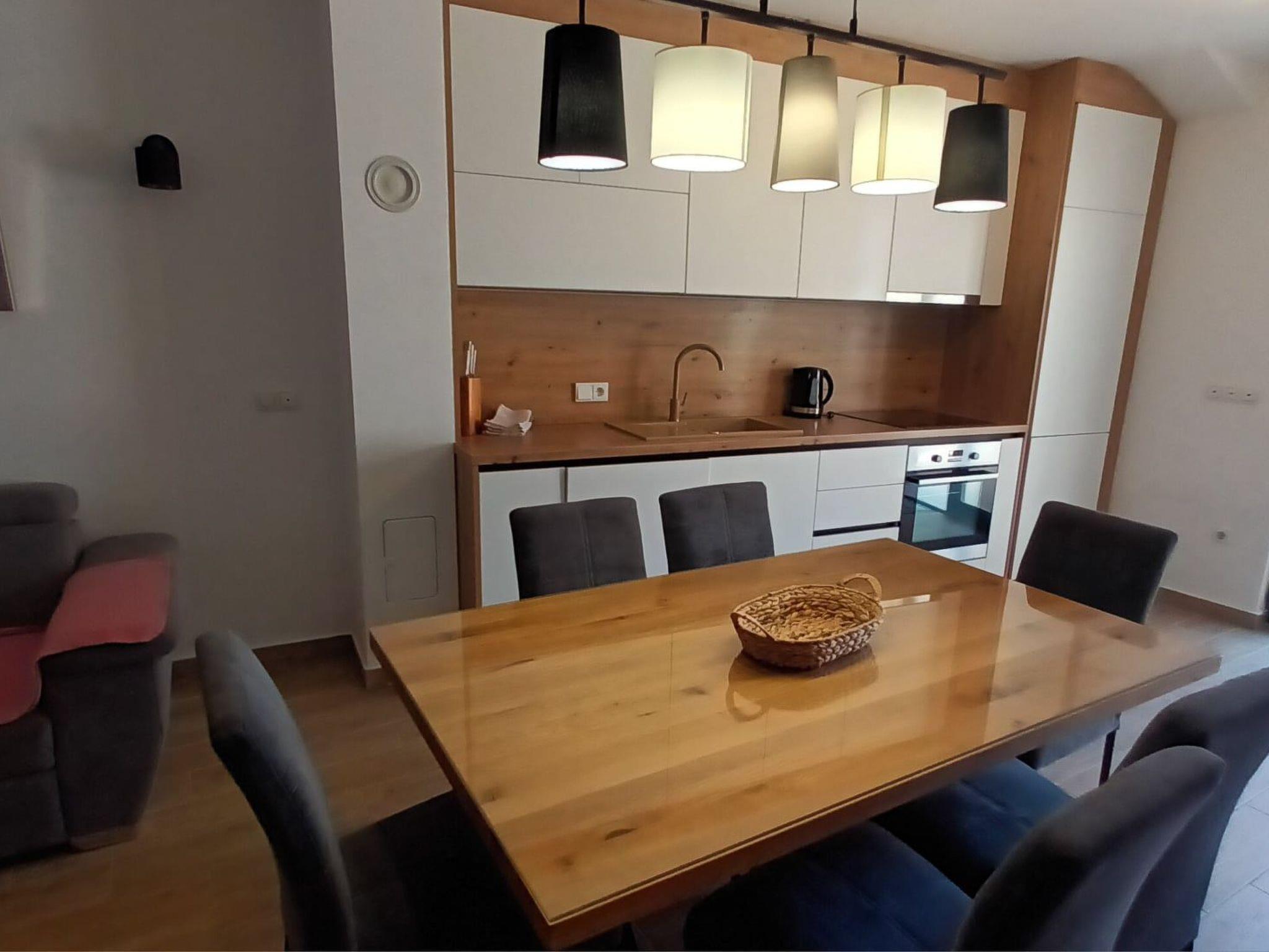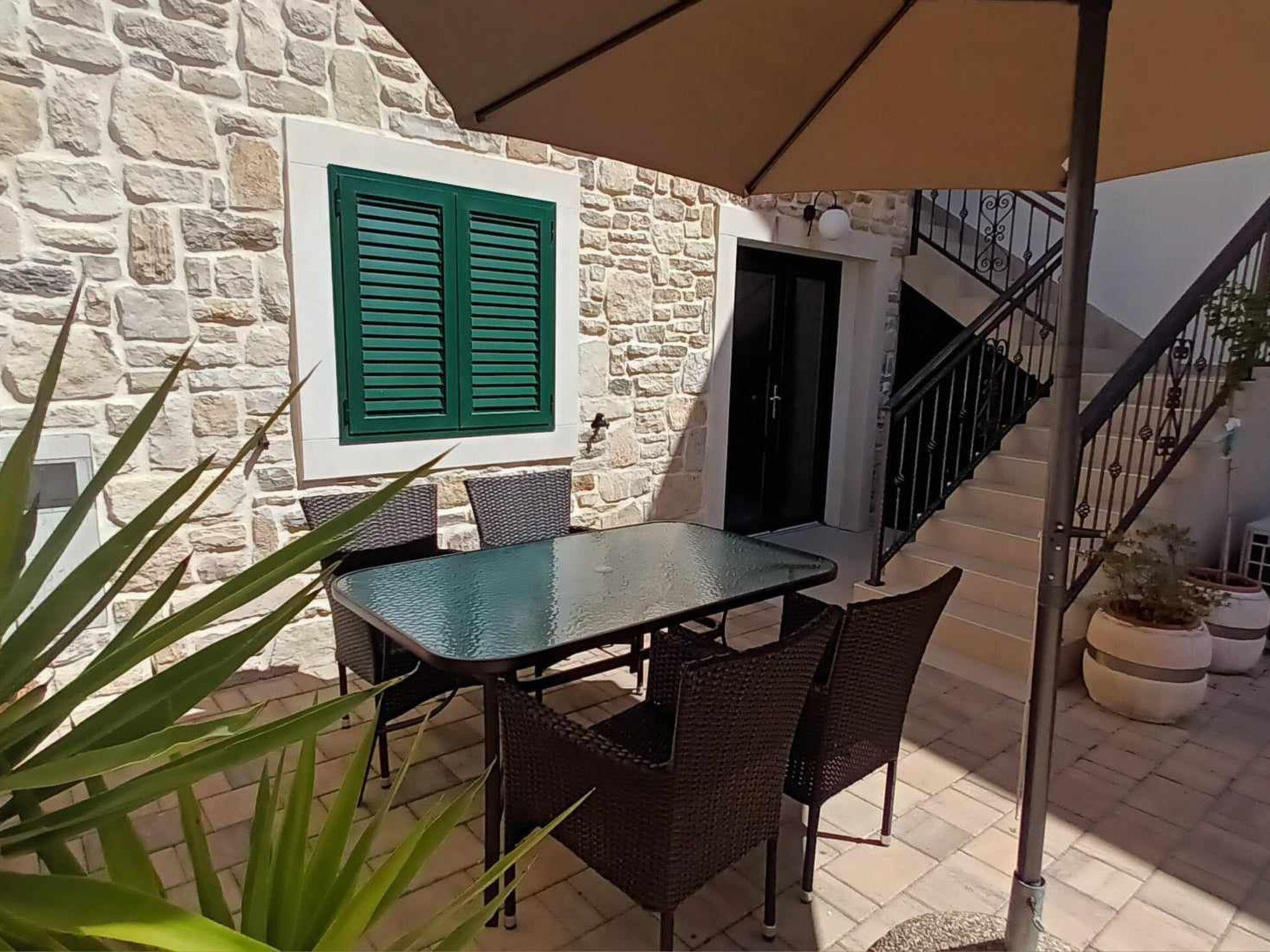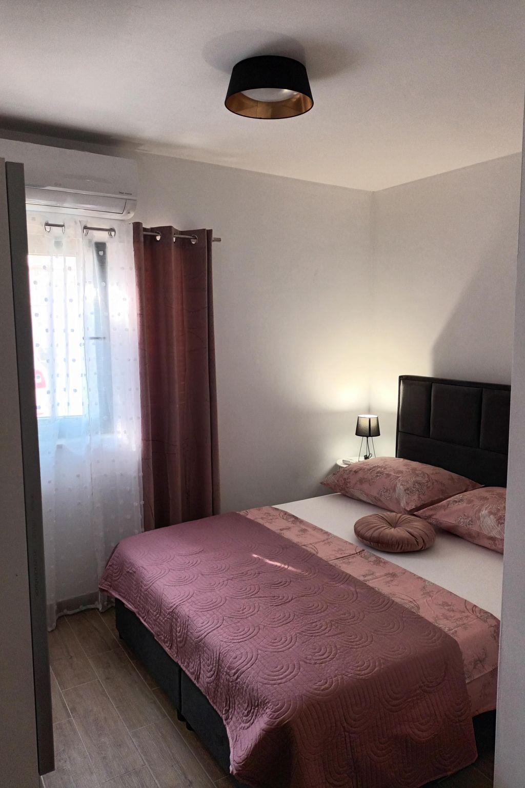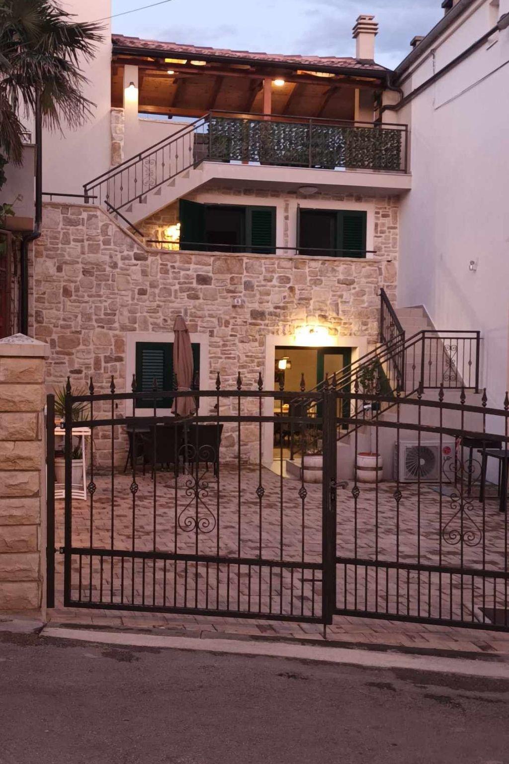 Ground floor- 1 bathroom, 1 bedroom, familyroom with kitchen.First floor-upstairs you go outside-2 bedrooms,1 bathroomSecend floor-terassa with jakuzzi (whirlpool) and sea view..,table, chairs, deck chairs.Grill is on parking . House is for 6+1.