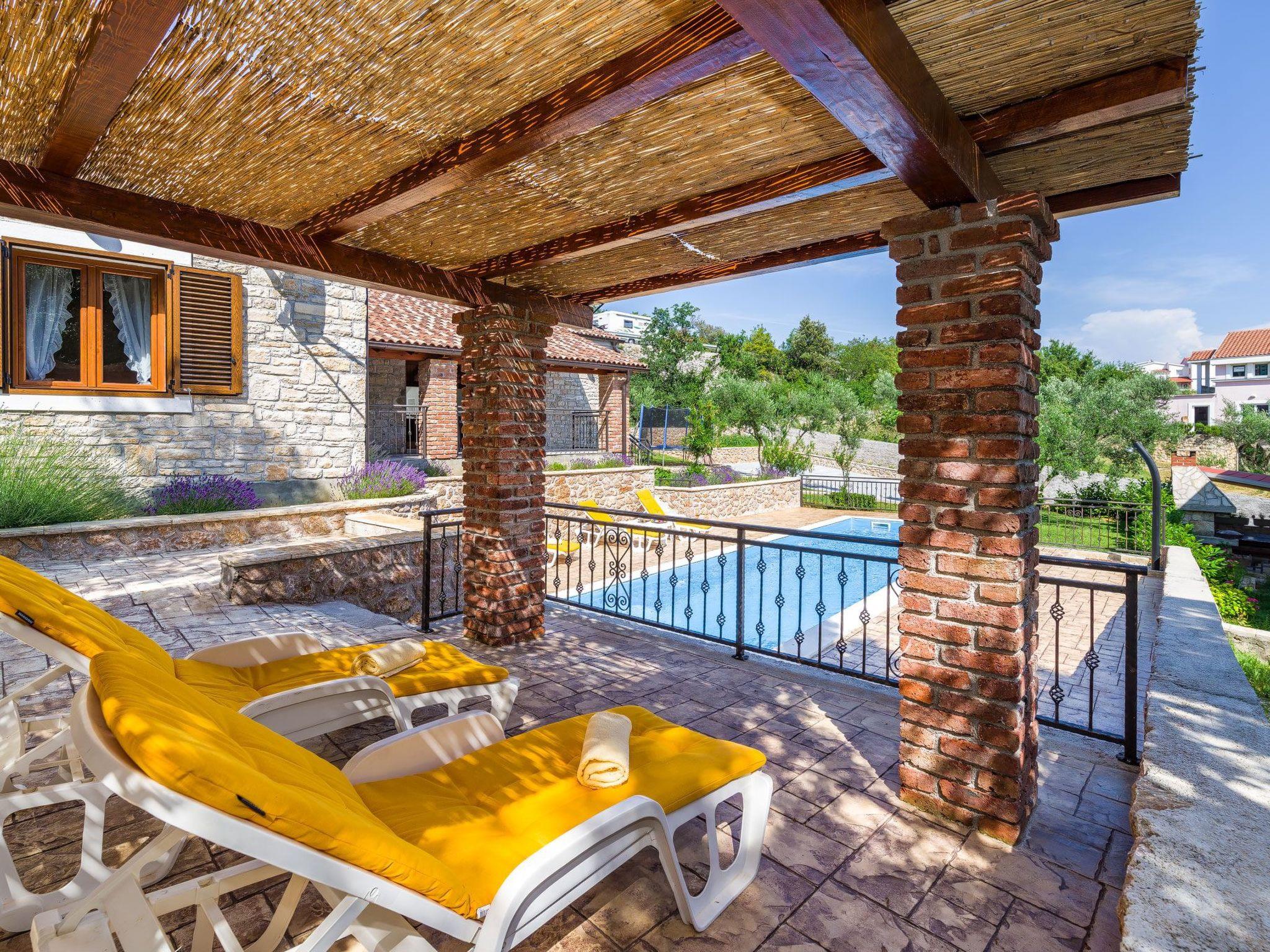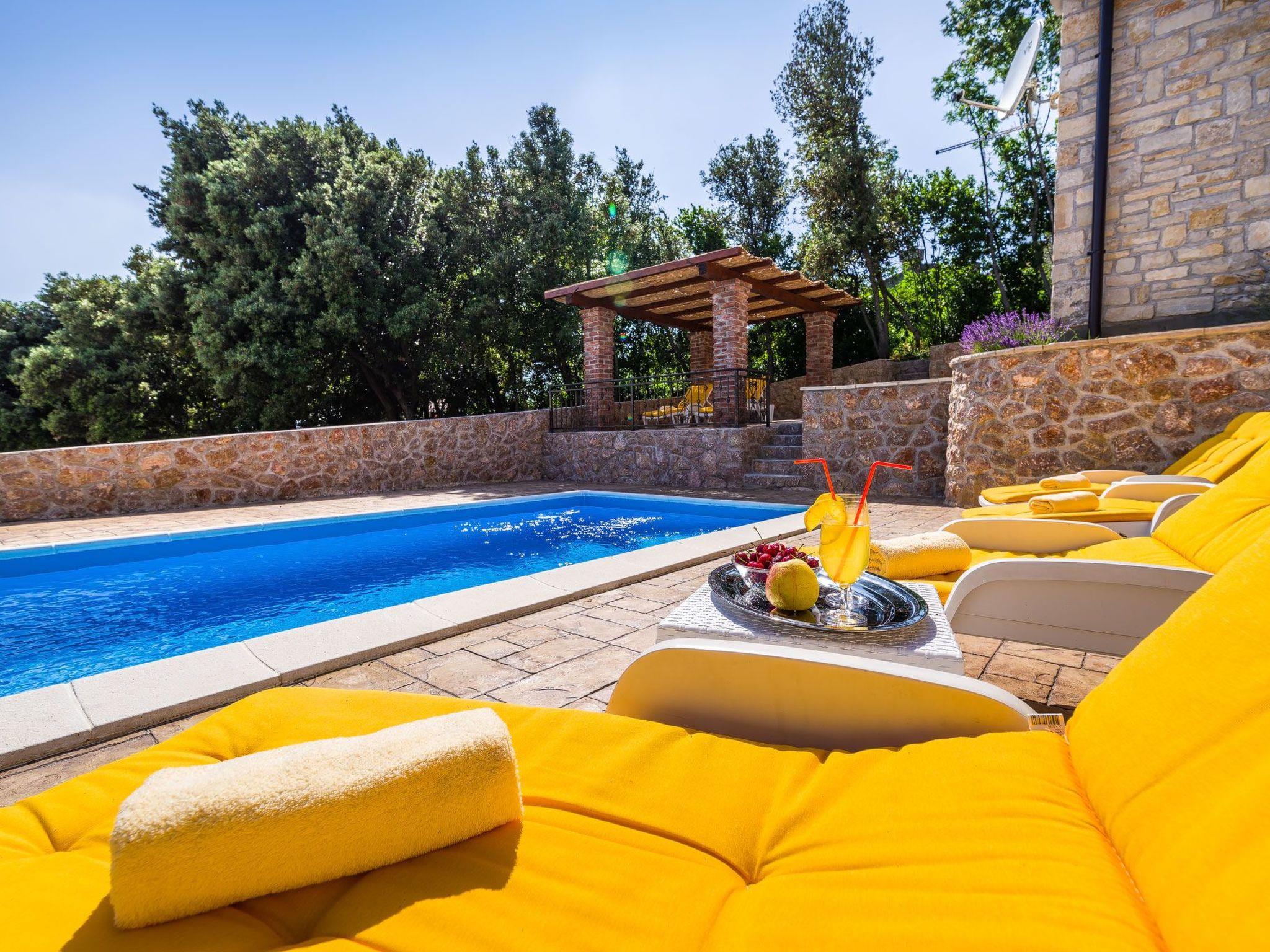 This holiday villa Roko is in the little village of Posedarje, about 20km from Zadar. The stone house was built in 2016, has a heated pool (up to 28,more on request-need to pay extra), offers a sea view and is just 80 metres from the beach. The little Posedarje community is away from mass tourism and is therefore especially suitable for families with children seeking privacy and peace and quiet.
