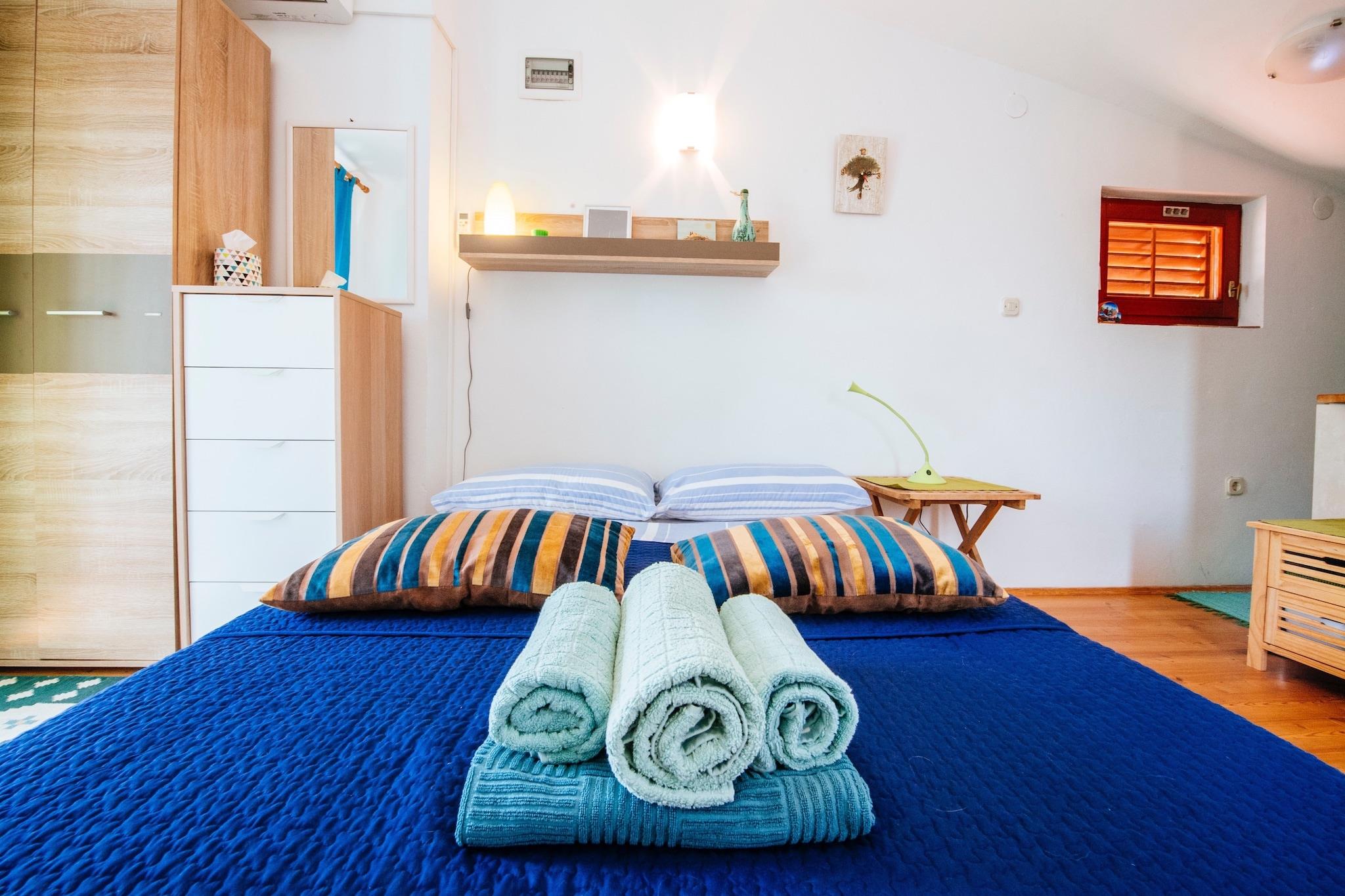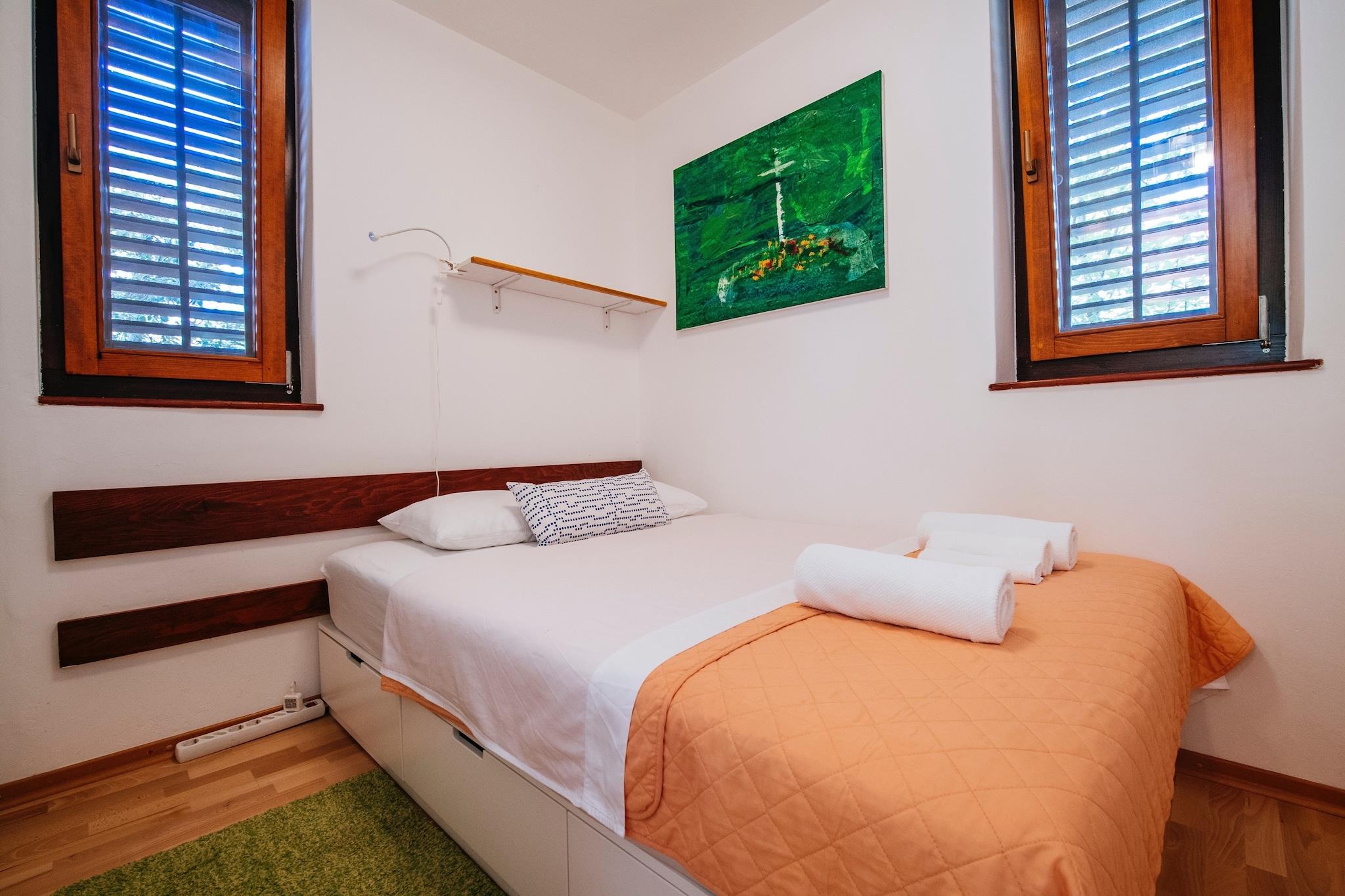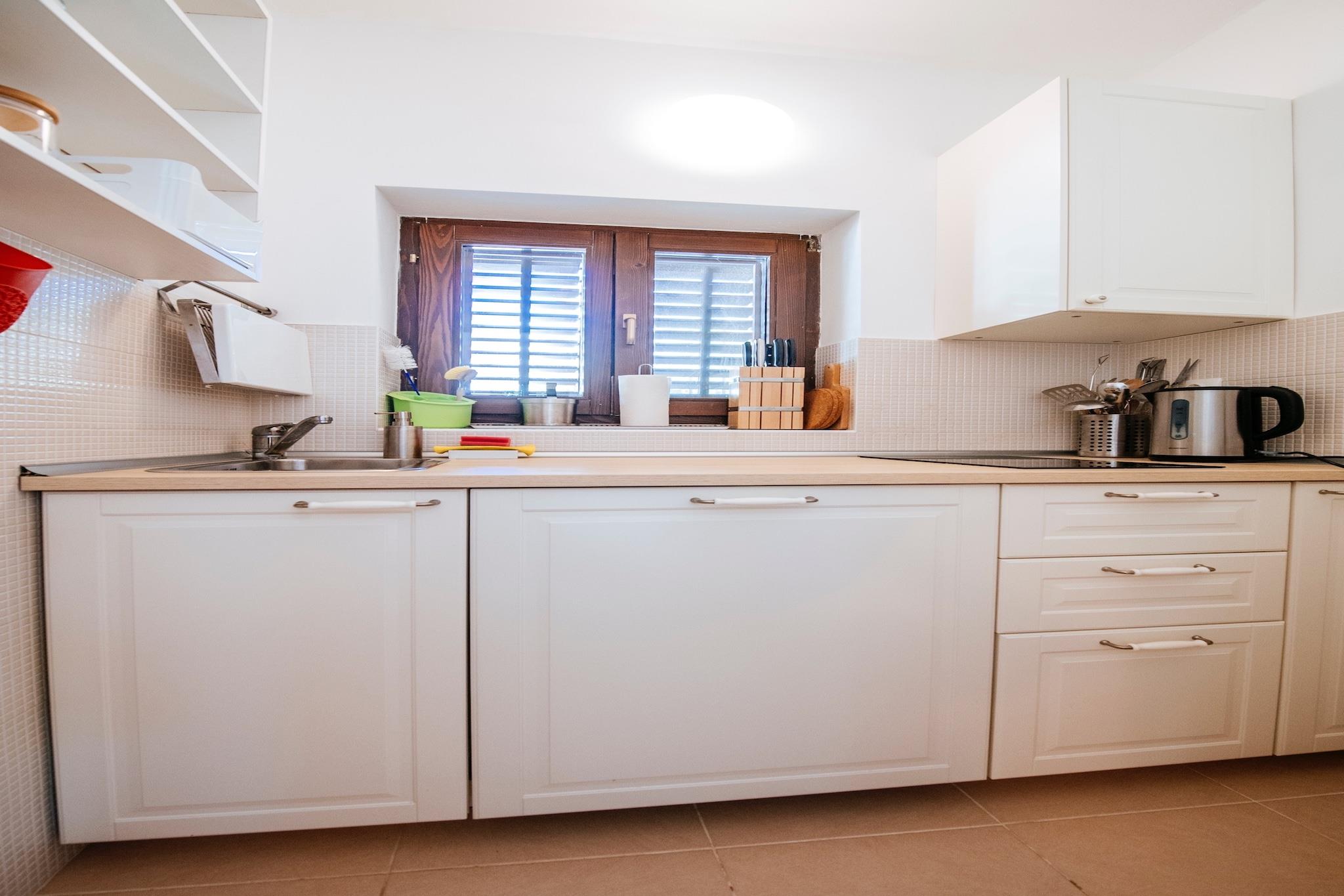 Denne sjarmerende leiligheten med 2 soverom i Posedarje vender ut mot stranden og har plass til opptil 4 gjester. Eiendommen passer for par og familier på ferie, og har også en privat hage og en privat terrasse med møbler hvor man kan slappe av og nyte den naturskjønne utsikten. Du bor et steinkast fra havet, perfekt for late kvelder. Det travle sentrum ligger også 1,5 km unna, hvor du kan handle i supermarkedene og spise ute på restaurantene. Kom hjem til en velmøblert og koselig leilighet etter en slitsom dag med reise. Nyt solen i den frodige, grønne hagen, eller eksperimenter med dine kulinariske ferdigheter over en morsom grillfest. Det er også en vakker uteplass hvor du kan slappe av. Du kan til og med slappe av ved den dekorative peisen i stuen og senere nyte en matlagingsøkt på det velutstyrte kjøkkenet. Parkering er på stedet. Offentlig transport er tilgjengelig 3 km unna, mens Zadar internasjonale lufthavn ligger 30 km unna. Dette hjemmet er ideelt for 4 gjester. For opphold utover dette vil hver ekstra voksen bli belastet EURO30 per natt.