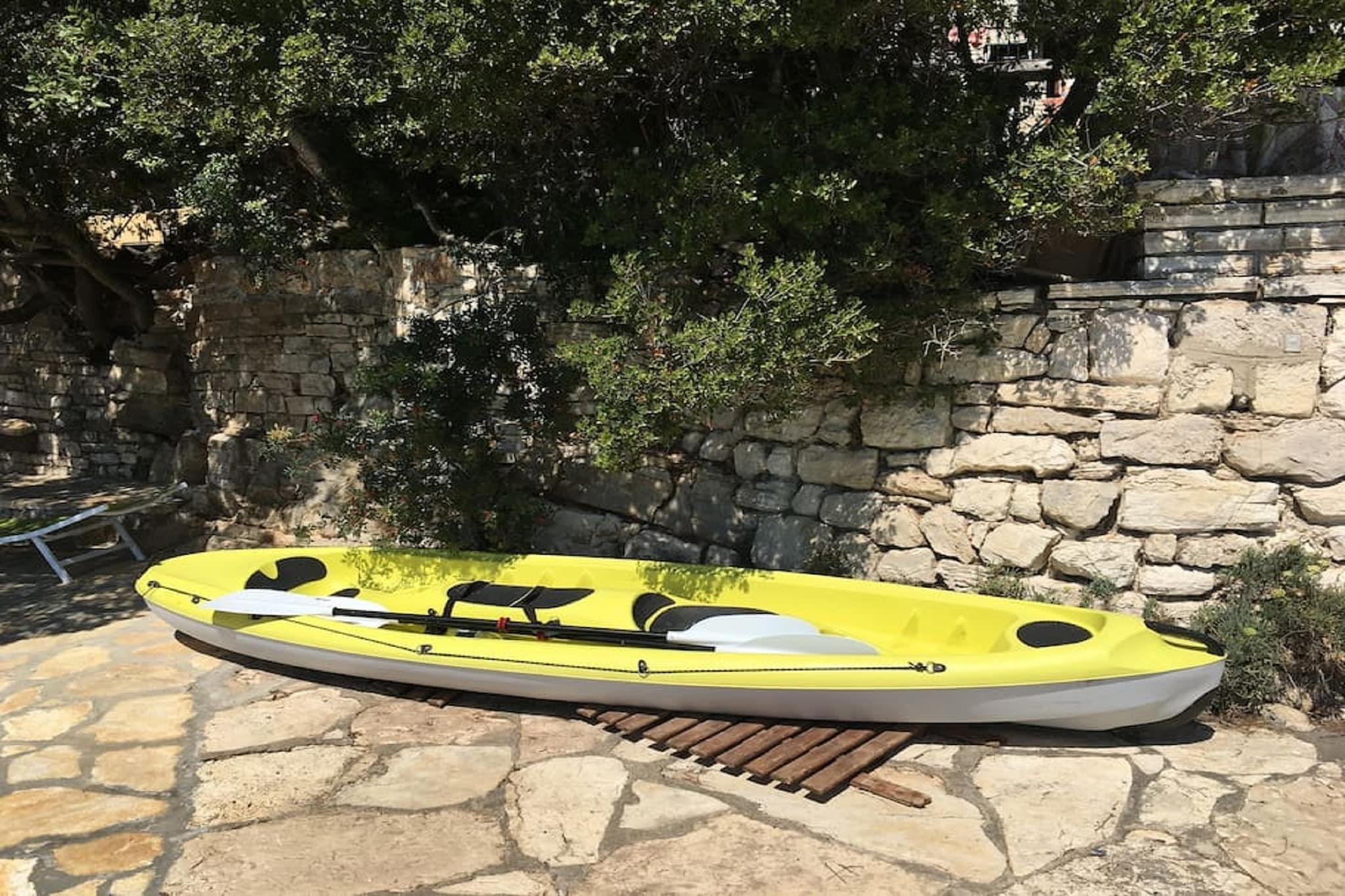 Første etasje: (Kjøkken(komfyr(komfyr med 2 kokeplater, induksjon), stekovn, mikrobølgeovn, oppvaskmaskin, kjøleskap med fryser), Stue/spisestue(dobbel sovesofa(160 x 200 cm), TV(flatskjerm, satellitt), spisebord, dekorativ peis, klimaanlegg), soveværelse(dobbeltseng(140 x 200 cm)), bad(dusj, håndvask, toalett), veranda(spisebord)) i 2. etasje: (Åpent kjøkke(komfyr(komfyr med 2 kokeplater, elektrisk), kjøleskap med fryser), soveværelse(Dobbeltseng eller 2 enkeltsenger, sittehjørne, klimaanlegg), bad(dusj, håndvask, toalett), balkong eller terrasse) oppbevaringsrom(kjøleskap, vaskemaskin), dusj med infrarøde stråler, gårdhave, terrasse(privat), hage(privat, inngjerdet, 350 m2), hagemøbler, grill, parkering, terrassemøbler