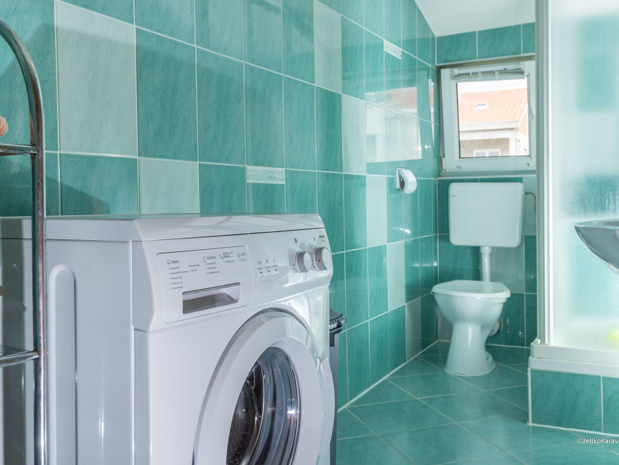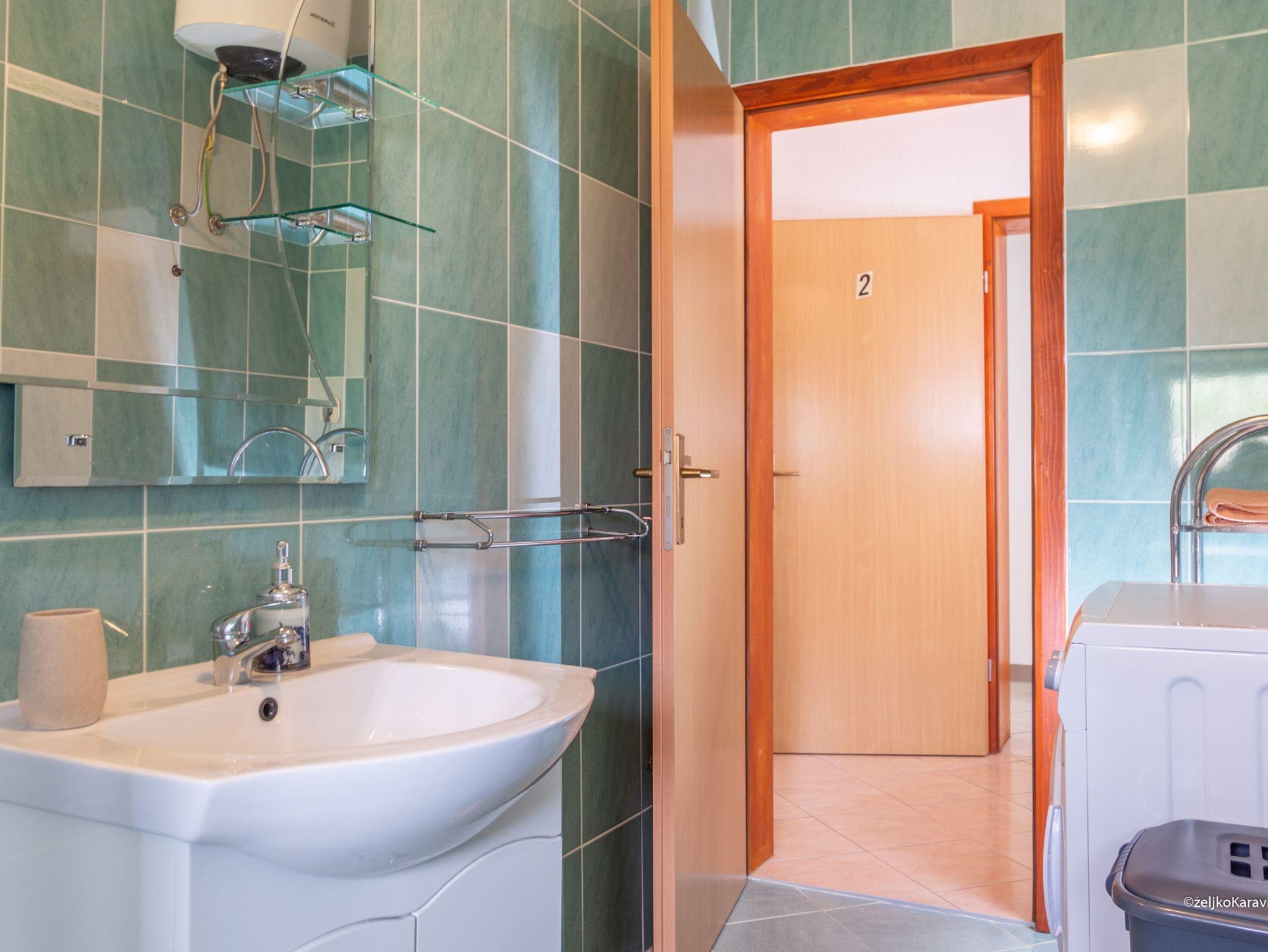 Ferienwohnung bietet Platz für 4 Gäste. Die Betten sind in Schlafzimmern, die es 2 gibt, innerhalb einer Gesamtfläche von 44m2, angeordnet. Die Gäste haben eine eigene Terrasse zur Verfügung, auf der sie in warmen Sommernächten genießen können. Das Apartment bietet Meerblick. Es ist erlaubt, Speisen auf dem Gemeinschafts-Grill vorzubereiten. Unterkunftseinheit hat Räume, die von dem Rest der Einheit abgetrennt werden. IM PREIS INBEGRIFFEN: Kurtaxe, Endreinigung, Klimatisierung, Parkplatz, Internet, Kinderbett, Bügeleisen, Föhn. VERBINDLICHE ZUSÄTZLICHE KOSTEN: Aufzahlung für Kurzaufenthalte (prozentualer Zuschlag pro Nächtigungsanzahl: 30% - 1, 20% - 2, 10% - 3). Die Verfügbarkeit zusätzlicher Dienstleistungen in Ihrem reservierten Termin und die Preise derselben (falls nicht aufgeführt) müssen im Voraus überprüft werden. Zusätzliche Dienstleistungen die in der Zahlungsaufforderung nicht aufgeführt sind werden direkt beim Vermieter bezahlt, angenommen der Gast nutzt auch diese.