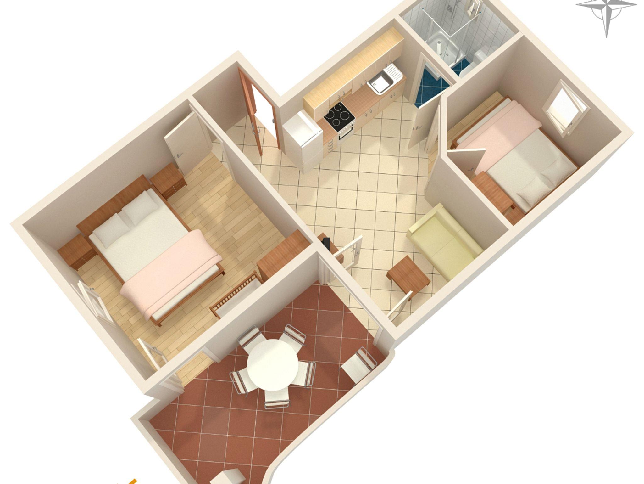 Ferienwohnung bietet Platz für 6 Gäste. Die Betten sind in Schlafzimmern, die es 2 gibt, und in Wohnzimmer, innerhalb einer Gesamtfläche von 37m2, angeordnet. Die Gäste haben eine eigene Terrasse zur Verfügung, auf der sie in warmen Sommernächten genießen können. Es ist erlaubt, Speisen auf dem Gemeinschafts-Grill vorzubereiten. In der Unterkunftseinheit besteht die Möglichkeit des Mitbringens von Haustieren gegen Aufpreis. IM PREIS INBEGRIFFEN: Kurtaxe, Endreinigung, Klimatisierung, Parkplatz, Internet, Kinderbett, Bügelbrett, Föhn. VERBINDLICHE ZUSÄTZLICHE KOSTEN: Aufzahlung für Kurzaufenthalte (prozentualer Zuschlag pro Nächtigungsanzahl: 30% - 1, 20% - 2, 10% - 3). UNVERBINDLICHE ZUSÄTZLICHE KOSTEN: Haustiere (5,00 € pro Nacht). Die Verfügbarkeit zusätzlicher Dienstleistungen in Ihrem reservierten Termin und die Preise derselben (falls nicht aufgeführt) müssen im Voraus überprüft werden. Zusätzliche Dienstleistungen die in der Zahlungsaufforderung nicht aufgeführt sind werden direkt beim Vermieter bezahlt, angenommen der Gast nutzt auch diese.