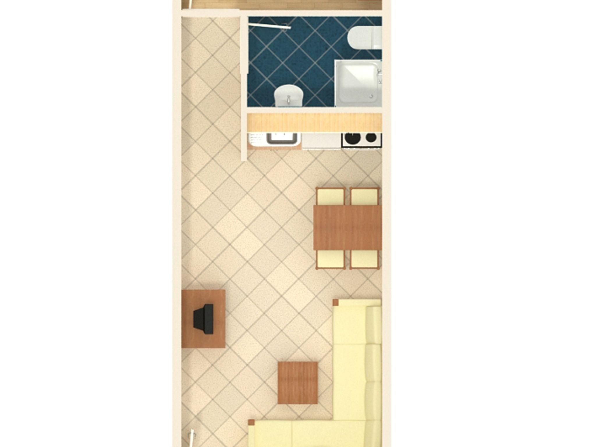 Ferienwohnung bietet Platz für 4 Gäste. Die Betten sind in Schlafzimmern, die es 1 gibt, und in Wohnzimmer, innerhalb einer Gesamtfläche von 28m2, angeordnet. Die Gäste haben eine eigene Terrasse zur Verfügung, auf der sie in warmen Sommernächten genießen können. Es ist erlaubt, Speisen auf dem Gemeinschafts-Grill vorzubereiten. IM PREIS INBEGRIFFEN: Kurtaxe, Endreinigung, Parkplatz, Internet, Wäschewaschen. VERBINDLICHE ZUSÄTZLICHE KOSTEN: Aufzahlung für Kurzaufenthalte (prozentualer Zuschlag pro Nächtigungsanzahl: 30% - 1, 20% - 2, 10% - 3). UNVERBINDLICHE ZUSÄTZLICHE KOSTEN: Klimatisierung (0,50 € pro Stunde), Zusatzbett (10,00 € pro Nacht). Die Verfügbarkeit zusätzlicher Dienstleistungen in Ihrem reservierten Termin und die Preise derselben (falls nicht aufgeführt) müssen im Voraus überprüft werden. Zusätzliche Dienstleistungen die in der Zahlungsaufforderung nicht aufgeführt sind werden direkt beim Vermieter bezahlt, angenommen der Gast nutzt auch diese.