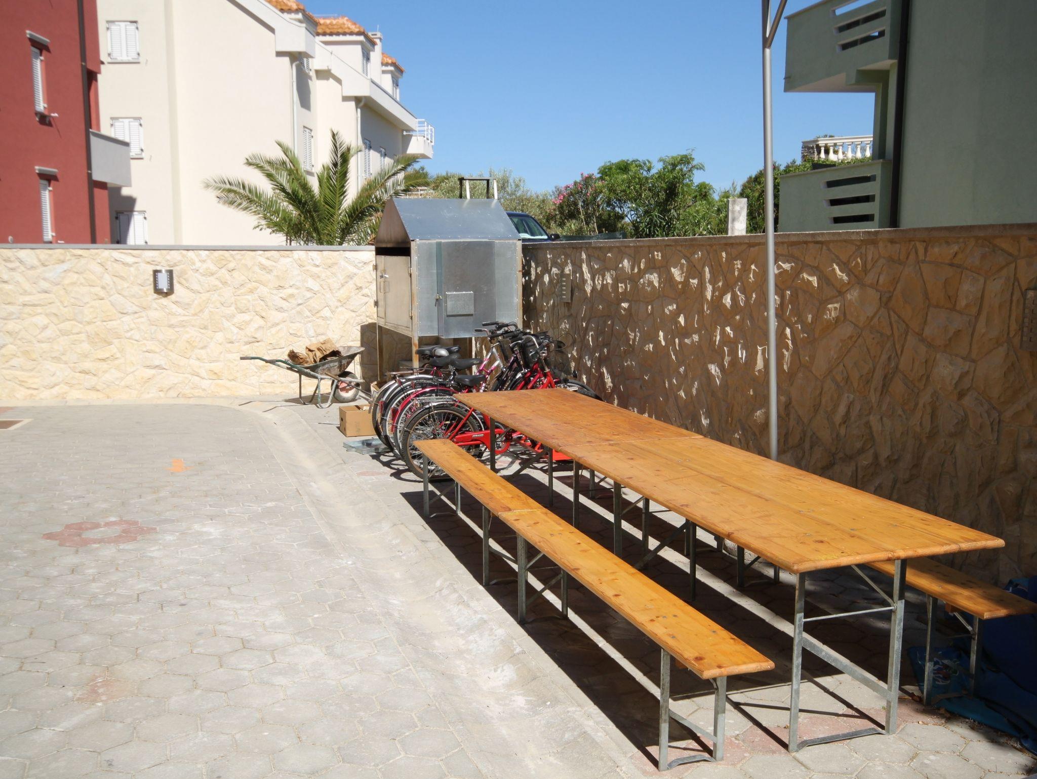 Ferienwohnung bietet Platz für 4 Gäste. Die Betten sind in Schlafzimmern, die es 1 gibt, und in Wohnzimmer, innerhalb einer Gesamtfläche von 33m2, angeordnet. Die Gäste haben eine eigene Terrasse zur Verfügung, auf der sie in warmen Sommernächten genießen können. Das Apartment bietet Meerblick. Es ist erlaubt, Speisen auf dem Gemeinschafts-Grill vorzubereiten. In der Unterkunftseinheit besteht die Möglichkeit des Mitbringens von Haustieren gegen Aufpreis. IM PREIS INBEGRIFFEN: Endreinigung, Klimatisierung, Parkplatz, Internet, Kinderbett, Sonnenschirm. VERBINDLICHE ZUSÄTZLICHE KOSTEN: Kurtaxe (Erwachsene 0,93 € - 1,50 € Nacht/Person, Kinderermäßigung 12 - 17 Jahre). UNVERBINDLICHE ZUSÄTZLICHE KOSTEN: Frühstück (12,00 €, 50% Nachlass für Kinder zwischen 4 und 12 Jahren, Kinder bis 4 Jahre sind frei.), Halbpension (29,00 €, 50% Nachlass für Kinder zwischen 4 und 12 Jahren, Kinder bis 4 Jahre sind frei.), Haustiere (5,00 € pro Nacht). Die Verfügbarkeit zusätzlicher Dienstleistungen in Ihrem reservierten Termin und die Preise derselben (falls nicht aufgeführt) müssen im Voraus überprüft werden. Zusätzliche Dienstleistungen die in der Zahlungsaufforderung nicht aufgeführt sind werden direkt beim Vermieter bezahlt, angenommen der Gast nutzt auch diese.