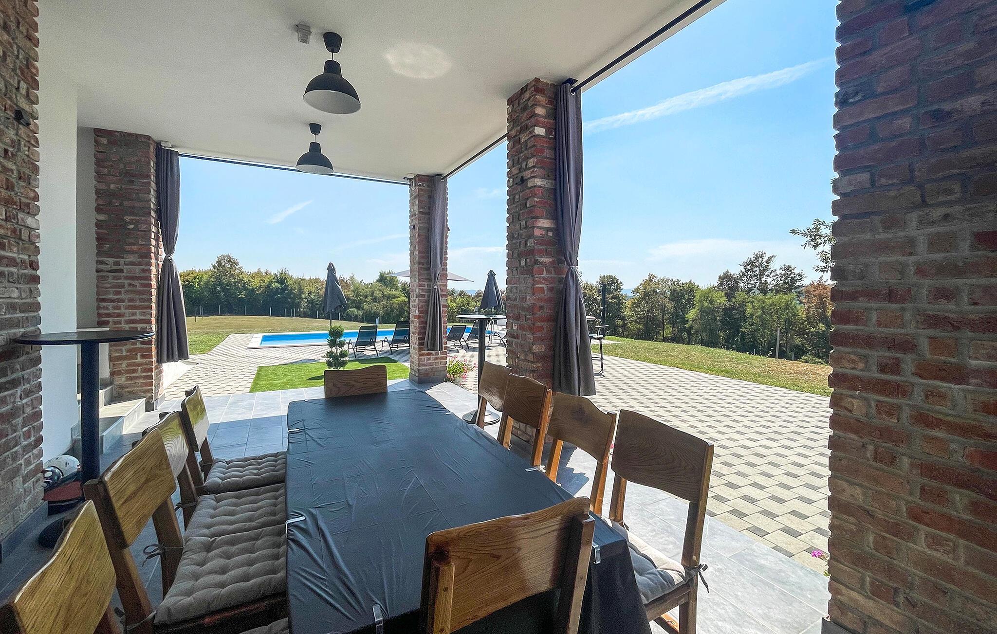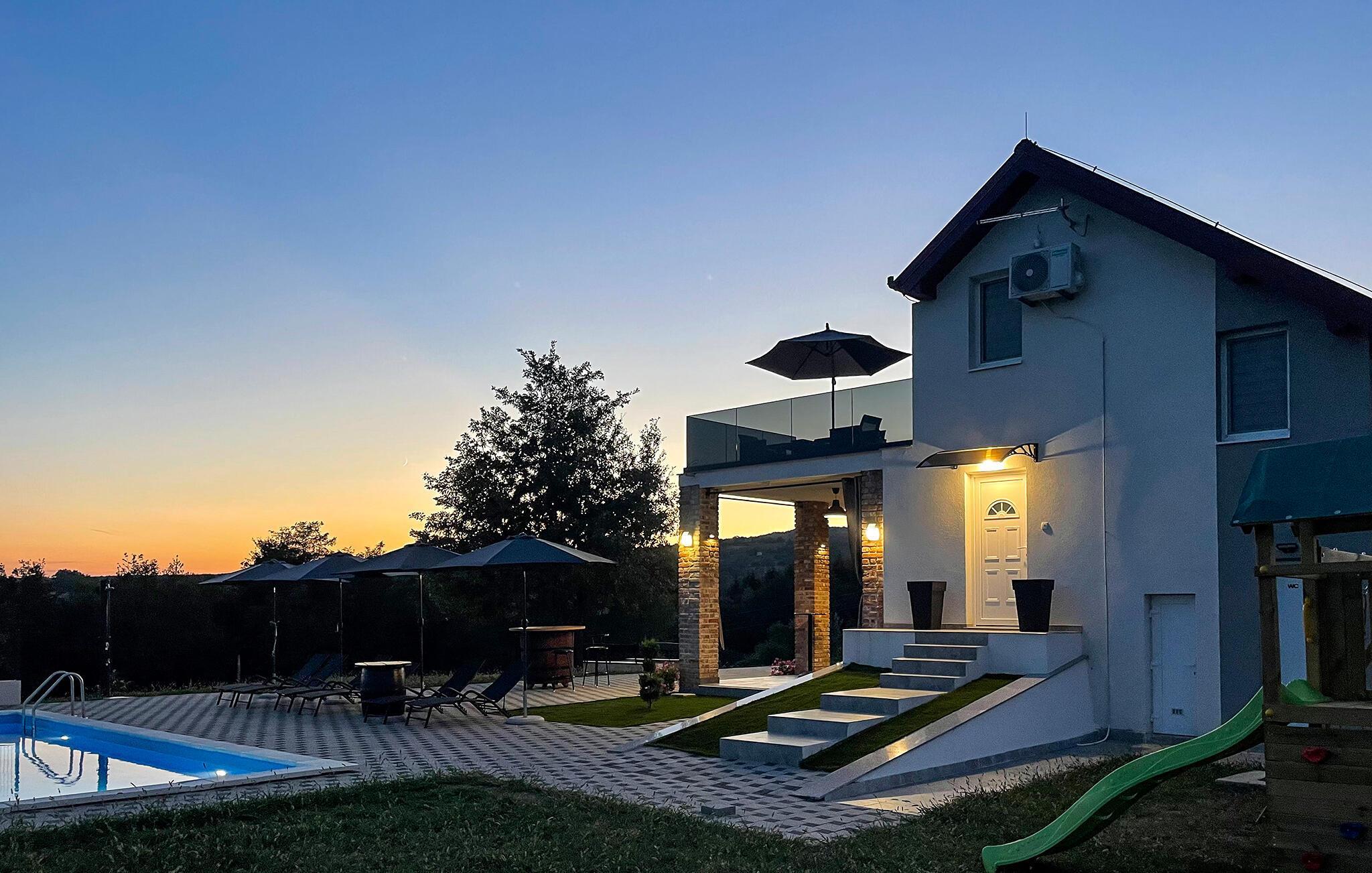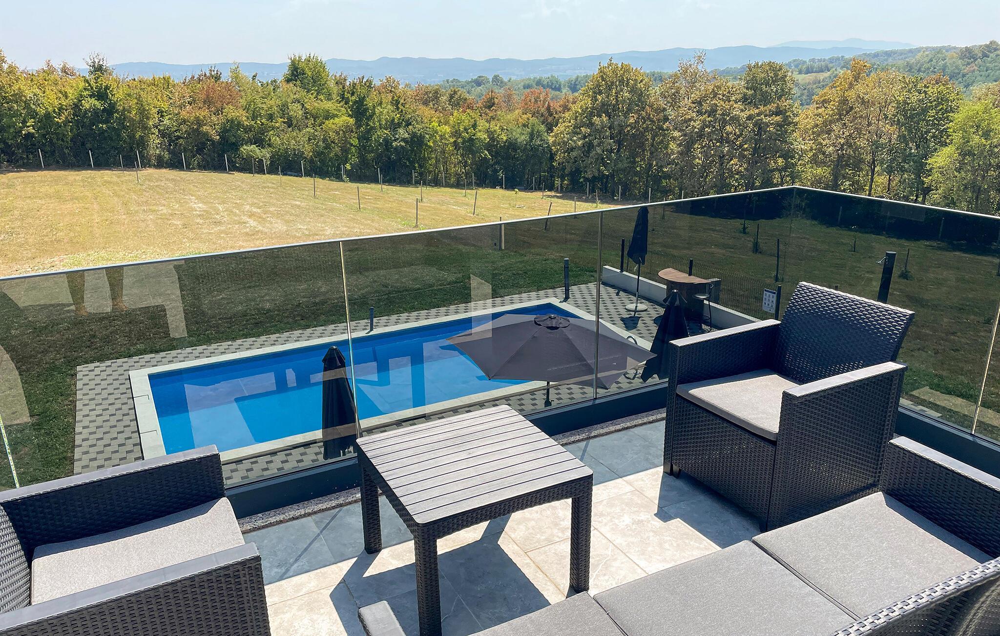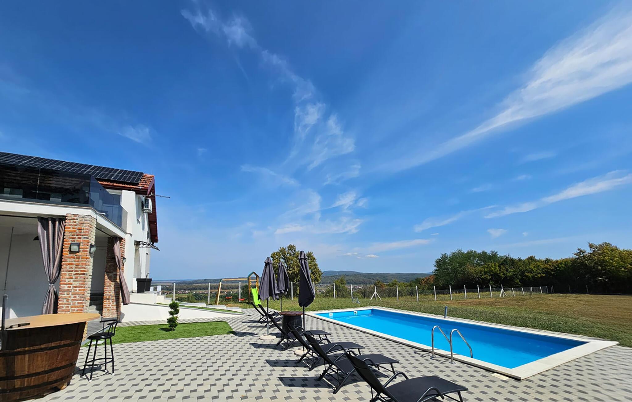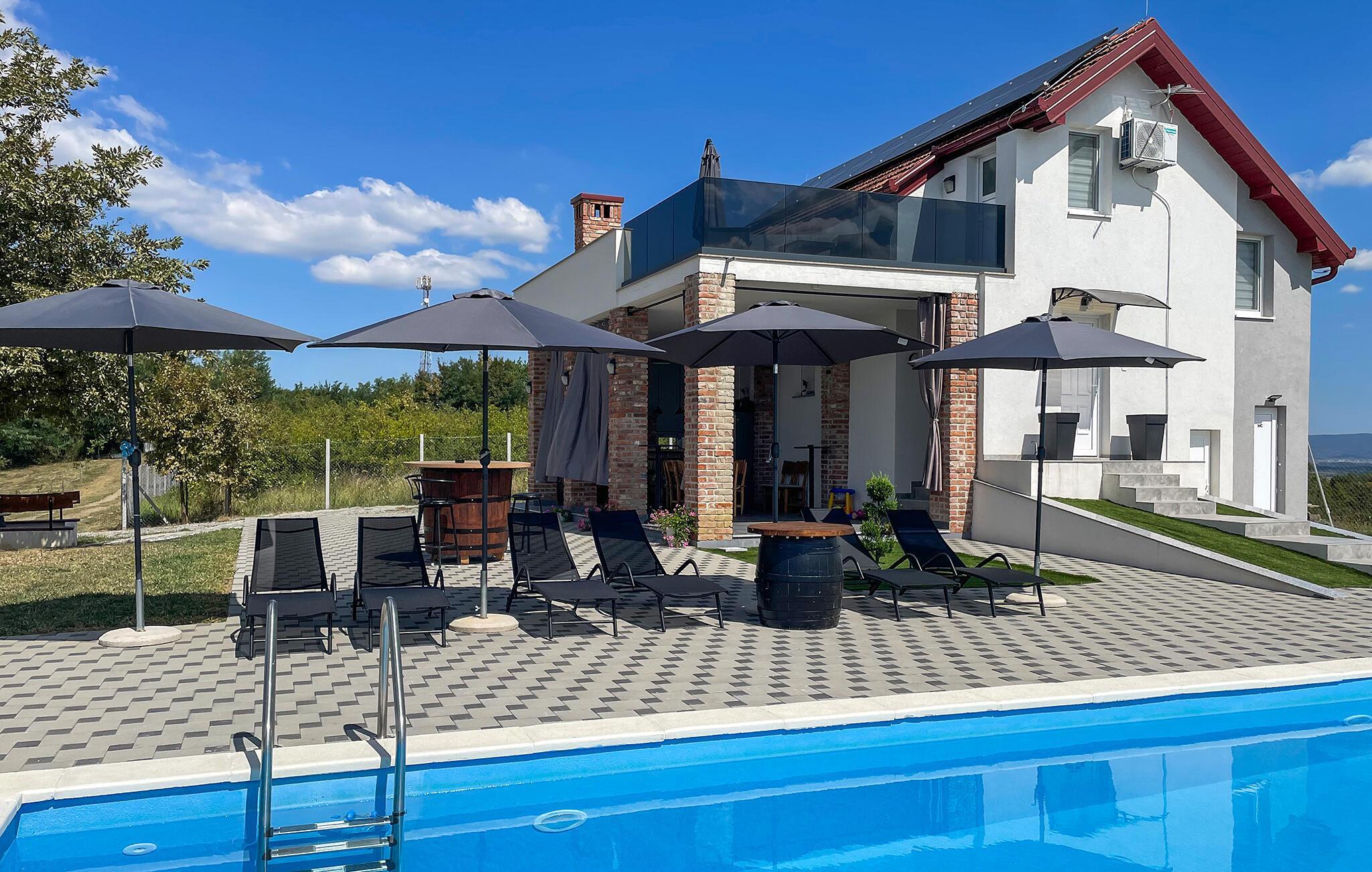Nyt en avslappende ferie med fantastisk panoramautsikt og eget basseng på landsbygda.