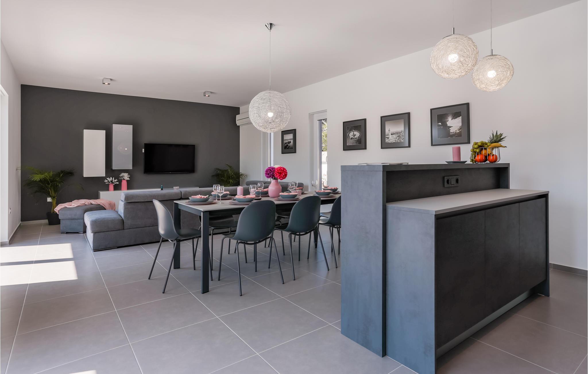 Genießen Sie einen wunderschönen Urlaub in diesem Ferienhaus in Premantura, im Süden der Halbinsel Istriens und in der Nähe des beliebten Naturparks Kap Kamenjak. Das Erdgeschoß verfügt über ein geräumiges Wohnzimmer und eine Küche von der man in den Garten mit Pool und Sommerküche gelangt, die sich hervorragend für gemütliche Grillabende eignet. Des Weiteren befindet sich im Erdgeschoss ein Schlafzimmer mit Bad und eine Toilette, während sich im ersten Stock zwei geräumige Schlafzimmer mit Bad befinden. Erkunden Sie die Umgebung von Premantura, bekannt für seine zahlreichen Wander- und Radwege sowie den Naturpark Kap Kamenjak, mit vielen natürlichen Stränden und Buchten. Eine besondere Attraktion sind die über 90 Millionen Jahre alten Fußabdrücke von Dinosauriern an zwei verschiedenen Stellen des Naturparks. Am Kap Kamenjak können Sie den ganzen Tag mit Familie und kleinen Kindern verbringen da es auch schattenspendende Kiefernwälder gibt. Die beliebte Halbinsel ist bekannt für reichhaltige Angebote an Wein und Olivenöl und sollten nicht ausgelassen werden. Außerdem empfehlenswert sind Aktivitäten wie Windsurfen, Kiten oder Tauchen.