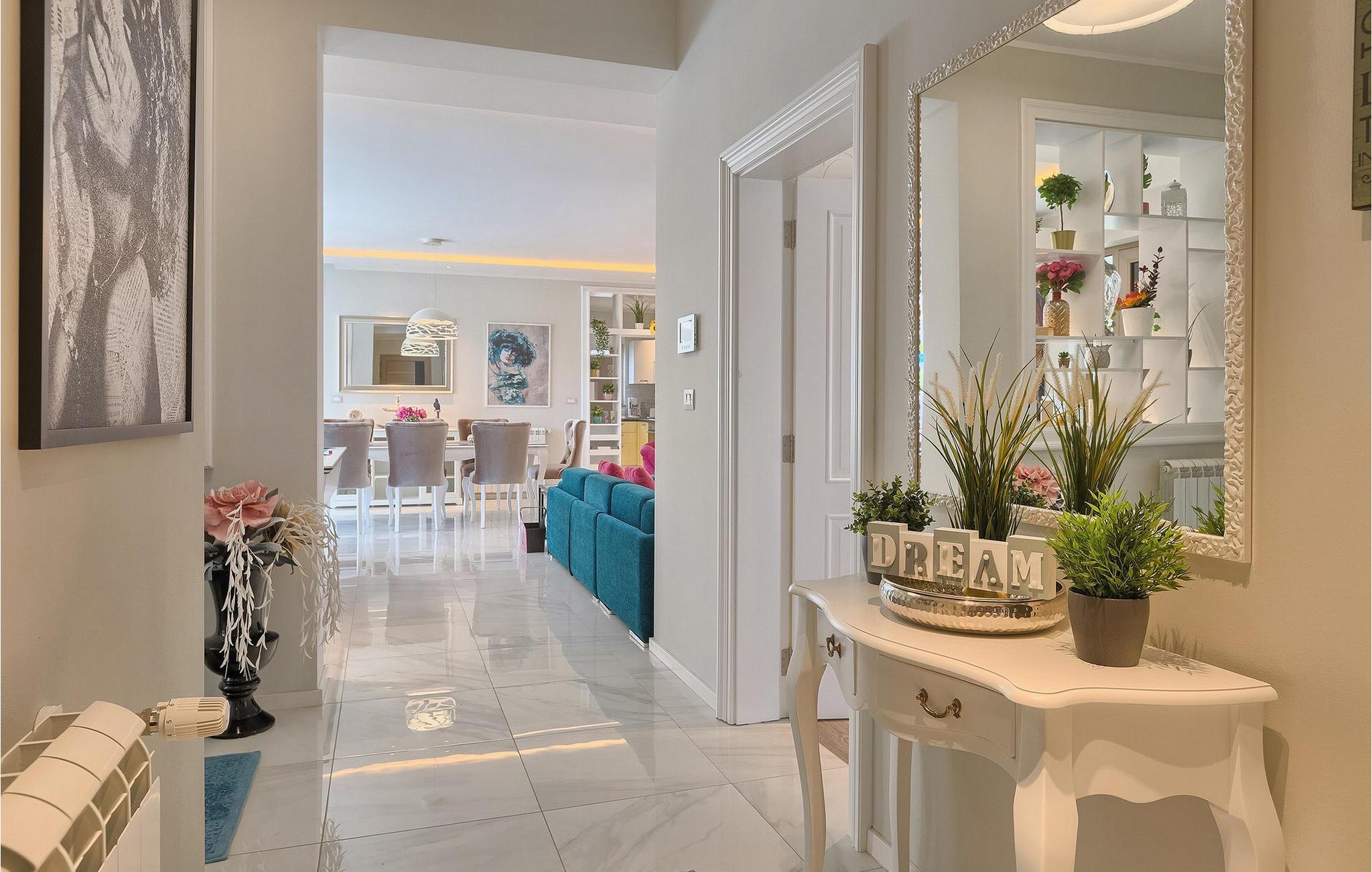 De som foretrekker krystallklart hav, vil sette pris på villaens utmerkede beliggenhet. Den ligger bare 200 meter fra nærmeste strand. Drømmen om en perfekt ferie går i oppfyllelse med Villa Dream House, som ligger i den pittoreske landsbyen Premantura - et ideelt reisemål for deg som ønsker å oppleve unik naturskjønnhet og en fantastisk kulturarv, og kombinere avslapning og aktiv ferie. Sør for byen ligger Kapp Kamenjak - et naturreservat som er kjent for sin 30 kilometer lange kystlinje med fantastiske, ville strender og asurblått hav, men også for sin enestående flora med mer enn 570 plantearter, hvorav noen er endemiske. De gunstige vindene og det krystallklare havet gjør området til et perfekt sted for vindsurfere og dykkere. En av de store attraksjonene er å hoppe i havet fra høye klipper med lommelykter. Det populære turistmålet Medulin ligger bare en kort kjøretur unna, og det samme gjelder Pulas ekstraordinære arkitektoniske severdigheter og kulturelle begivenheter.