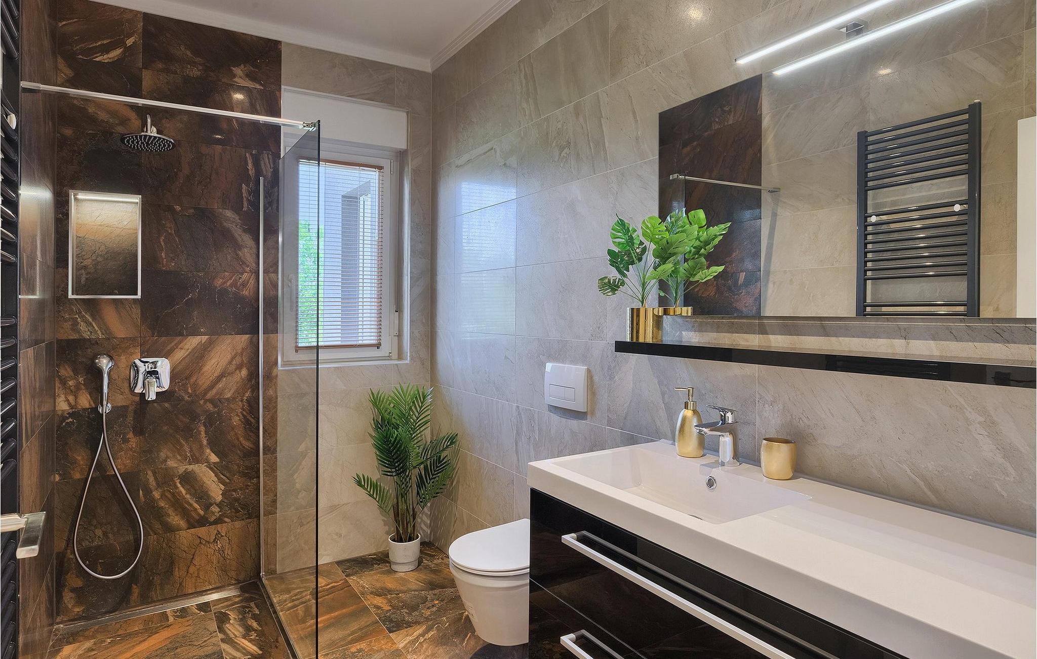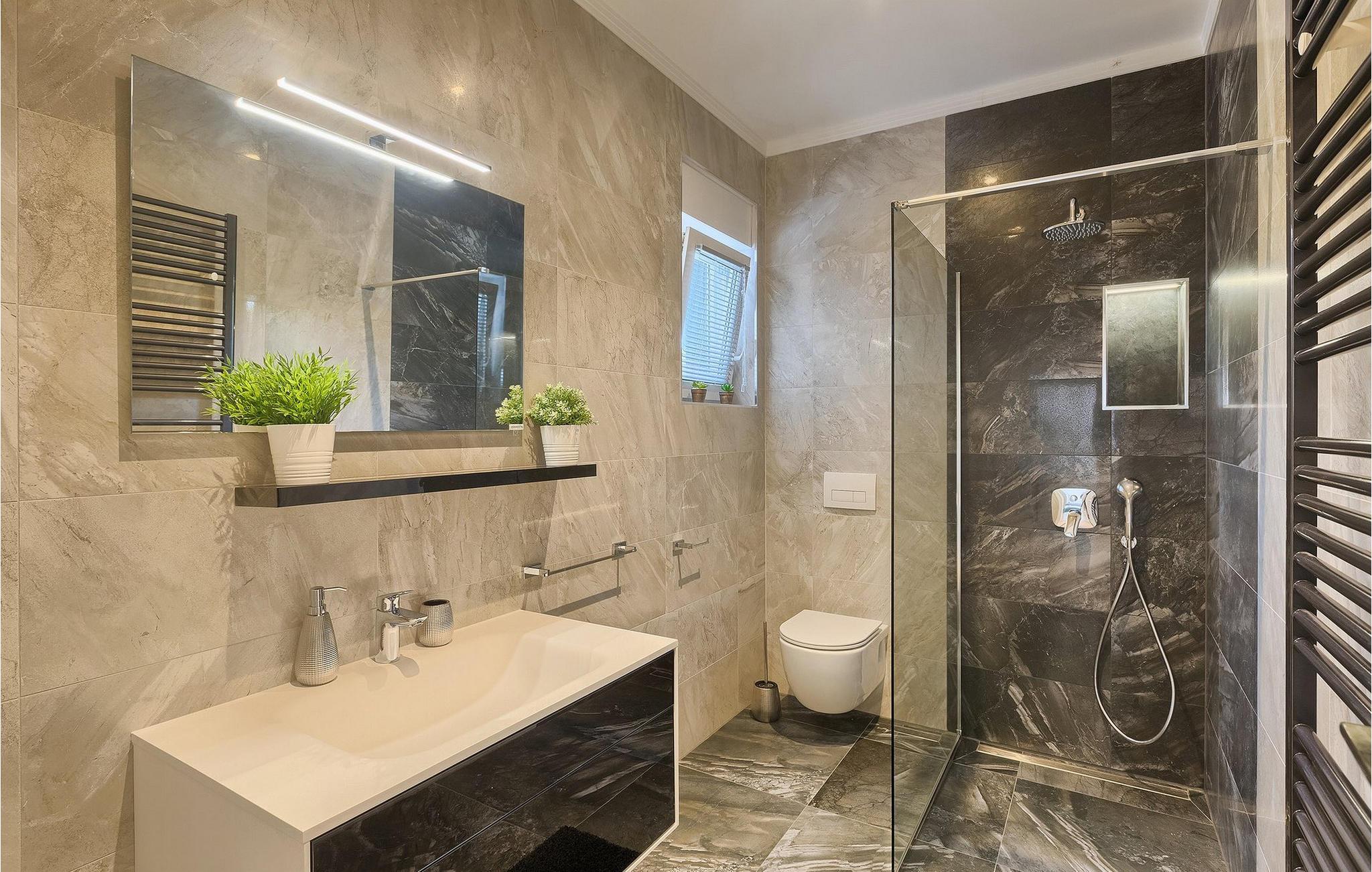 - WC med varmt og kaldt vann, Dusj