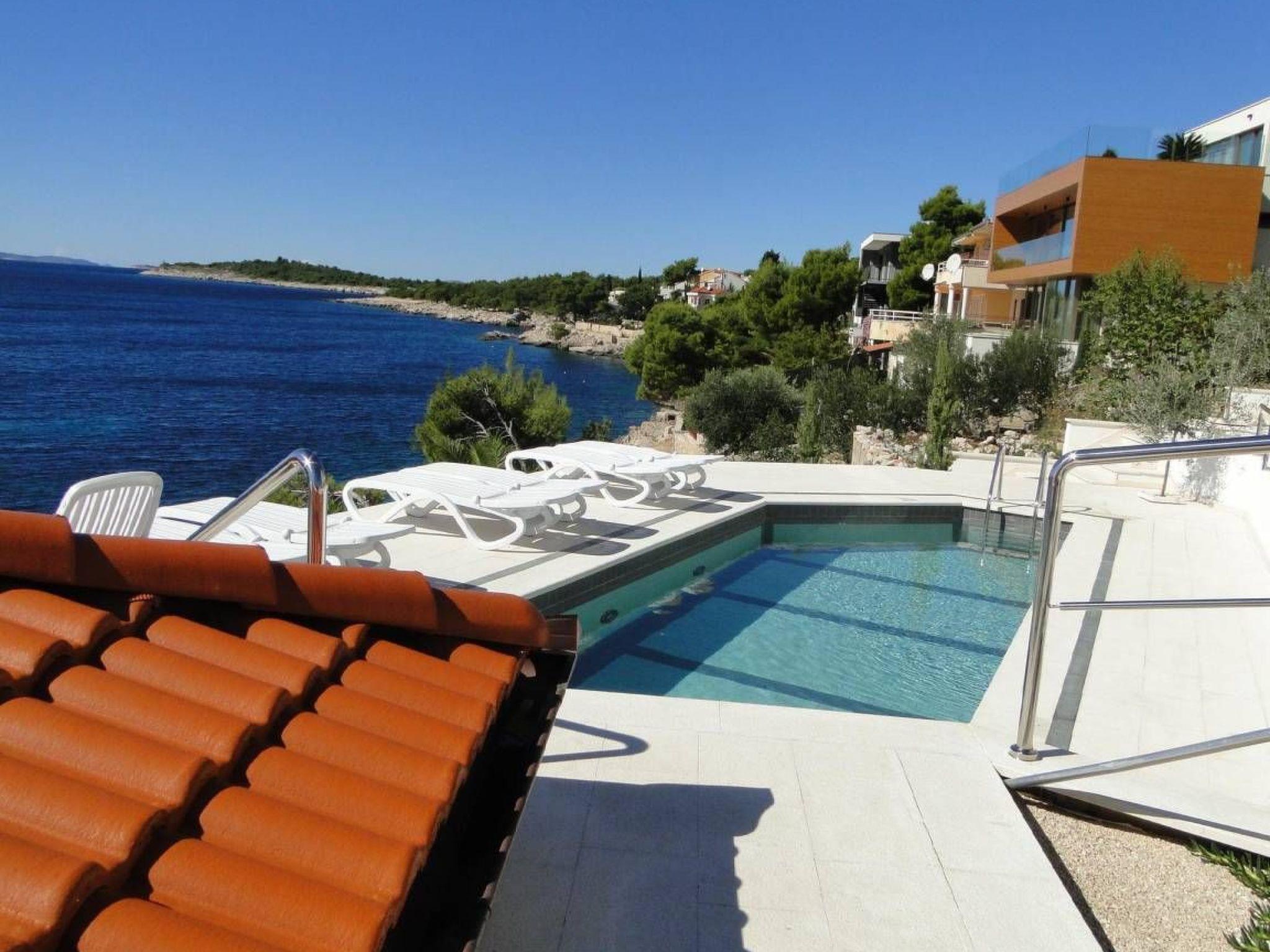 Villa PERLA in Primosten- Bilo offers 4 luxury apartments. Each apartment has modern furniture, a balcony overlooking the sea. Guests can use a common terrace with swimming pool and chairs. Villa Perla is located directly on the beach. Parking is provided for all guests right next to the building.