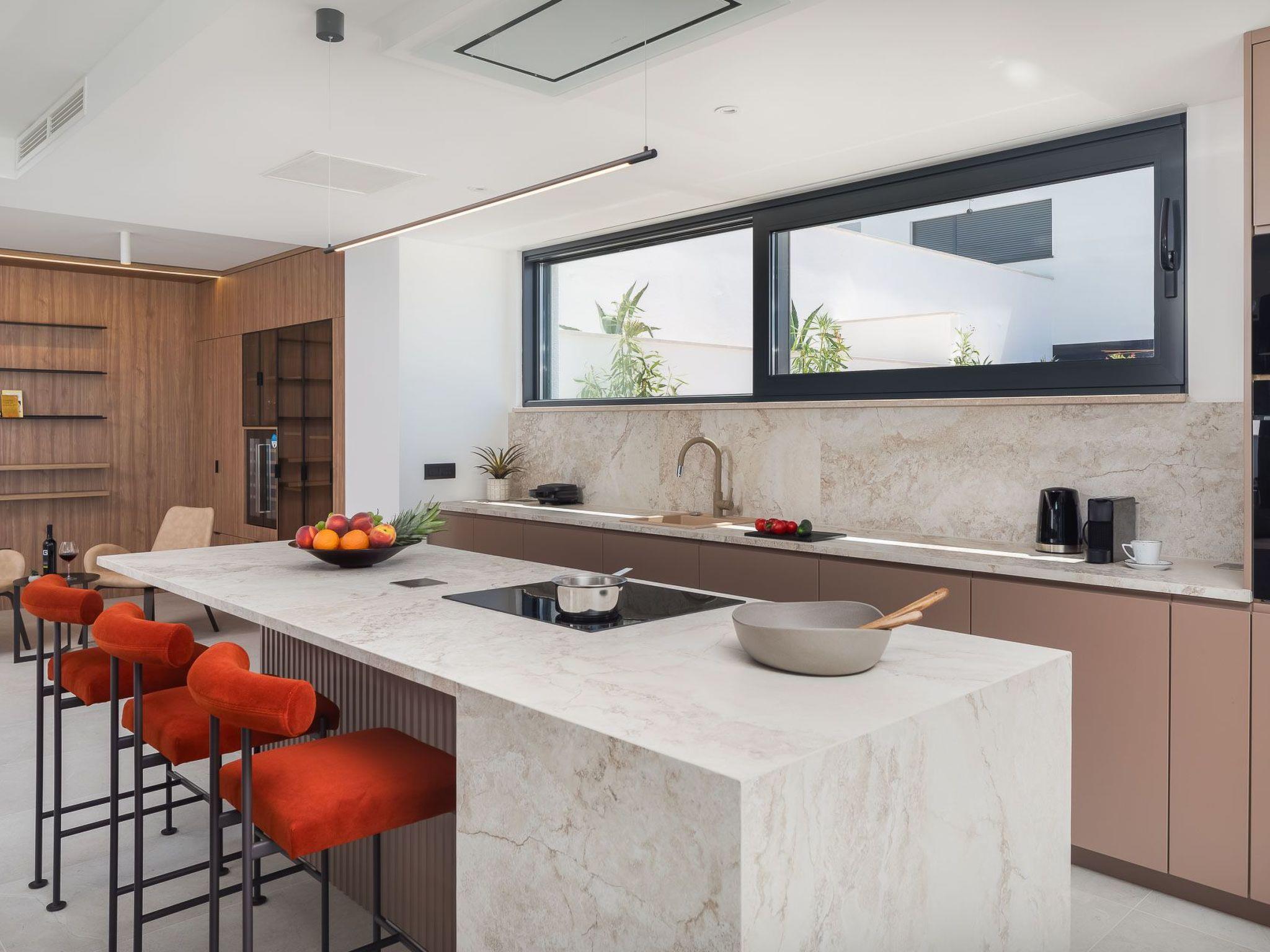 Inside Villa Rossa, you'll find a haven of comfort thoughtfully equipped with every modern convenience. The property boasts four bedrooms and five bathrooms, ensuring ample space and privacy for all guests. For those cool evenings, underfloor heating throughout the house provides a cozy atmosphere, complemented by the charm of a fireplace. The villa is outfitted with air conditioning, ensuring a comfortable stay regardless of the weather. Entertainment options abound with a games console provided, while a washing machine and clothes dryer for sole use make longer stays hassle-free. The kitchen is fully equipped with a dishwasher, electric kettle, and two types of coffee machines (traditional and capsule/pod), catering to all your culinary needs.