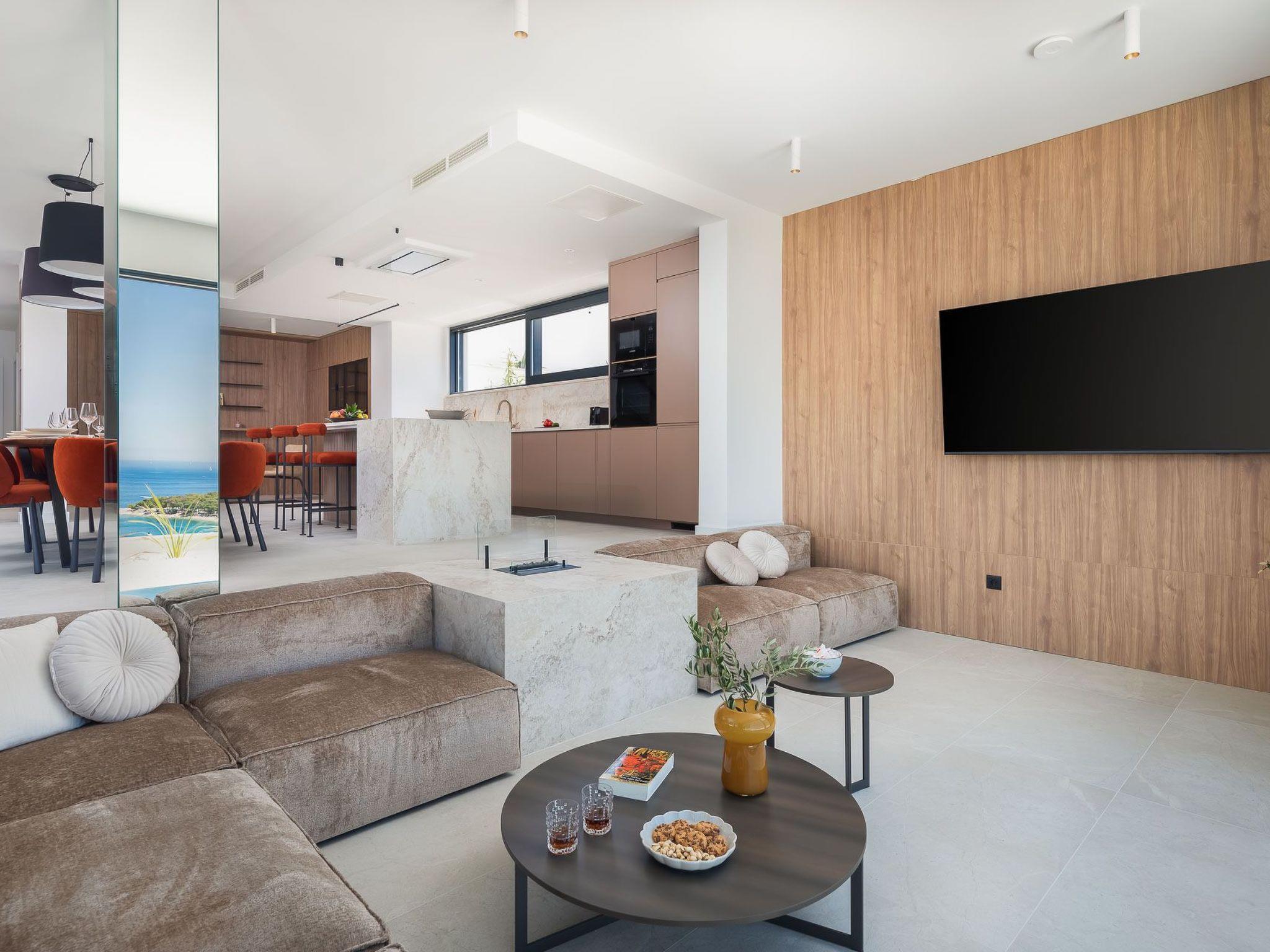 The villa's location is a gateway to the enchanting landscapes of Dalmatia, with the beach just 300 meters away, inviting morning walks or lazy days by the sea. The nearest town center, located 4000 meters from the villa, offers a glimpse into local life, with various shops and eateries to explore. For daily necessities, a grocery store is also situated 4000 meters away, adding to the convenience of your stay.