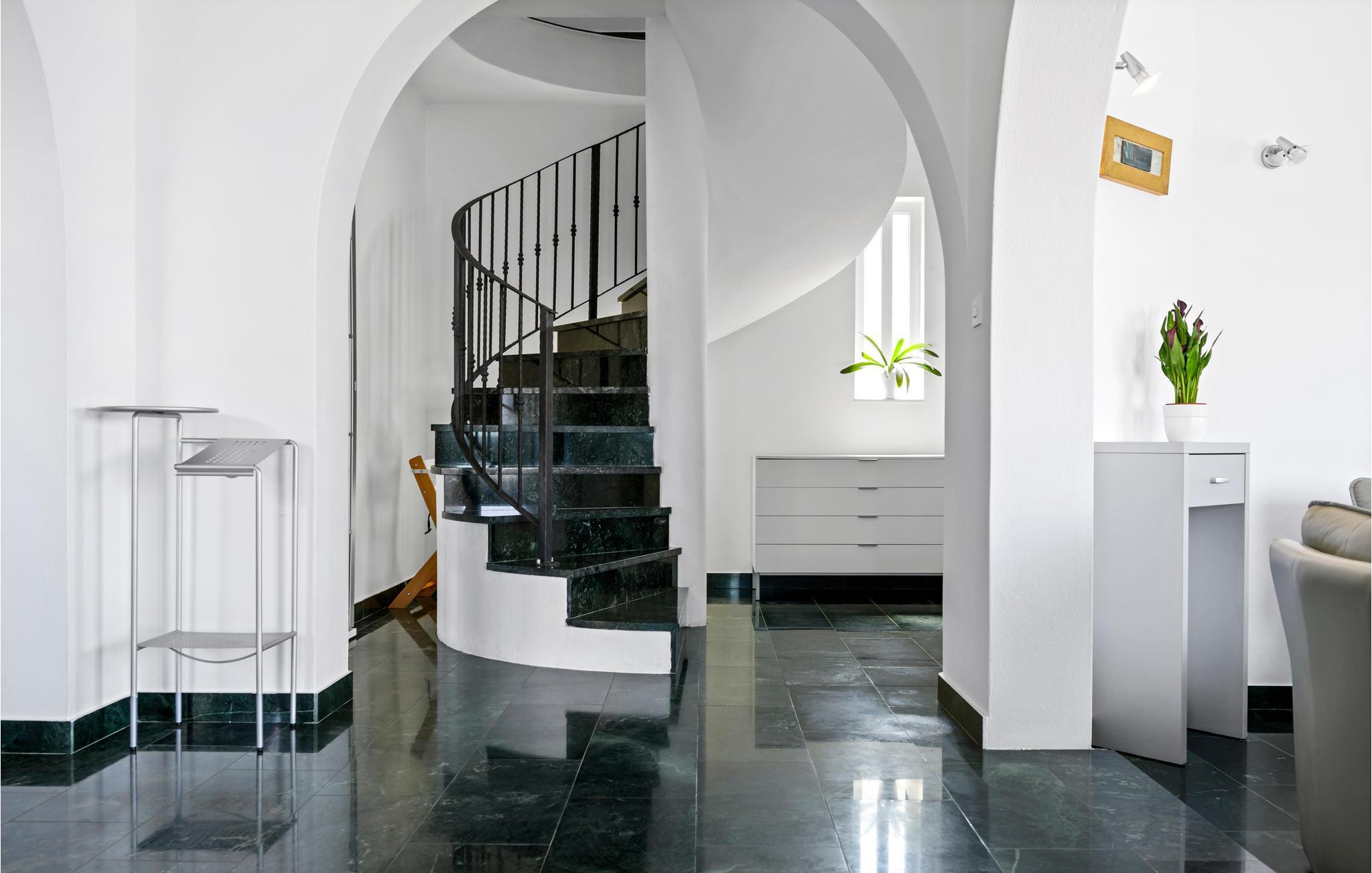 Dette komfortable feriehuset vil glede deg med sin panoramautsikt over havet. Boarealet er spredt over flere etasjer og gir deg plass i fire soverom, fem bad, flere spisekjøkken og en åpen hems.