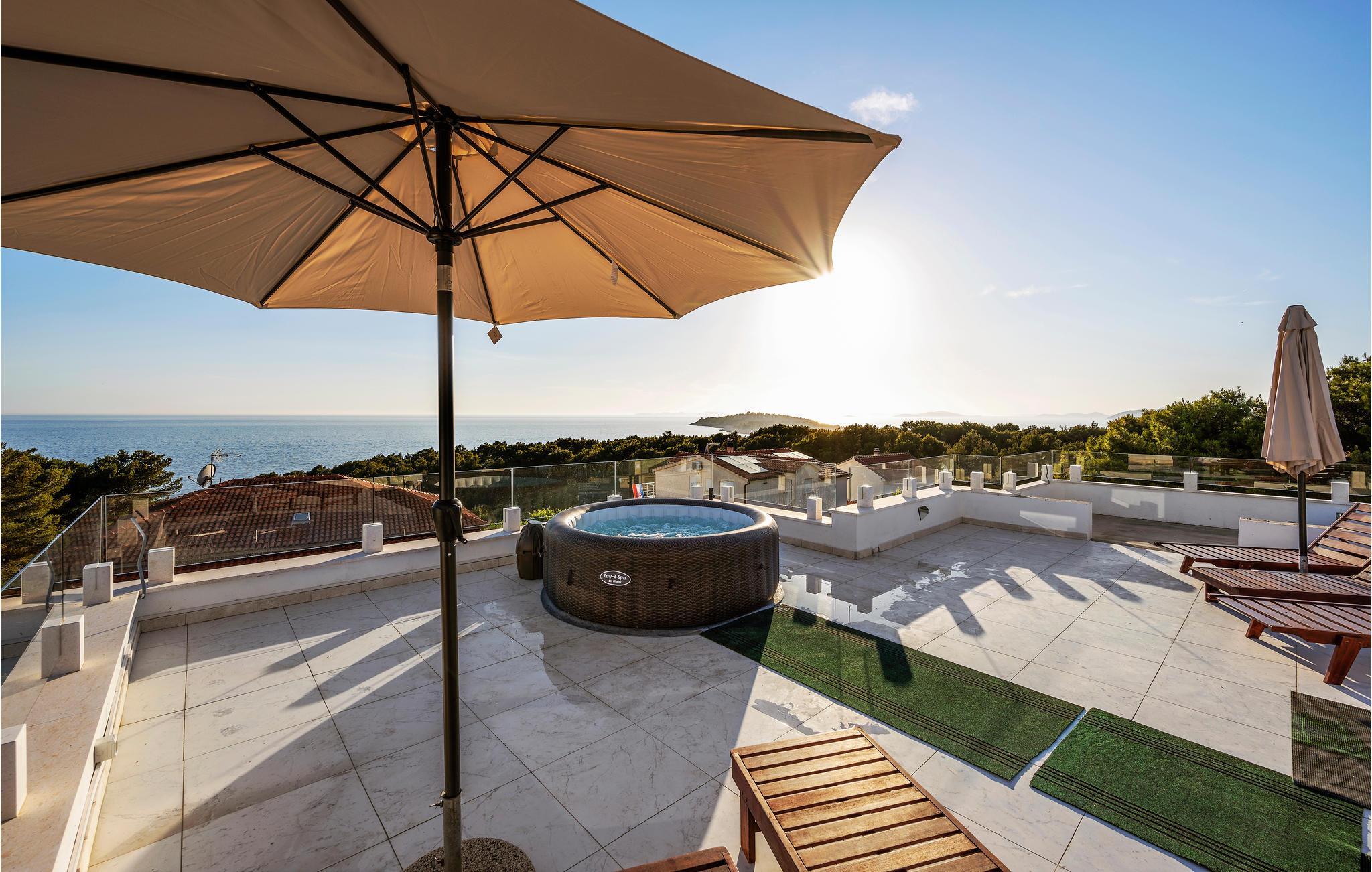 I nærheten av Primosten, en av de vakreste perlene i området, flytter du inn i et fantastisk moderne utstyrt hus med en vakker takterrasse med boblebad. Herfra kan du nyte en fascinerende panoramautsikt over hele bukten som sprer seg foran deg.