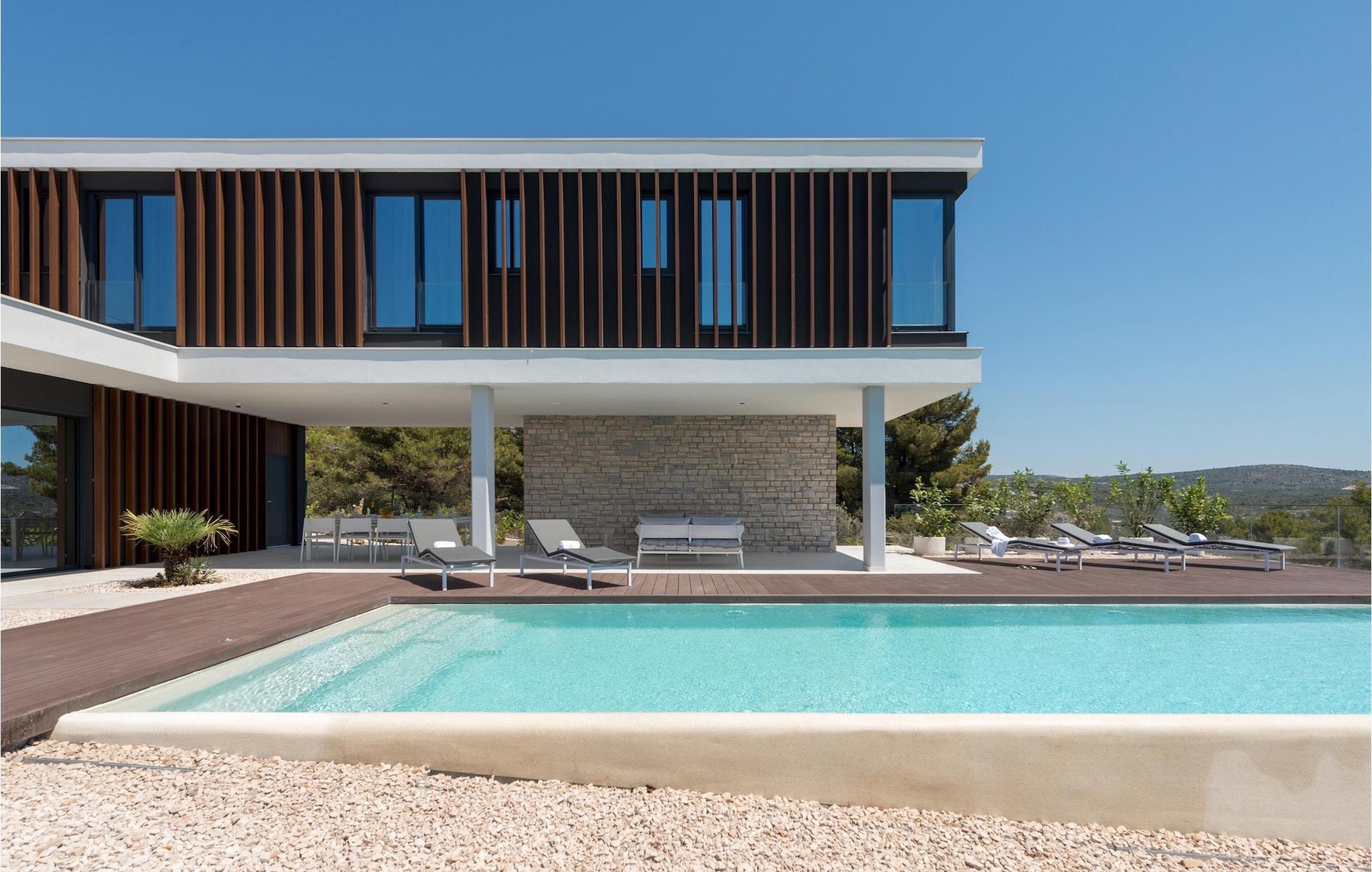 Villaen har en fantastisk moderne design og er utstyrt med alle nødvendige fasiliteter for en bekymringsløs og avslappende ferie for maksimalt 8 personer.