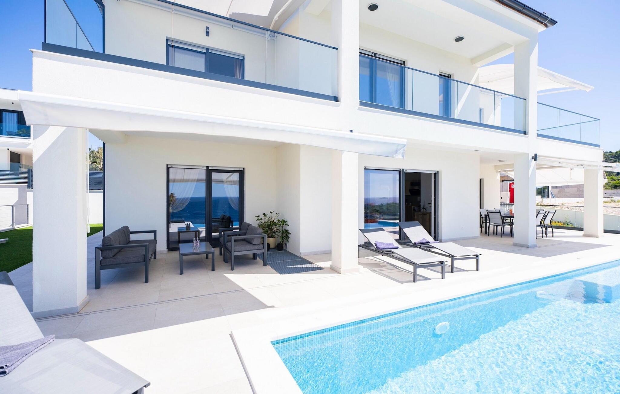 Hvis du er ute etter en villa med fantastisk utsikt over havet, kysten og flere øyer, som du kan nyte fra kanten av ditt eget private evighetsbasseng, er Infinity View-villaen det rette valget for deg. Alternativt kan du slikke sol på 4 solsenger eller nyte utsikten i skyggen i salongområdet. En grill er tilgjengelig, slik at du kan nyte et deilig måltid med utsikt over havet fra spiseplassen for opptil 8 personer.