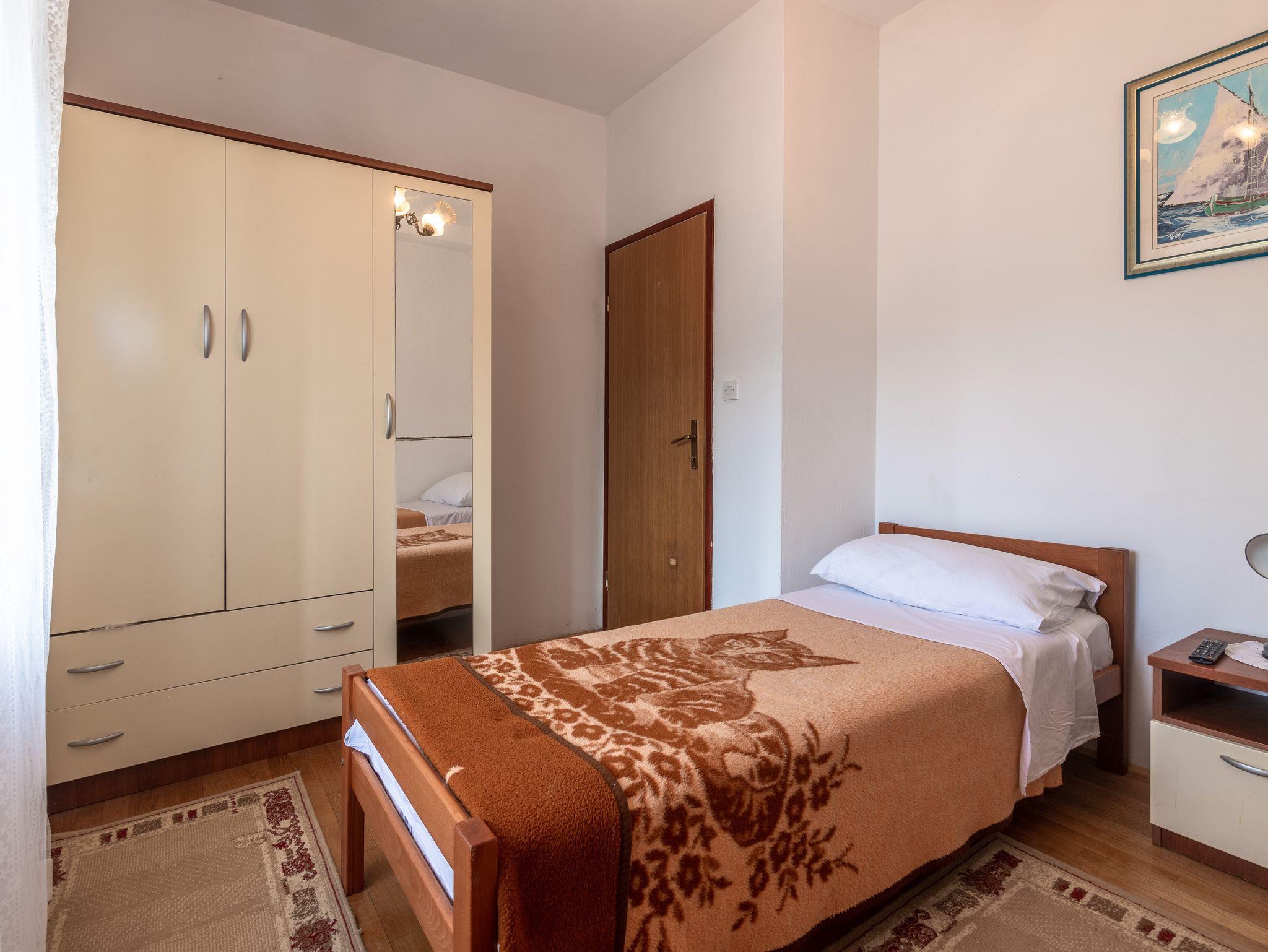 Haus bietet Platz für 6 Gäste. Die Betten sind in Schlafzimmern, die es 3 gibt, innerhalb einer Gesamtfläche von 62m2, angeordnet. Die Gäste haben eine eigene Terrasse zur Verfügung, auf der sie in warmen Sommernächten genießen können. Das Haus bietet Meerblick. Für vollen Genuss und Entspannung gibt es einen privaten Grill für Gäste dieser Unterkunft. Räume der gebuchten Unterkunftseinheit werden nicht in eine Ganze verbunden. IM PREIS INBEGRIFFEN: Kurtaxe, Endreinigung, Klimatisierung, Internet, Bügeleisen, Bügelbrett, Föhn. Die Verfügbarkeit zusätzlicher Dienstleistungen in Ihrem reservierten Termin und die Preise derselben (falls nicht aufgeführt) müssen im Voraus überprüft werden. Zusätzliche Dienstleistungen die in der Zahlungsaufforderung nicht aufgeführt sind werden direkt beim Vermieter bezahlt, angenommen der Gast nutzt auch diese. Ermäßigung auf den Grundpreis: Gratistag 28=25 (bei einem Aufenthalt von 28 oder mehr Tagen erhalten Sie 3 kostenlose Tage für den Aufenthalt bis 31.12.26).