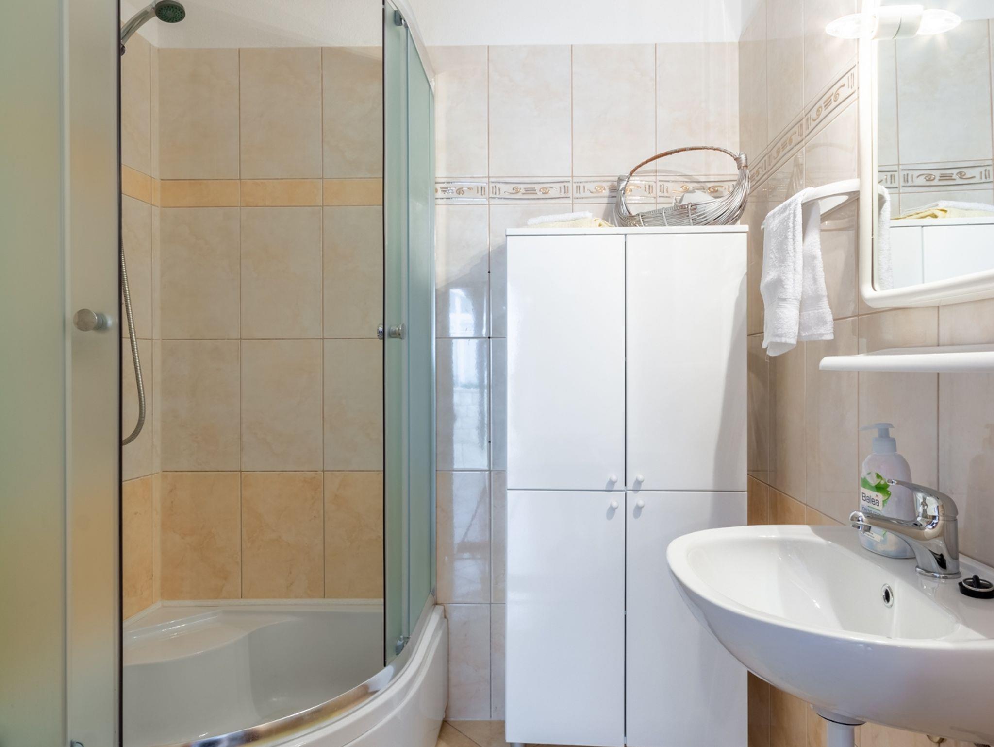 Ferienwohnung bietet Platz für 3 Gäste. Die Betten sind in Schlafzimmern, die es 1 gibt, und in Wohnzimmer, innerhalb einer Gesamtfläche von 48m2, angeordnet. Die Gäste haben einen eigenen Balkon zur Verfügung, auf der sie in warmen Sommernächten genießen können. Das Apartment bietet Meerblick. Es ist erlaubt, Speisen auf dem Gemeinschafts-Grill vorzubereiten. IM PREIS INBEGRIFFEN: Kurtaxe, Endreinigung, Klimatisierung, Parkplatz, Internet, Kinderbett, Bügeleisen, Bügelbrett, Föhn, 1 Bett für Kinder (im Preis enthalten). VERBINDLICHE ZUSÄTZLICHE KOSTEN: Aufzahlung für Kurzaufenthalte (prozentualer Zuschlag pro Nächtigungsanzahl: 30% - 1, 20% - 2, 10% - 3). Die Verfügbarkeit zusätzlicher Dienstleistungen in Ihrem reservierten Termin und die Preise derselben (falls nicht aufgeführt) müssen im Voraus überprüft werden. Zusätzliche Dienstleistungen die in der Zahlungsaufforderung nicht aufgeführt sind werden direkt beim Vermieter bezahlt, angenommen der Gast nutzt auch diese. Ermäßigung auf den Grundpreis: Gratistag 14=13 (bei einem Aufenthalt von 14 Tagen oder mehr erhalten Sie einen Gratistag für den Aufenthalt bis 31.12.26).