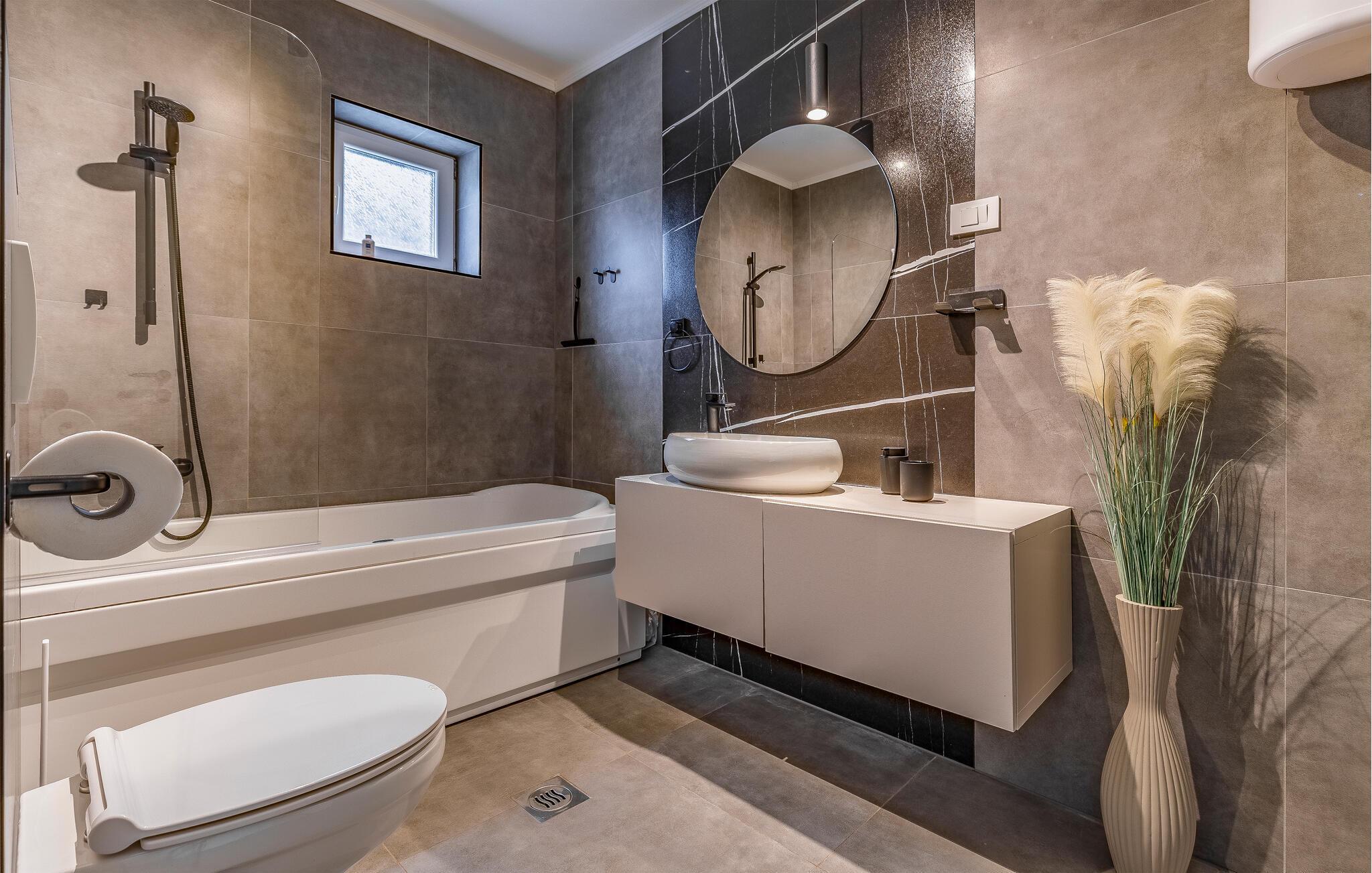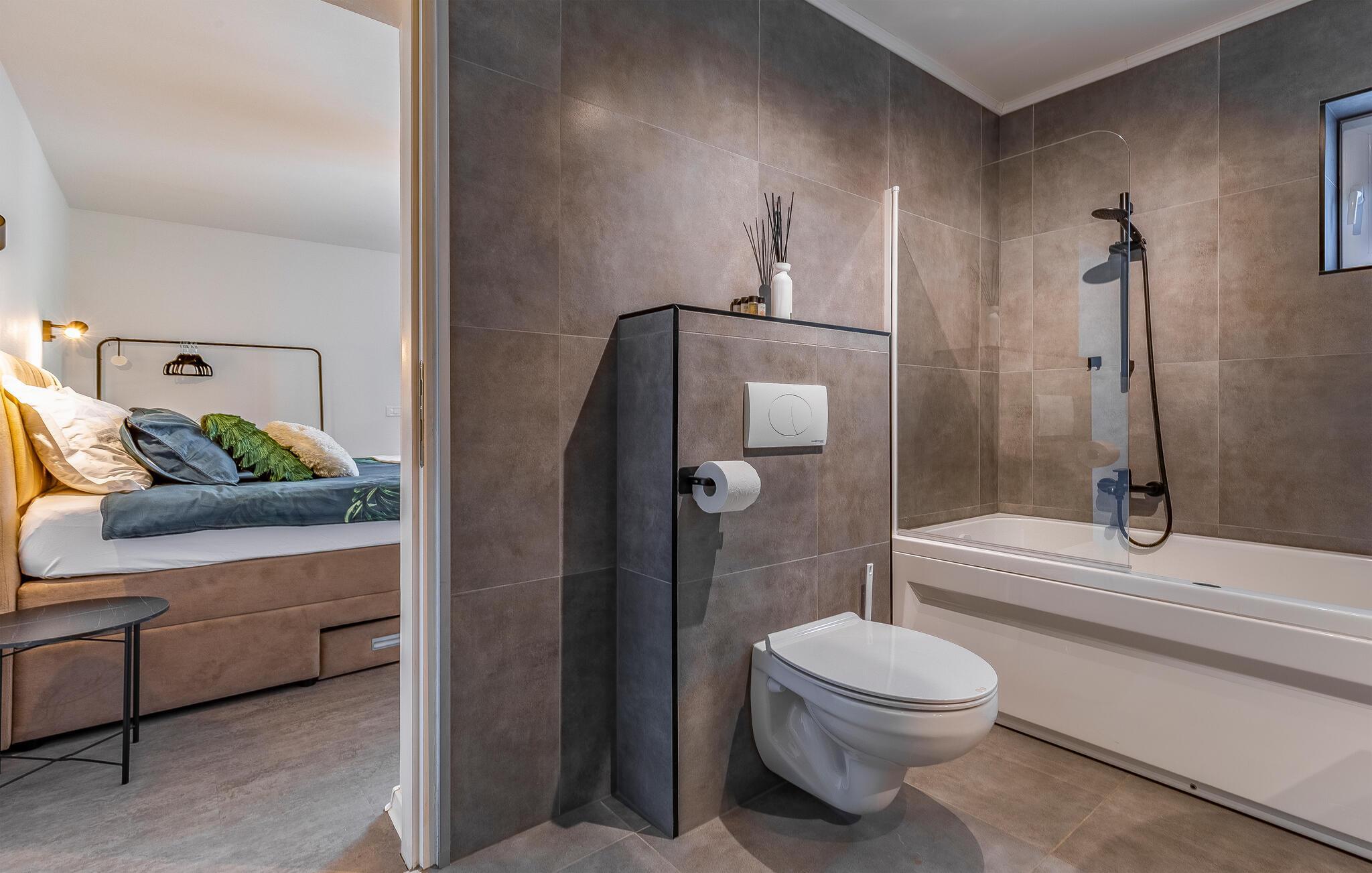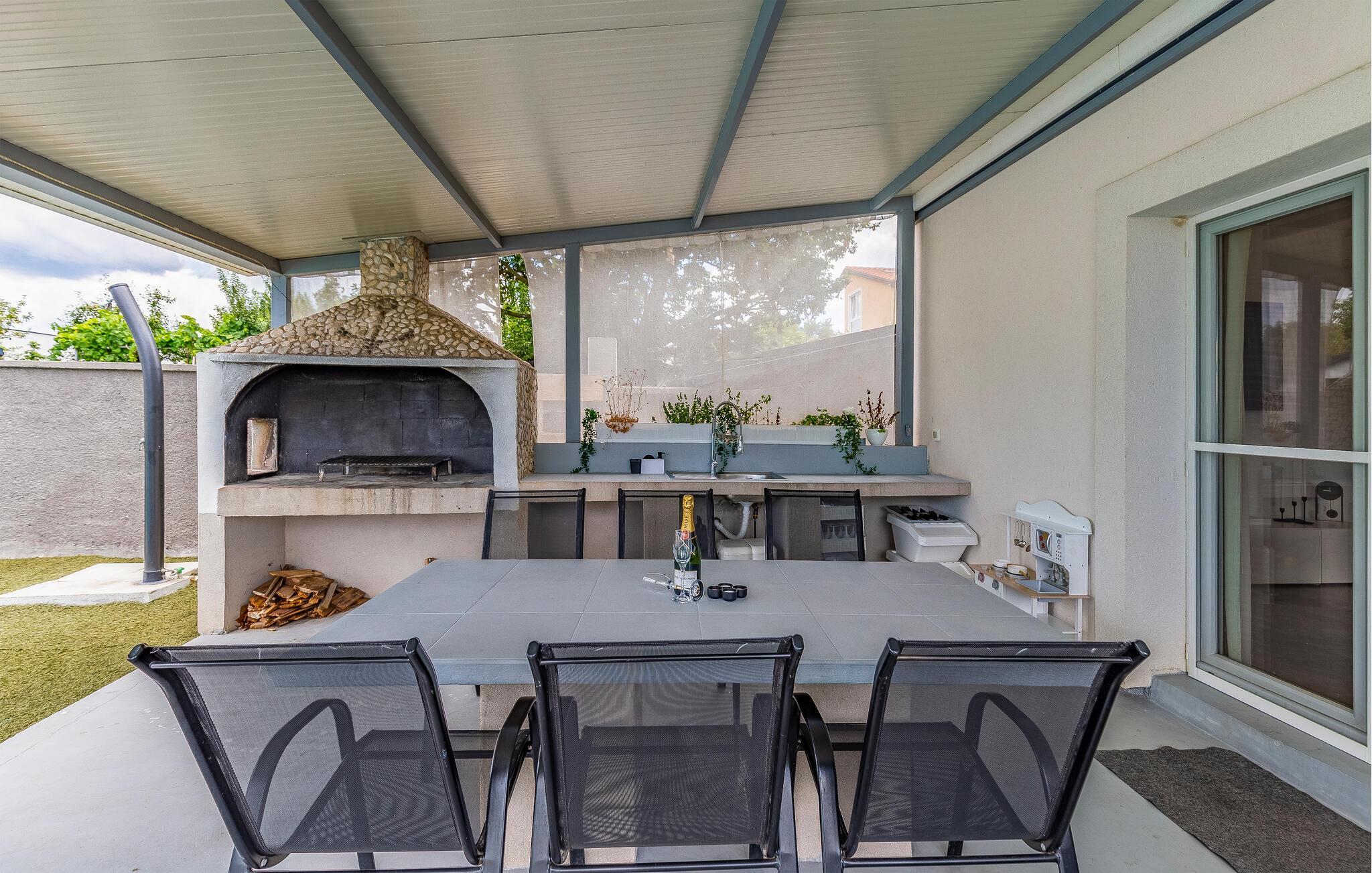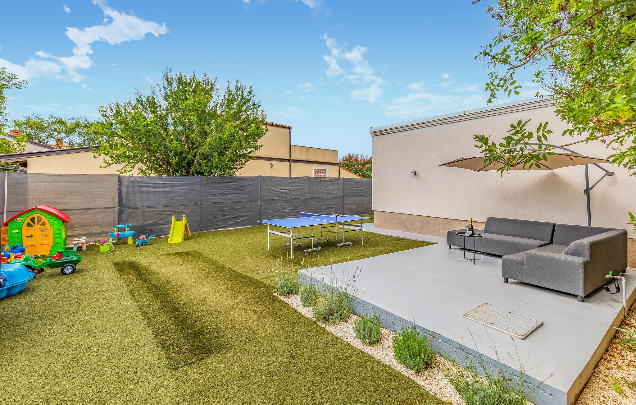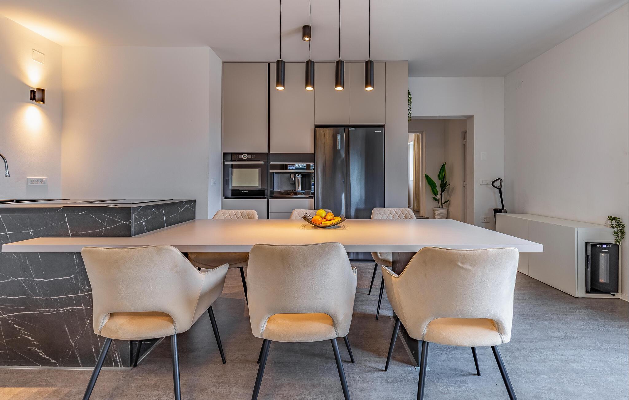 Stig inn og la deg inspirere av den elegante atmosfæren i dette barnevennlige feriehuset. Lag kroatiske spesialiteter på det velutstyrte kjøkkenet og slå deg ned ved det stilfullt opplyste spisebordet. Sett deg godt til rette i sofaen om kvelden, stream en spennende serie eller organiser en spillkveld.