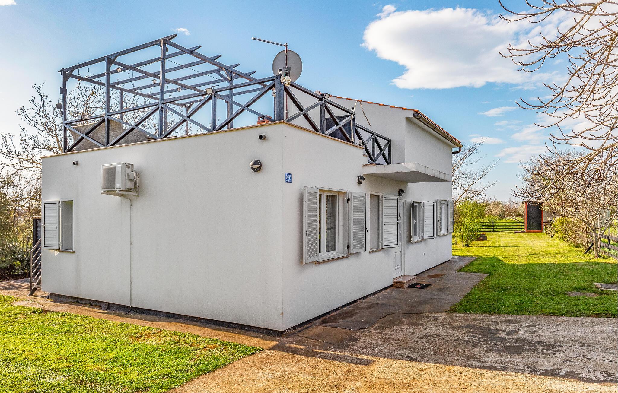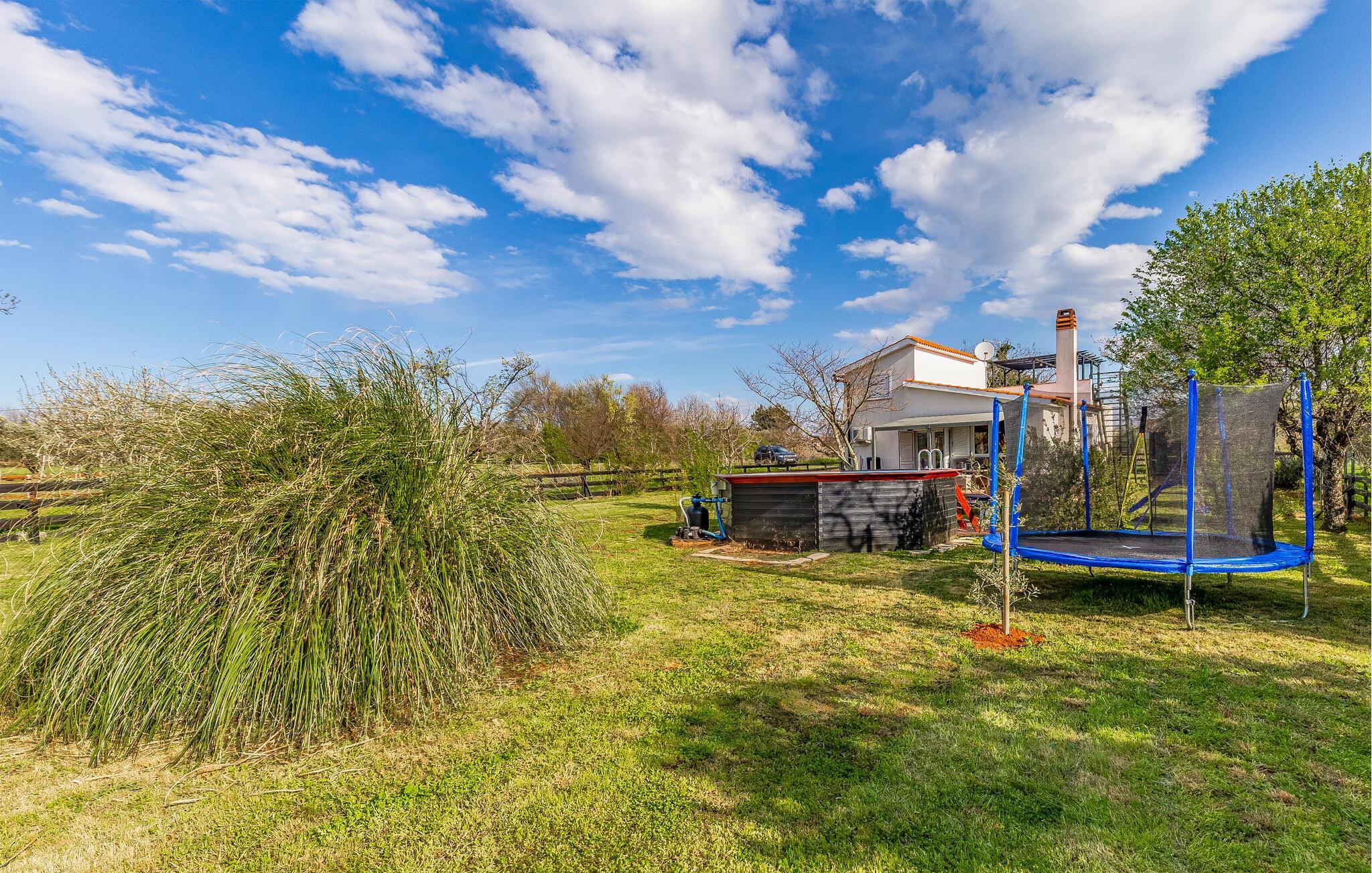 Den romslige hagen rundt huset byr på mange lekemuligheter for hele familien. Ta en dukkert i bassenget, spill badminton eller fotball, og la barna løpe rundt på trampolinen mens du fyrer opp grillen eller lader batteriene på solsengen.