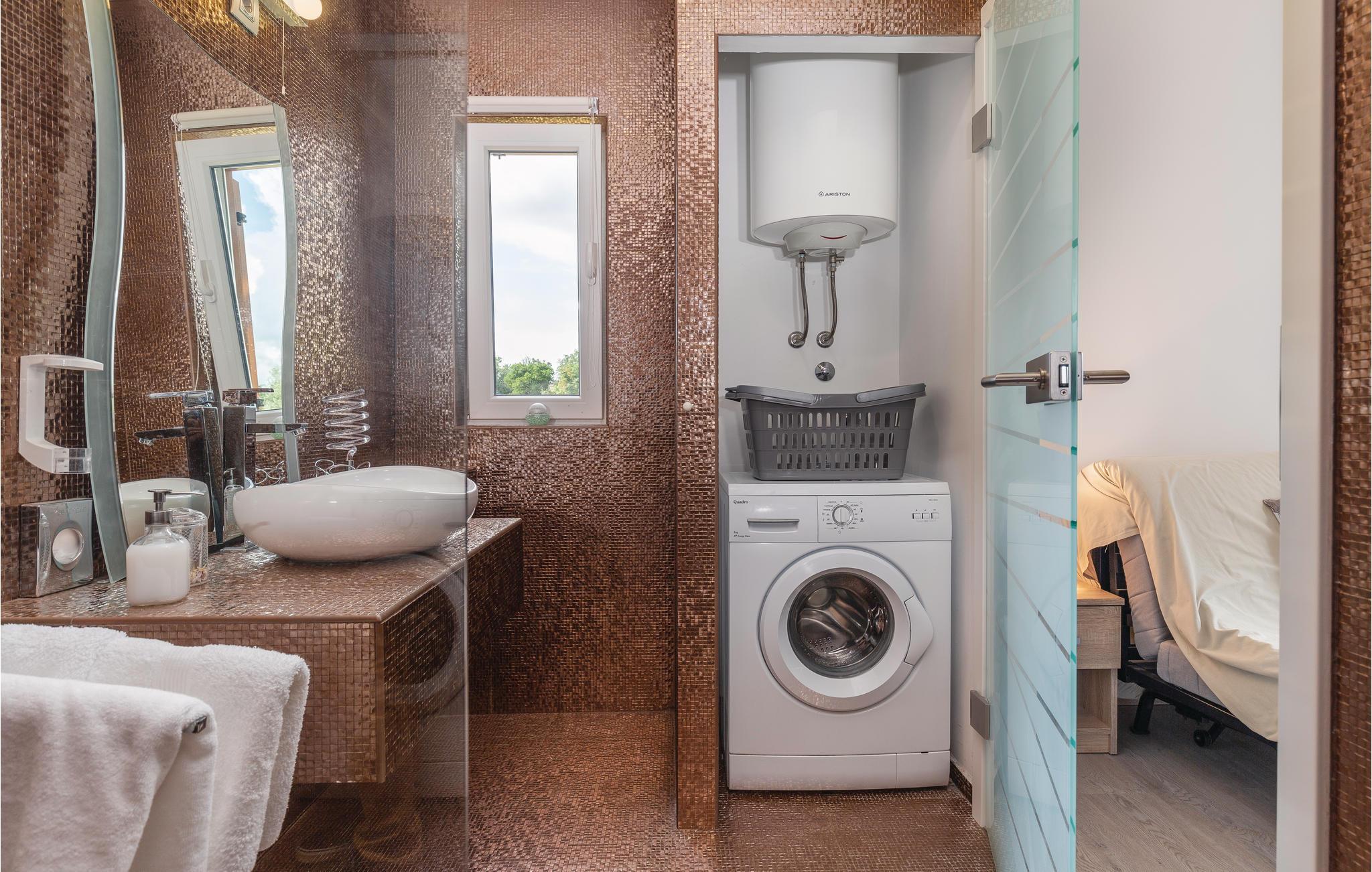 Feriehus med basseng og lokaler i første etasje og første etasje. Hage med oliventrær og mye grønt. Innredningen er komfortabel og funksjonell. Gjestene har en taverna til disposisjon, hvor du også kan spille dart. På den overbygde terrassen er det et steinbord og benker. En høy steinmur sørger for privatlivets fred og barnas sikkerhet. Det er en parkeringsplass på eiendommen. Besøk den gamle byen Pula med sine kulturelle severdigheter. Det er tre parkeringsplasser på eiendommen.