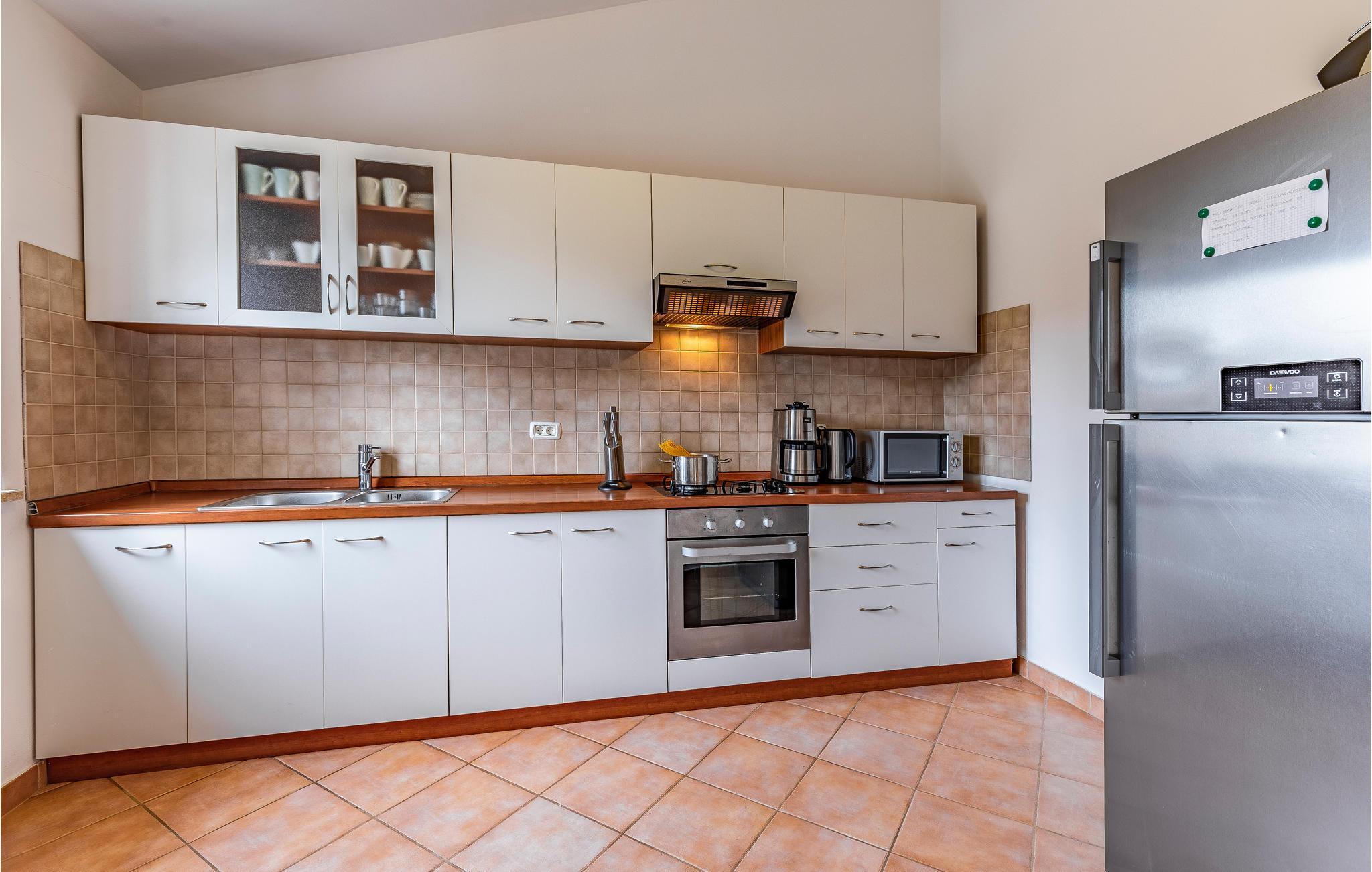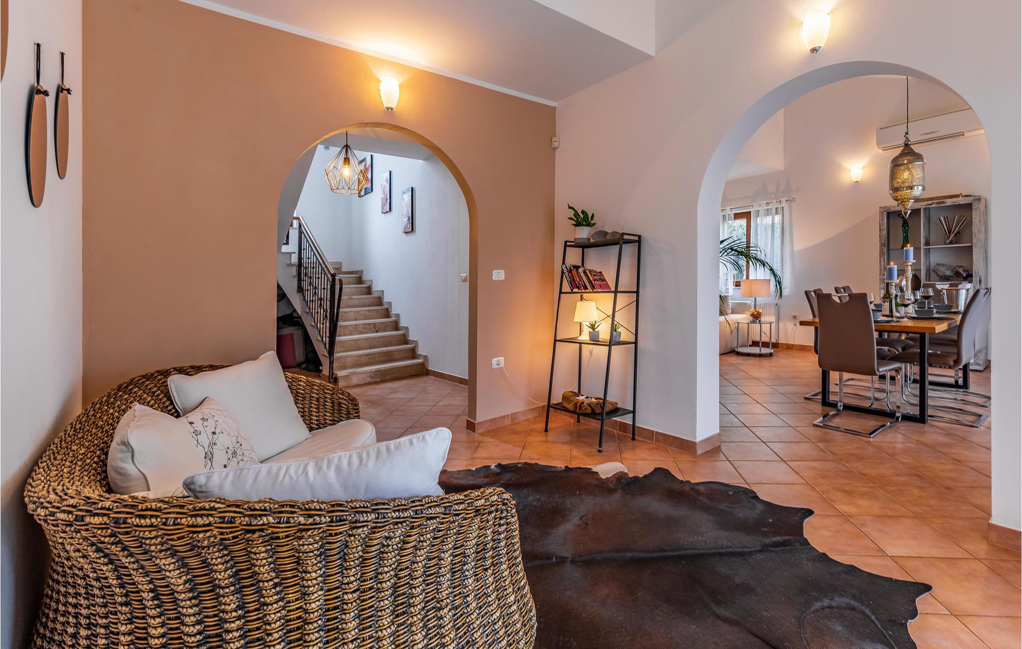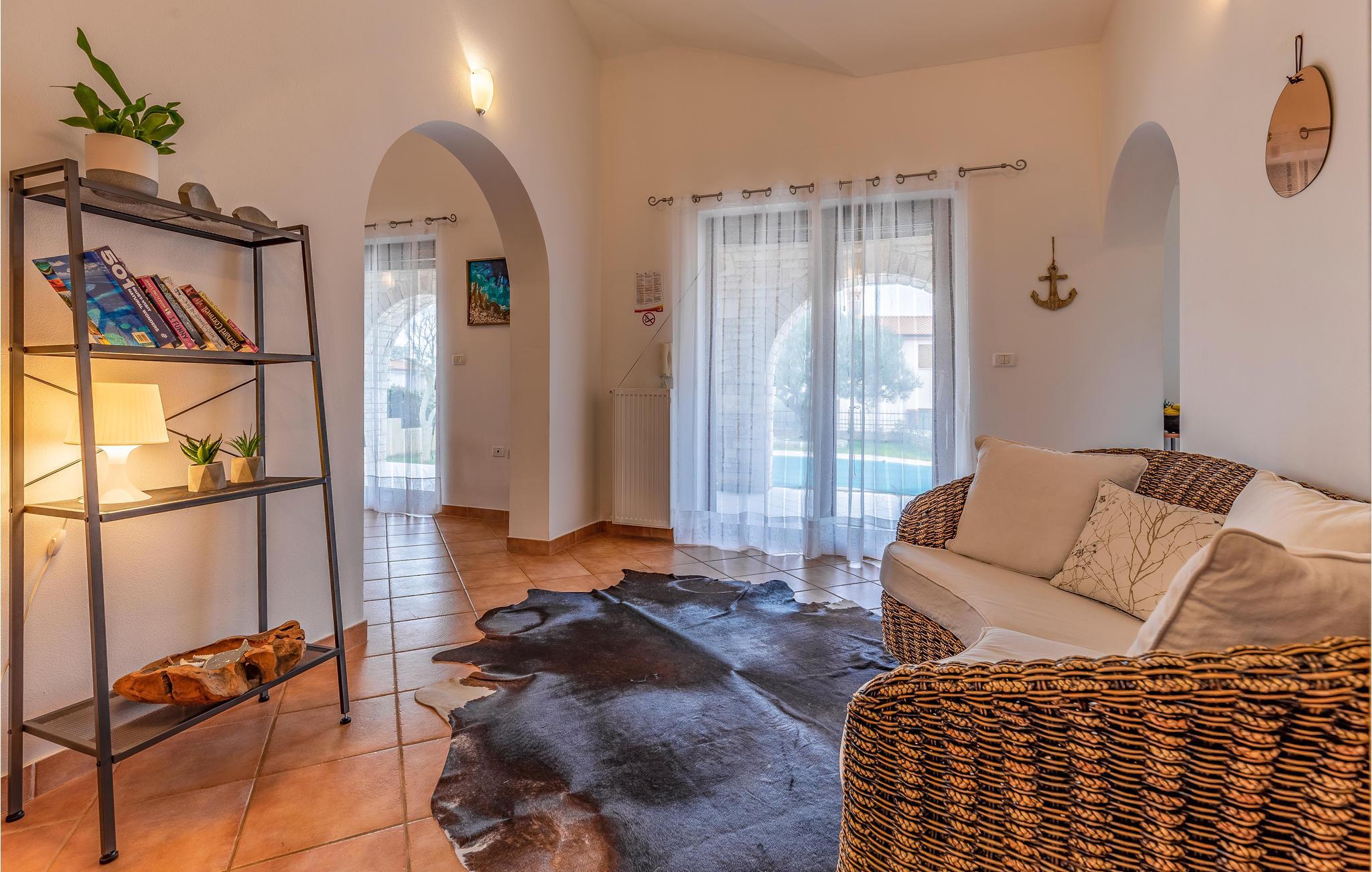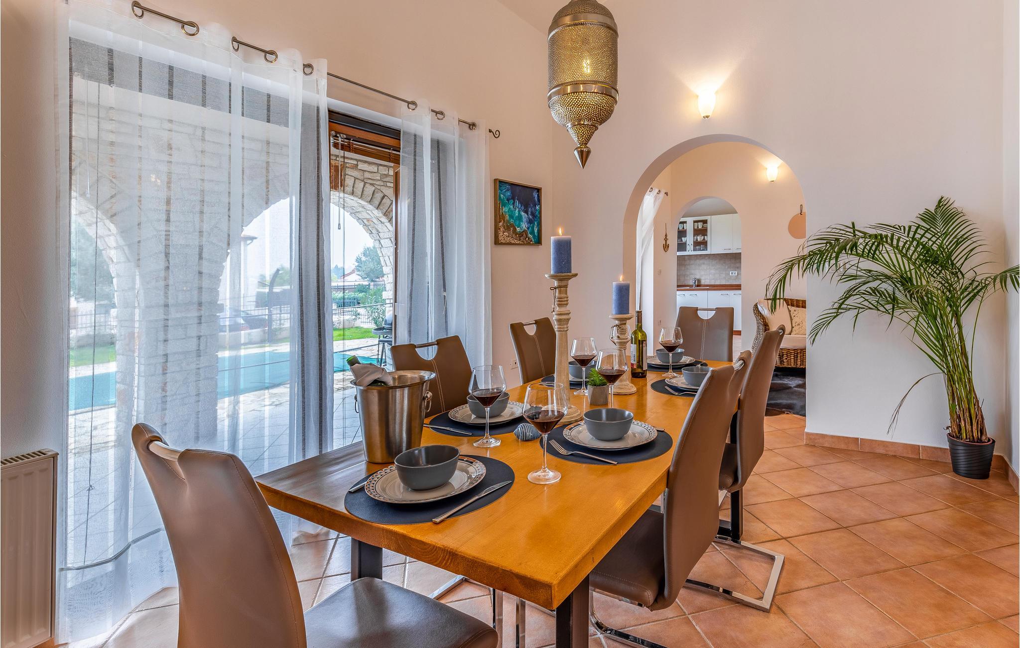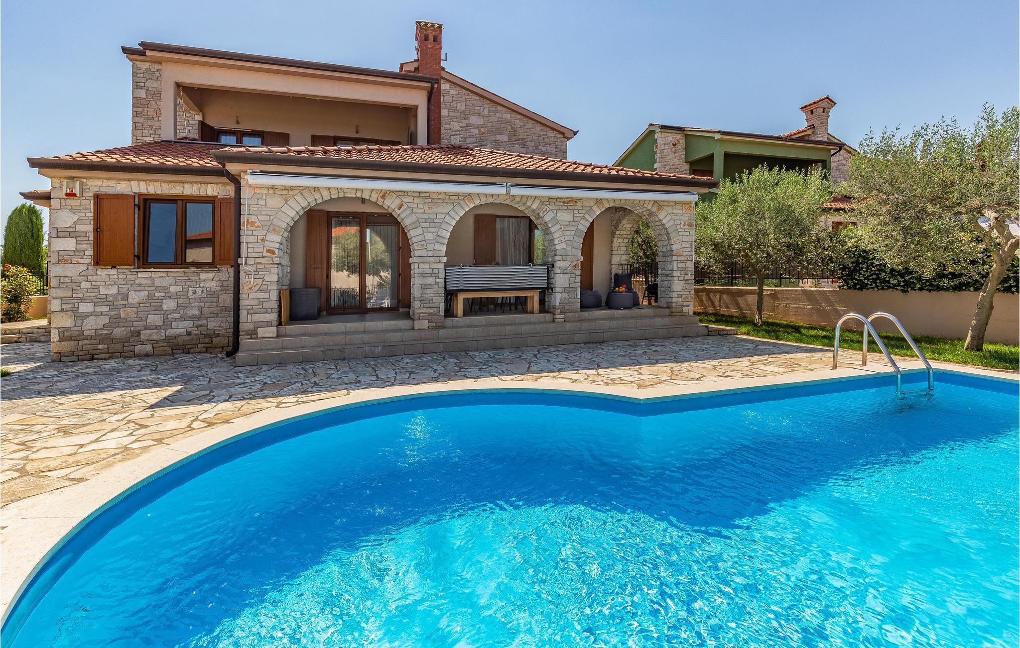 Dette vakre feriehuset med basseng ligger i den lille landsbyen Galiana, i nærheten av byene Faana og Pula. Det ligger i et lukket boligkompleks bestående av ytterligere 7 hus med basseng og en hovedinngang til komplekset. Selve feriehuset har også en tilstrekkelig stor hage med lekeapparater for barn. Det velutstyrte og vakkert møblerte interiøret gir gjestene den komforten de ønsker på ferie. Foran huset er det en overbygd terrasse med vakker utsikt over havet og Brijuni-øyene. Ved siden av ligger et basseng hvor du kan forfriske deg i sommervarmen. De nærmeste strendene ligger i landsbyen Faana, som vil glede deg med sin vakre strandpromenade og mange restauranter. Du kan også besøke byen Pula og se byens hovedattraksjon, amfiteateret.