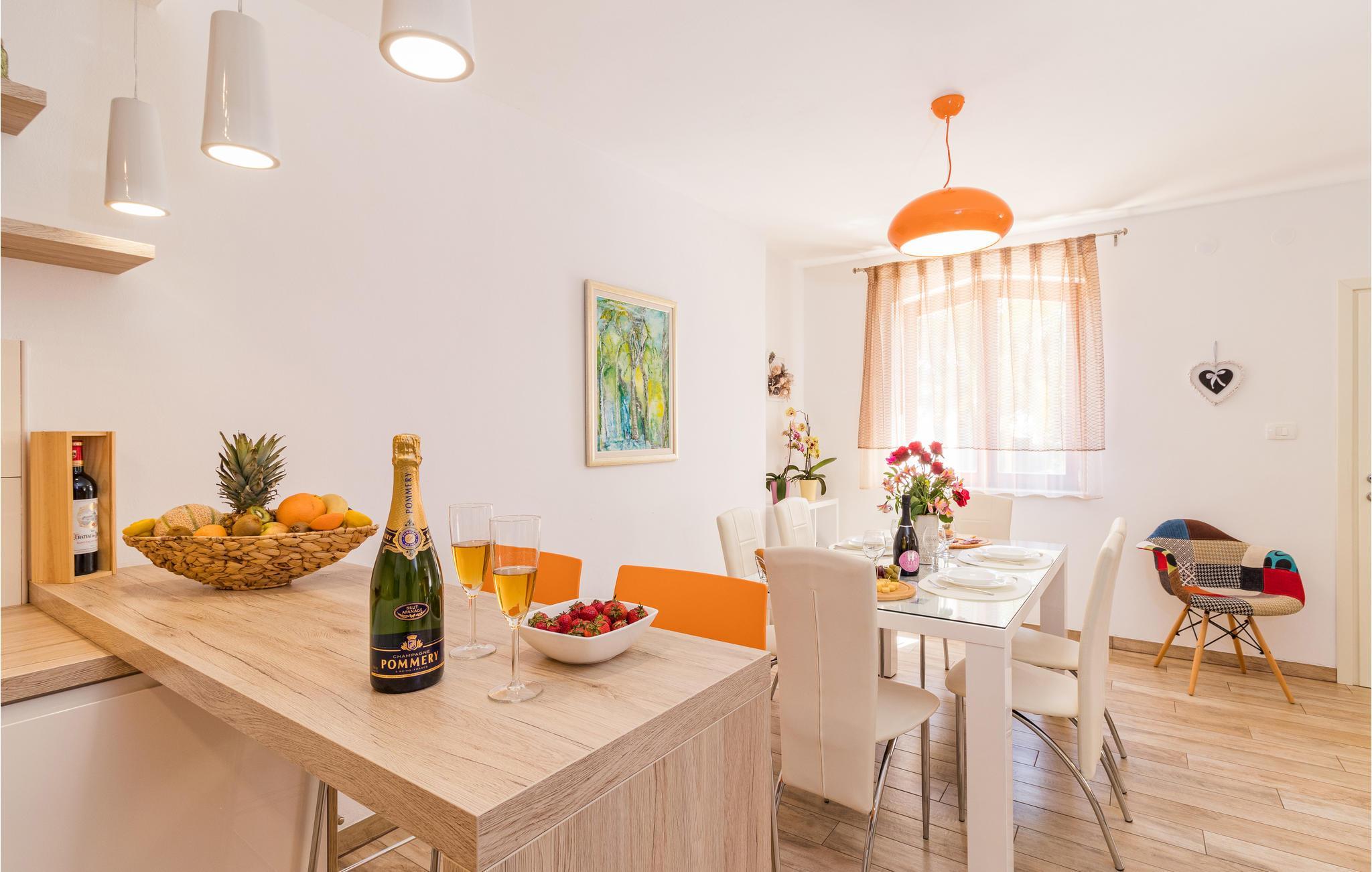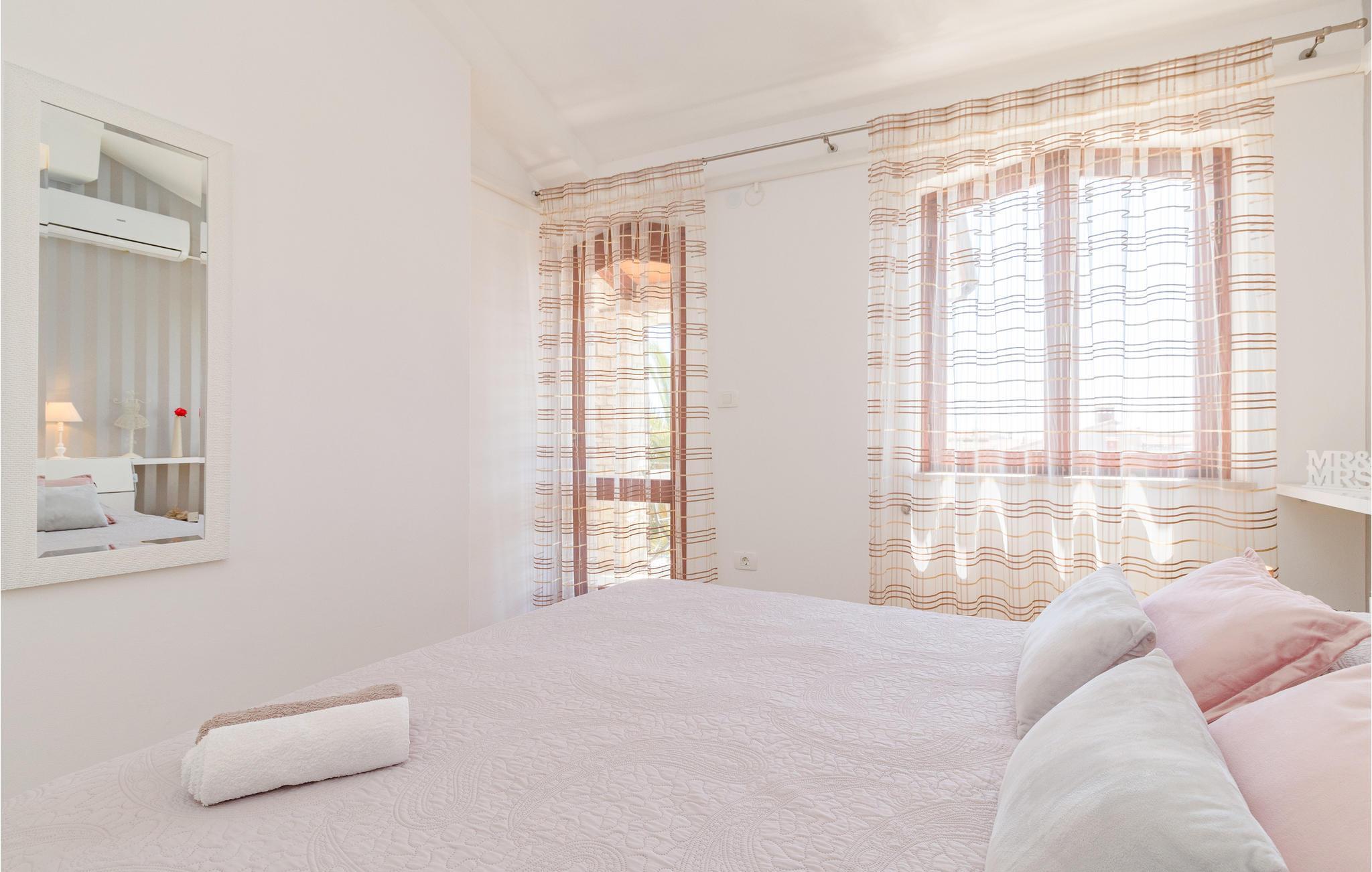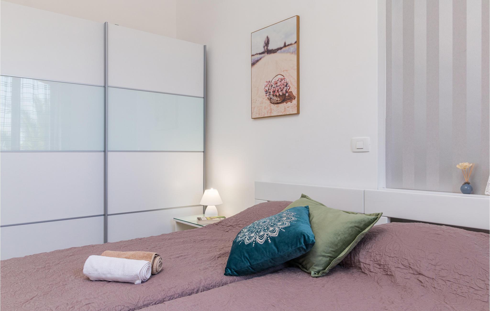 Elegant rekkehus med velholdt hage og samlingsbasseng i den lille forstaden Pula. Solid bygget og velutstyrt, med stue og kjøkken med klimaanlegg i første etasje og to soverom ovenpå, og tilbyr sine gjester mange fasiliteter. På den velholdte og inngjerdede eiendommen er det en fin terrasse, en grillplass samt et forsamlingsbasseng, som gir den rette forfriskningen på varme sommerdager. De yngre gjestene har også blitt tenkt på her, som kan ha mye moro på sklie og huske.