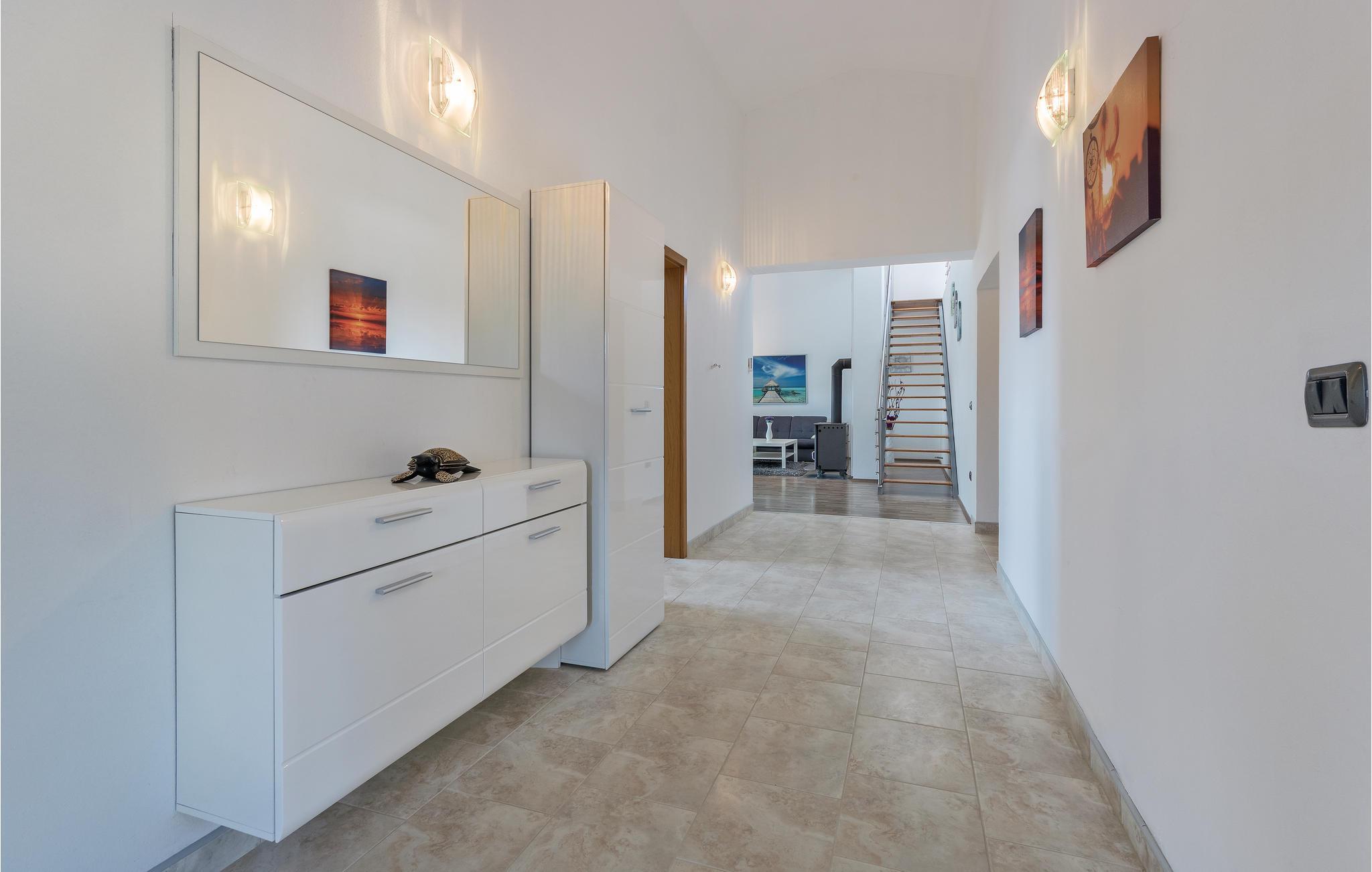 Dette vakre tomannsboligen med basseng ligger i den lille landsbyen Galizana. Det komfortable og elegant innredede interiøret består av den romslige stuen, kjøkken med spiseplass, bad og to soverom i første etasje, mens det i første etasje er et annet soverom, et bad og terrassen med utsikt over havet og Brijuni-øyene. Fra stuen har du tilgang til den overbygde terrassen, ved siden av bassenget. Besøk byen Pula og fiskerlandsbyen Fazana, hvorfra du kan ta en tur til Brijuni nasjonalpark.
