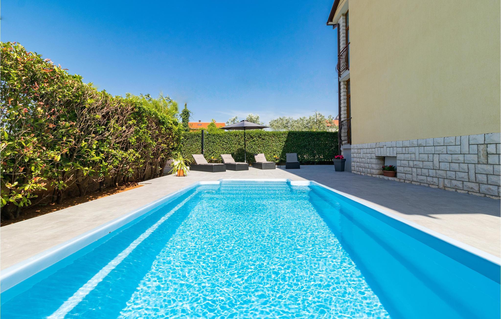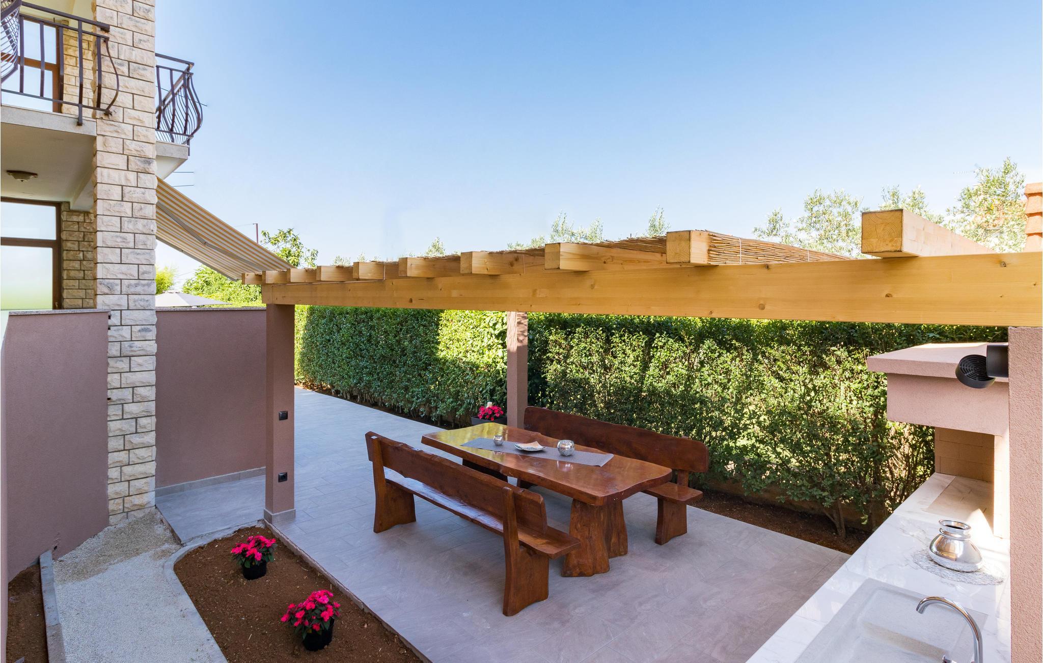 Denne moderne og elegant innredede ferieleiligheten ligger i Galizana i nærheten av Pula. I tillegg til de romslige innendørsområdene har du også en overbygd terrasse til din disposisjon. Du har også ditt eget svømmebasseng til din disposisjon. Gjør deg komfortabel i hagemøblene og nyt de fantastiske lange feriedagene. Barna dine kan leke på plenen på den inngjerdede eiendommen. Bare ti minutter med bil skiller deg fra de nærmeste strendene. Besøk det livlige sentrum av Pula, den største byen på halvøya Istria. Det er verdt å planlegge utflukter i Istria godt, da det er mye å utforske, fra historiske monumenter til gastronomi.