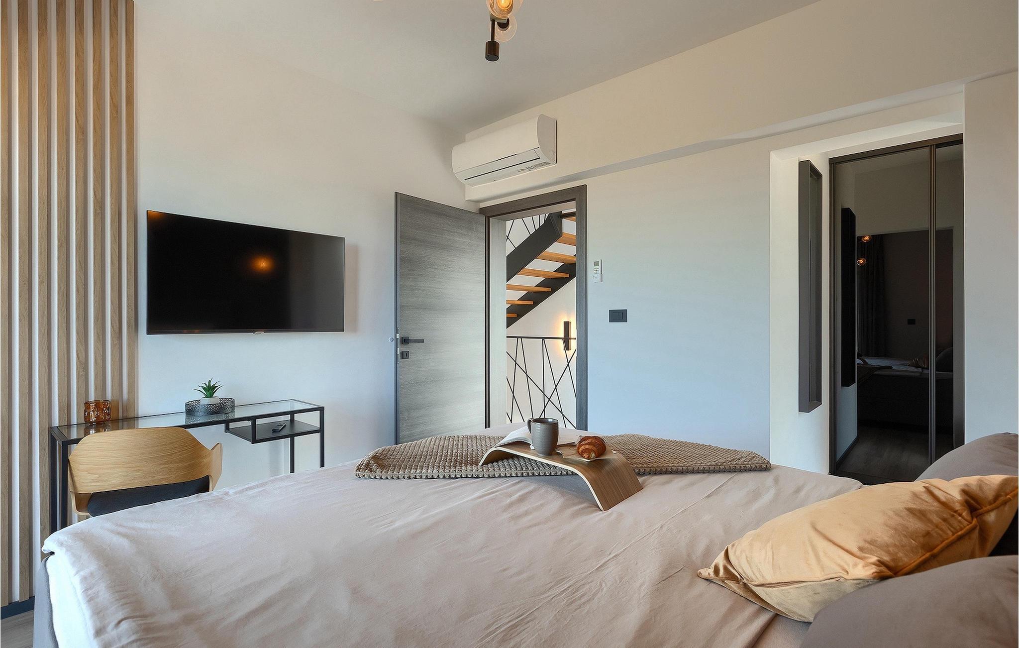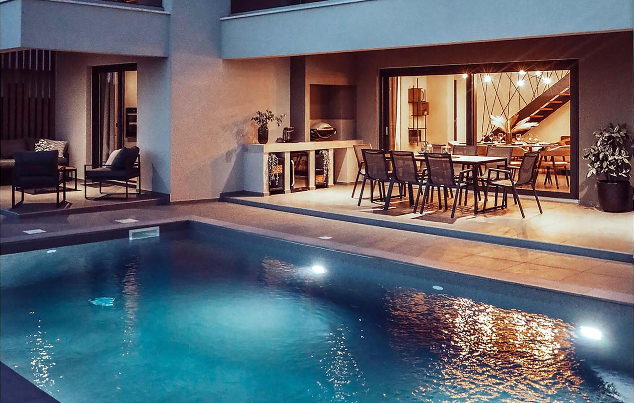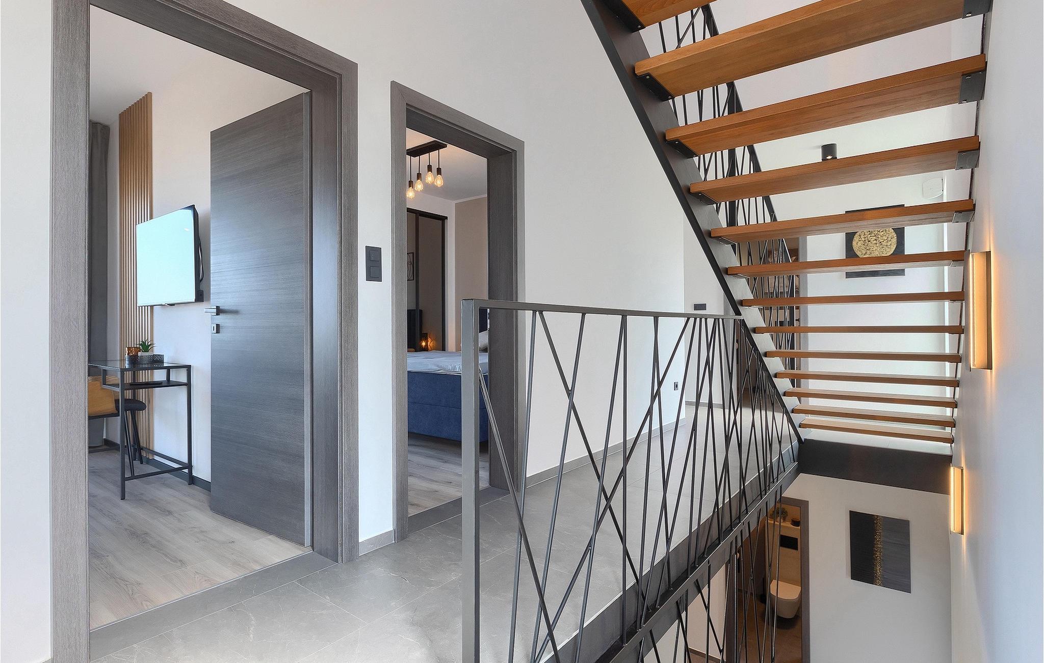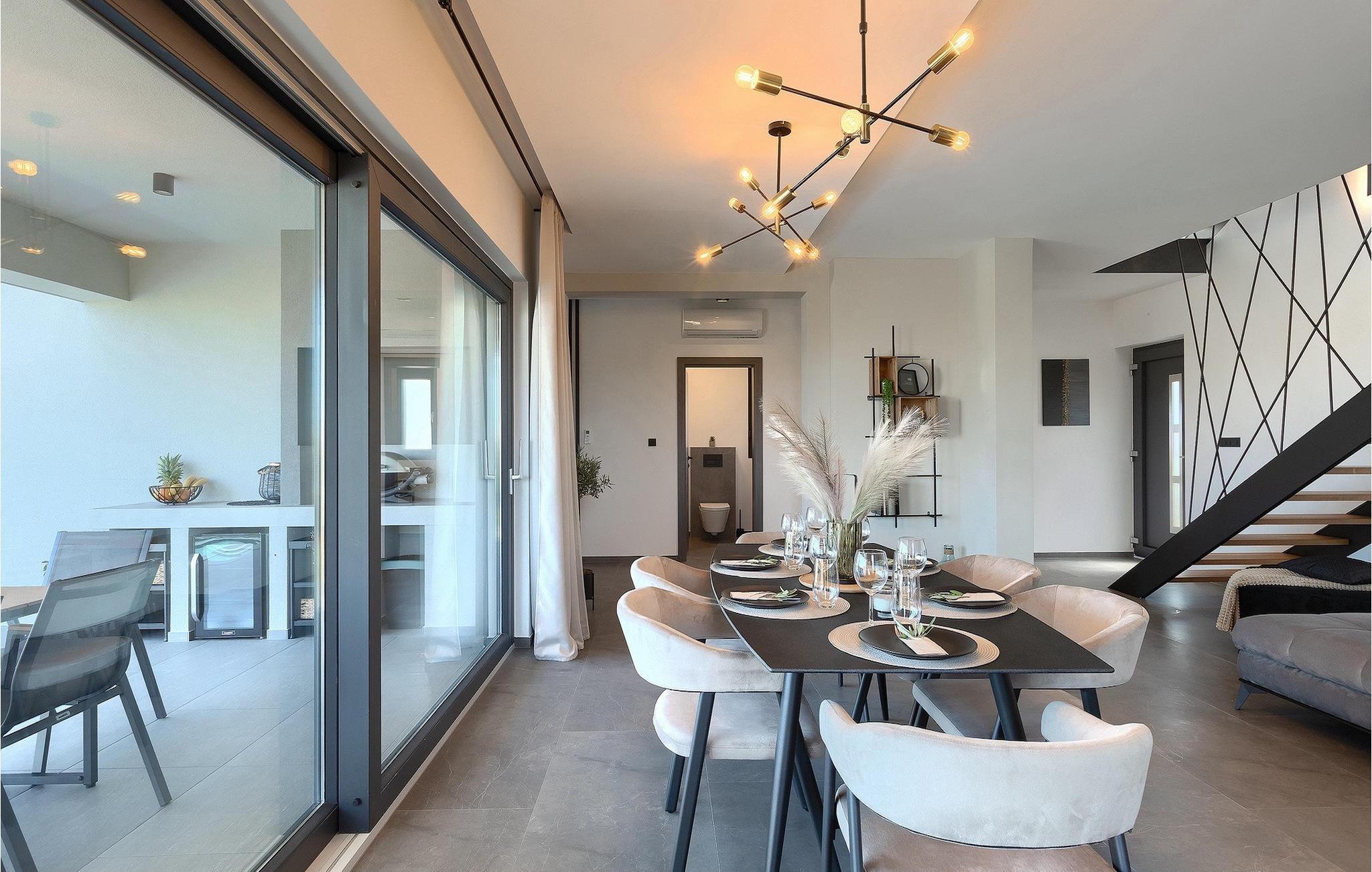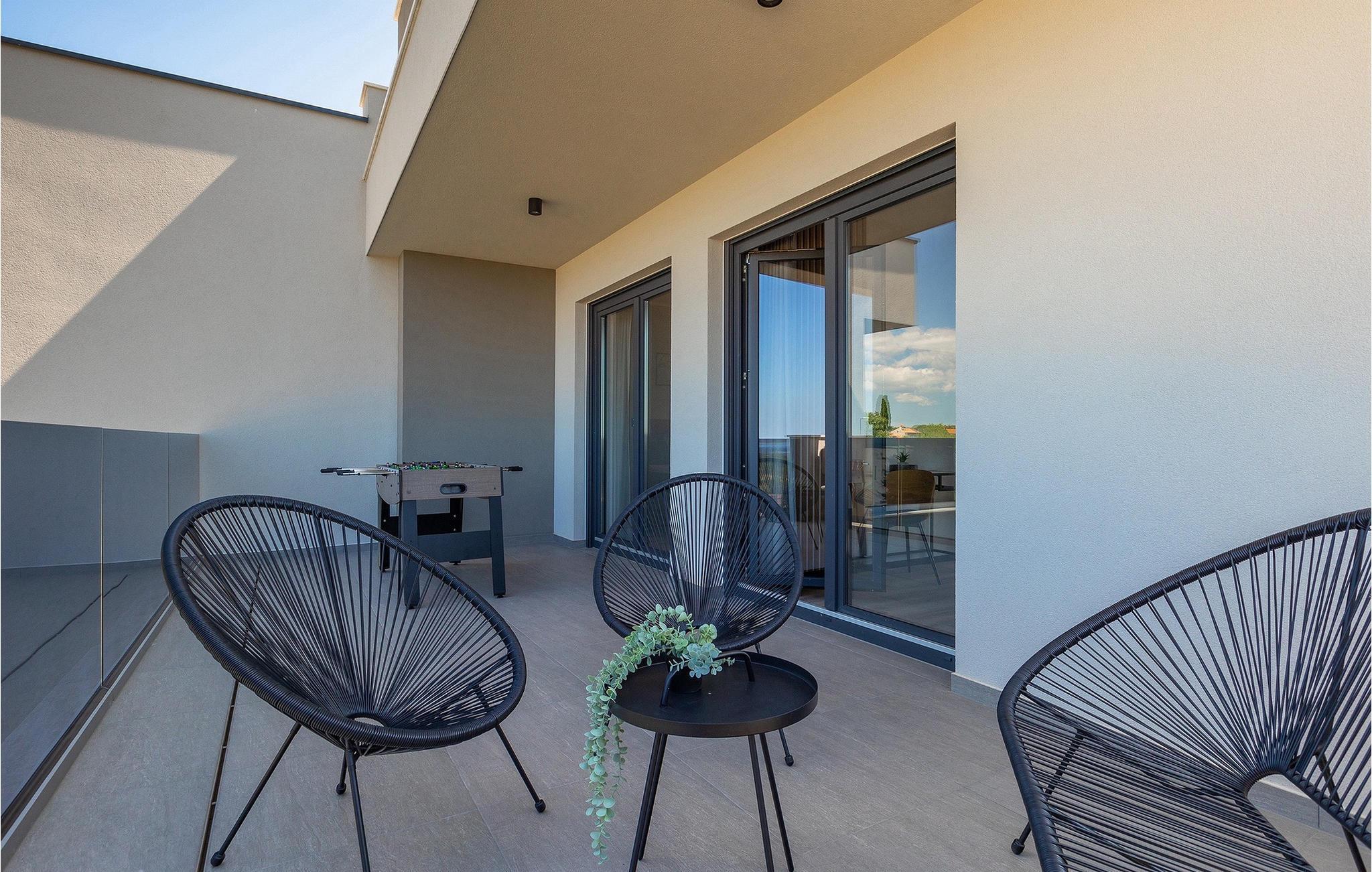 Villa IVaLA er en vakker familievilla i nærheten av Pula, ideell for en drømmeferie med familie og venner. Foran villaen ligger et vakkert basseng på 32 m2. I sommervarmen finner du forfriskninger i bassenget, mens soldyrkere kan nyte den istriske solen på solsengene rett ved bassenget. Slapp av i det utendørs boblebadet. Nyt istriske retter tilberedt på grillen i et overbygd område foran villaen, hvor du kan finne et spisebord for 8 personer. De yngste gjestene kan ha det gøy på lekeplassen, som er utstyrt med husker og klatrestativer. Men det er også mye moro å finne på inne i villaen. På terrassen i villaens første etasje kan du spille bordfotball. I første etasje av villaen er det en koselig stue med en fantastisk utsikt over bassenget. I den åpne planløsningen er det også et utstyrt kjøkken med alt du trenger for å tilberede deilige måltider og en spisestue med plass til 6 personer. I samme etasje er det et bad og et separat toalett. Soverommene ligger i første etasje. Det første soverommet har en dobbeltseng og eget bad. De to andre soverommene har dobbeltsenger, og det er et separat bad i denne etasjen. Alle soverommene har klimaanlegg, TV og egen terrasse hvor du kan nyte morgenkaffen mens du beundrer den vakre havutsikten. Det spesielle med villaen er takterrassen, som ligger i andre etasje. Her kan du nyte den unike utsikten over Brijuni-øyene og det vakre havet, som vil ta pusten fra deg. Ikke gå glipp av en unik ferie i Villa IVaLA med panoramautsikt og nyt atmosfæren i den sjarmerende landsbyen Galizana. Galizana er en landsby i Istria mellom Vodnjan og Pula. Galizana har en rik historie og tradisjon som går tilbake til antikken. Lokalbefolkningen vil glede deg med produktene sine. Gå ikke glipp av å smake på ekstra jomfruolivenolje, saueost og andre lokale produkter. Ha det gøy på lokale arrangementer som galiciske kvelder og folklore. Gå ikke glipp av å besøke Vodnjan med sitt rike gastronomiske tilbud. Utforsk Vodnjan med sine interessante veggmalerier, kirken St Foska, i nærheten av hvilken det finnes tre kazuner, tradisjonelle tilfluktsrom laget av istrisk stein. Naturelskere vil nyte landsbyen Peroj og beundre den vakre utsikten over Fazana-kanalen og Brijuni-skjærgården. Et uunnværlig reisemål er Istrias største by Pula, der du kan besøke Pula Arena, Augustus-tempelet, Den gylne port og mange andre kulturelle og historiske monumenter. På slutten av ditt istriske eventyr kan du utforske Brijuni-skjærgården med den berømte Brijuni nasjonalpark og safariparken.