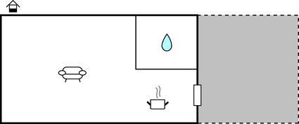 Stue/kjøkken 16m2 - 2 Soveplasser. (Dobbeltseng(er)).